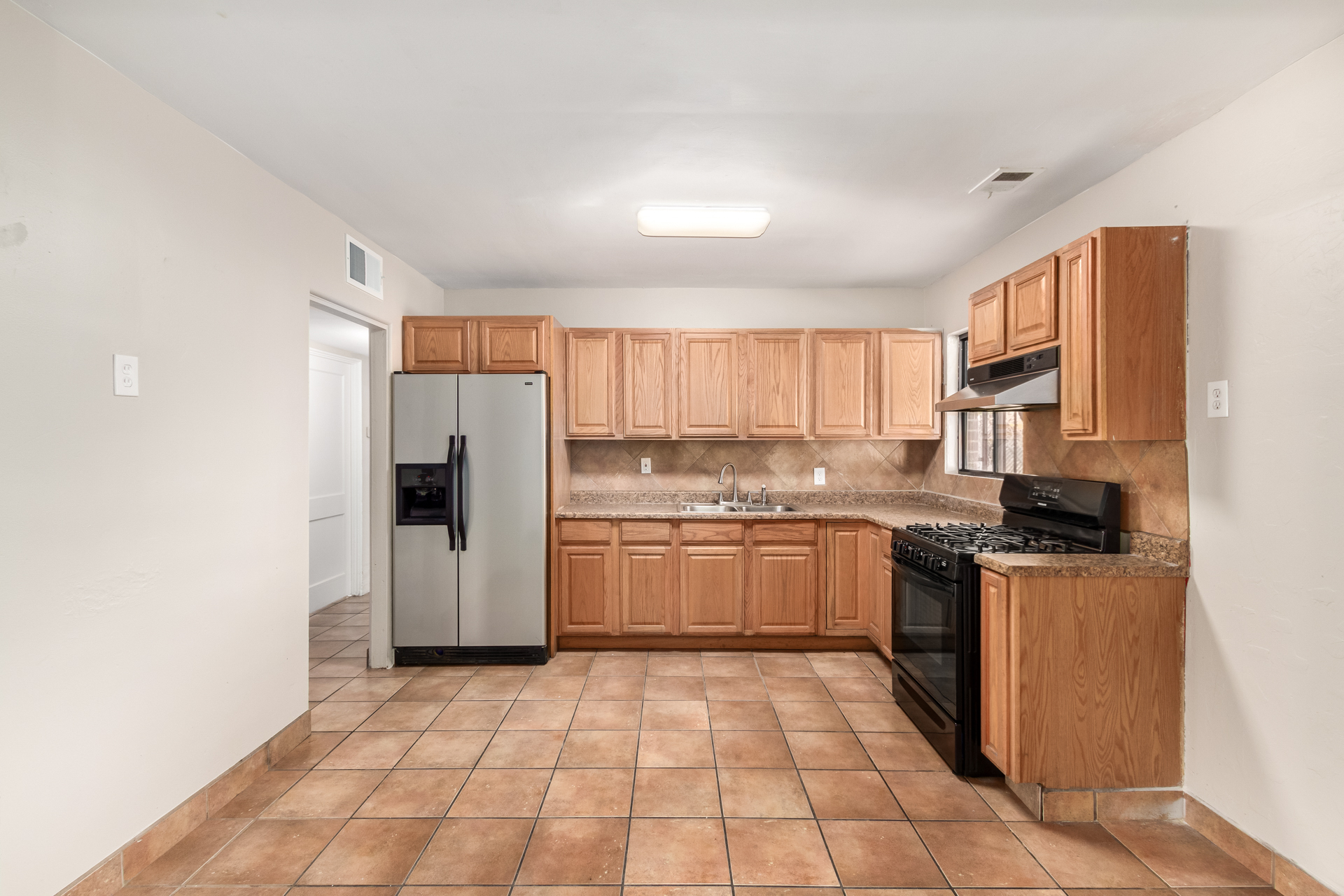 Look no further! This fabulous 4 bedroom, 3 bedroom home nestled on a premium corner lot is the one. This beauty features a fantastic curb appeal, custom wrought-iron front door, and meticulous landscape. Enter to discover a spacious living/dining room boasting neutral tile floors, fresh palette, and huge windows allowing natural light in. The fully equipped kitchen offers new wood cabinets, stylish tile backsplash, and counters for all your cooking needs! Primary bedroom showcases a sizable closet and private bathroom complete w/new fixtures. The spacious backyard has rear car garage, an RV gate, relaxing covered patio, and plenty of space for fun gatherings! What are you waiting for? Call now!