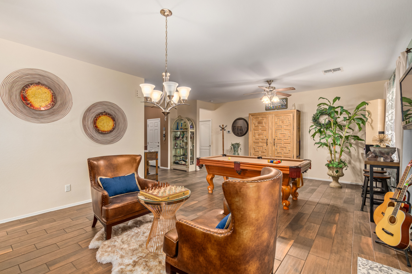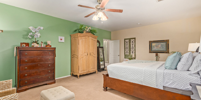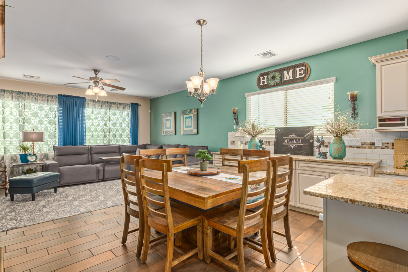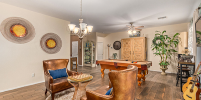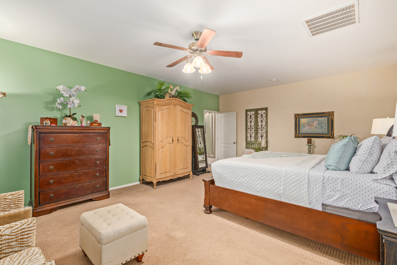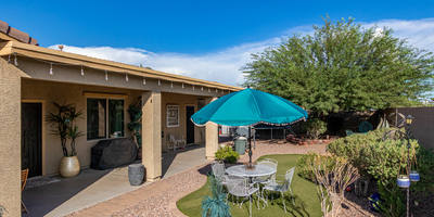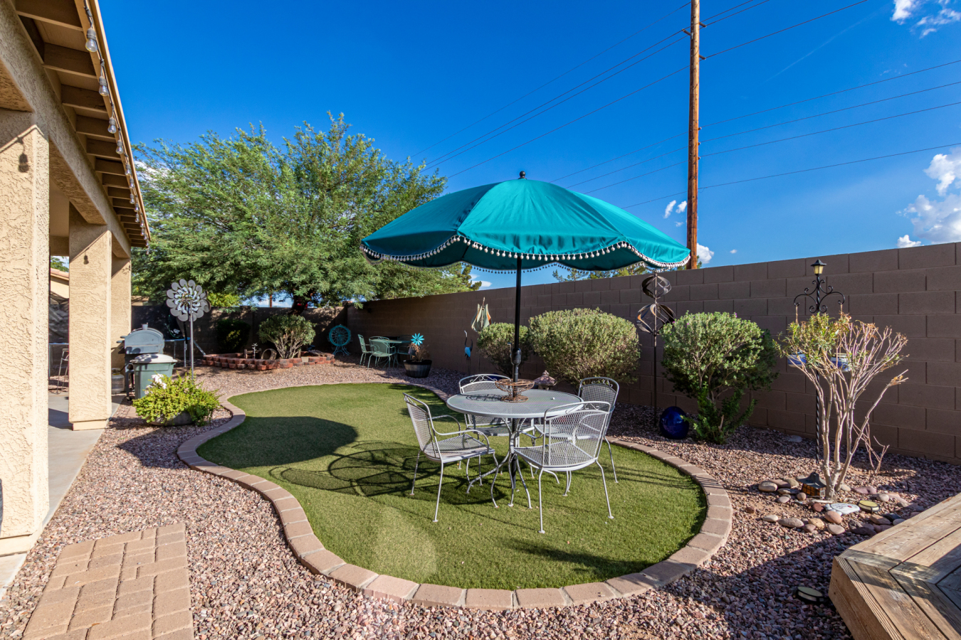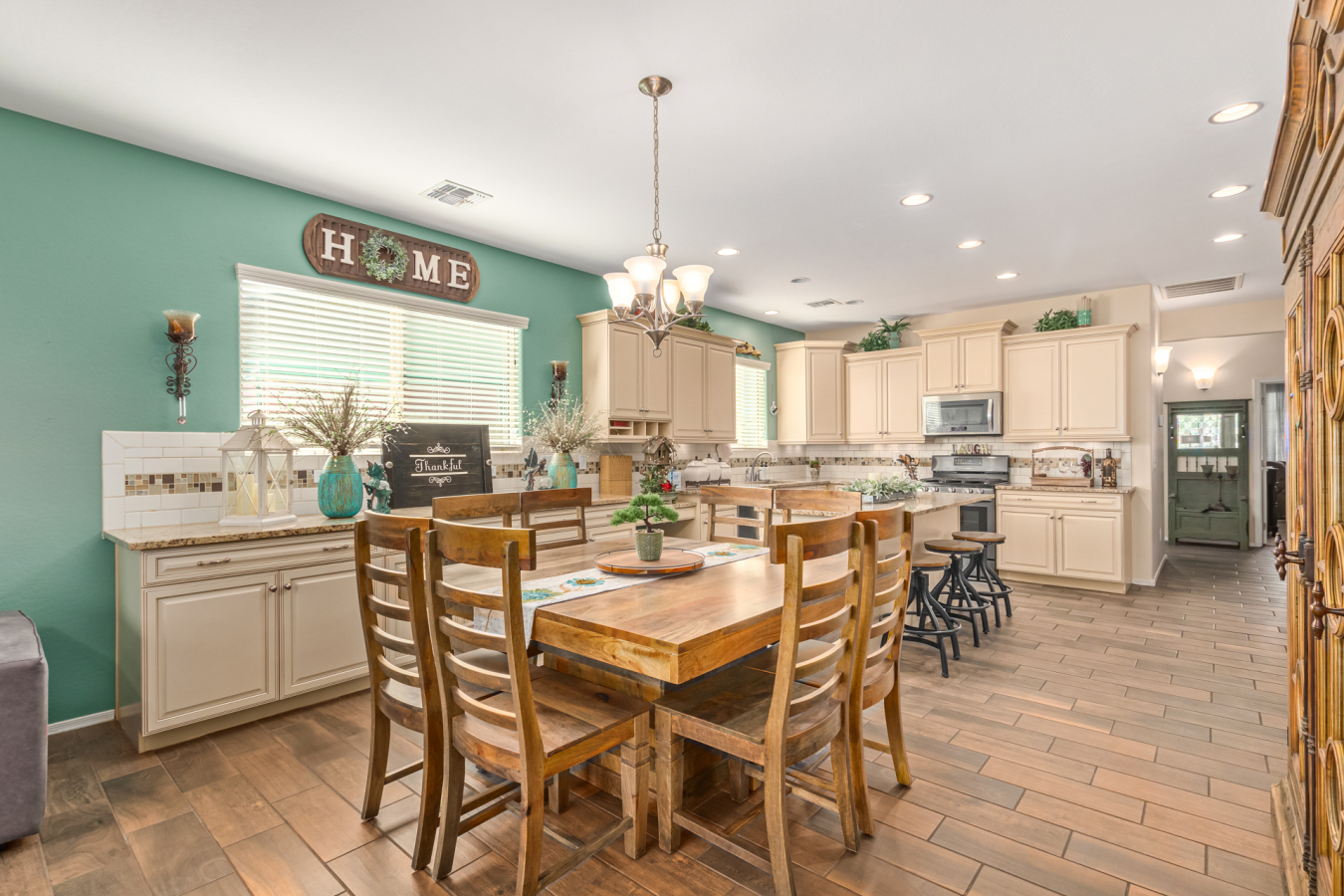 Beautiful single-level home in the gated Riverwalk Estates is the one you're looking for! Providing a 3-car garage, stone accents, & an RV gate. Take a look inside to find wood-look tile flooring, designer palette, & a living/dining room w/backyard access. Modern great room is ready to entertain guests. Fabulous kitchen boasts recessed lighting, a plethora of cabinets w/crown moulding, SS appliances, granite counters, subway tile backsplash, & an island w/a breakfast bar. Romantic main retreat features plush carpet, private outdoor access, an upscale ensuite w/dual sinks, make-up area, a separate shower & tub, and a walk-in closet. Enjoy the beauty of sunrise under the covered patio in the expansive backyard w/seating areas & a shade tree. Become a part of this peaceful neighborhood!