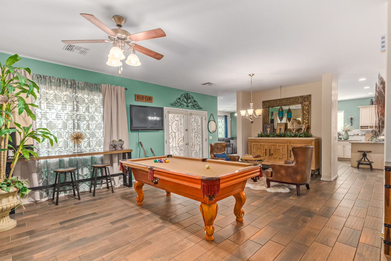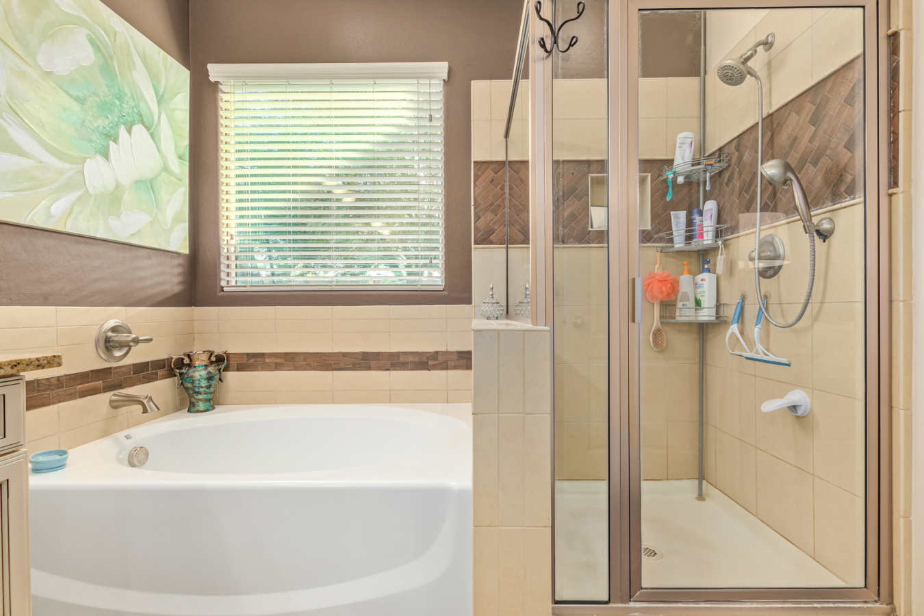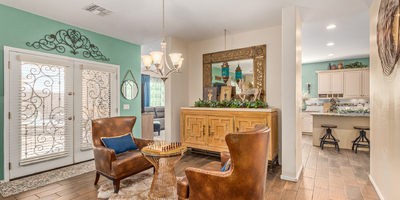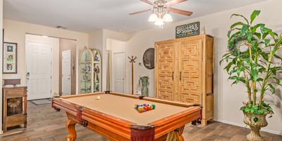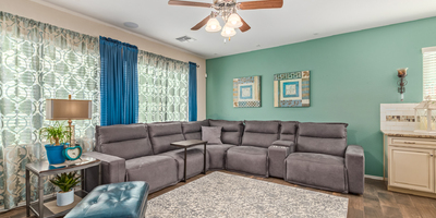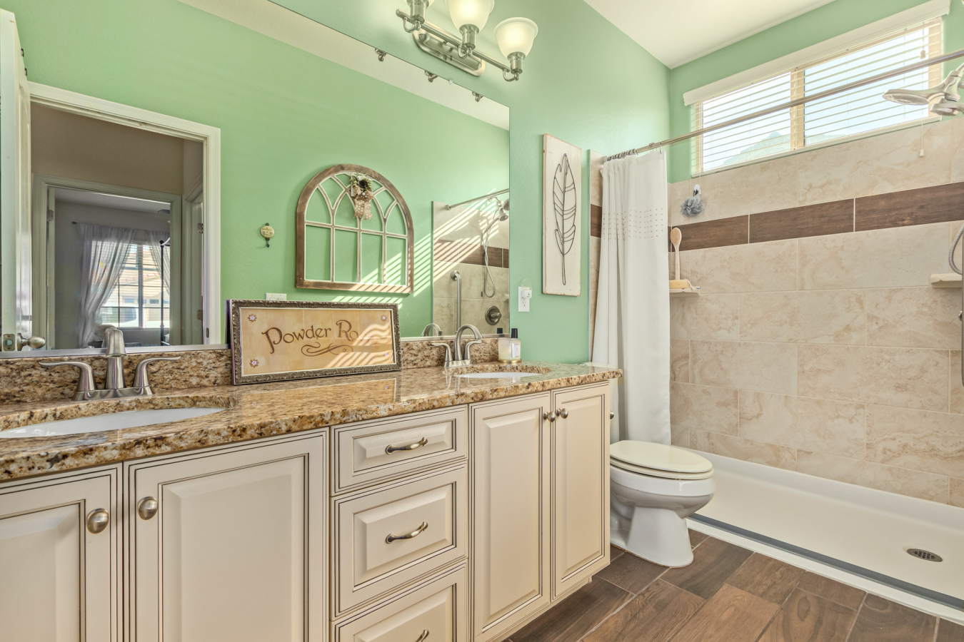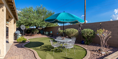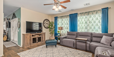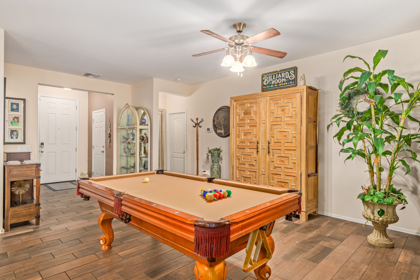 Beautiful single-level home in the gated Riverwalk Estates is the one you're looking for! Providing a 3-car garage, stone accents, & an RV gate. Take a look inside to find wood-look tile flooring, designer palette, & a living/dining room w/backyard access. Modern great room is ready to entertain guests. Fabulous kitchen boasts recessed lighting, a plethora of cabinets w/crown moulding, SS appliances, granite counters, subway tile backsplash, & an island w/a breakfast bar. Romantic main retreat features plush carpet, private outdoor access, an upscale ensuite w/dual sinks, make-up area, a separate shower & tub, and a walk-in closet. Enjoy the beauty of sunrise under the covered patio in the expansive backyard w/seating areas & a shade tree. Become a part of this peaceful neighborhood!