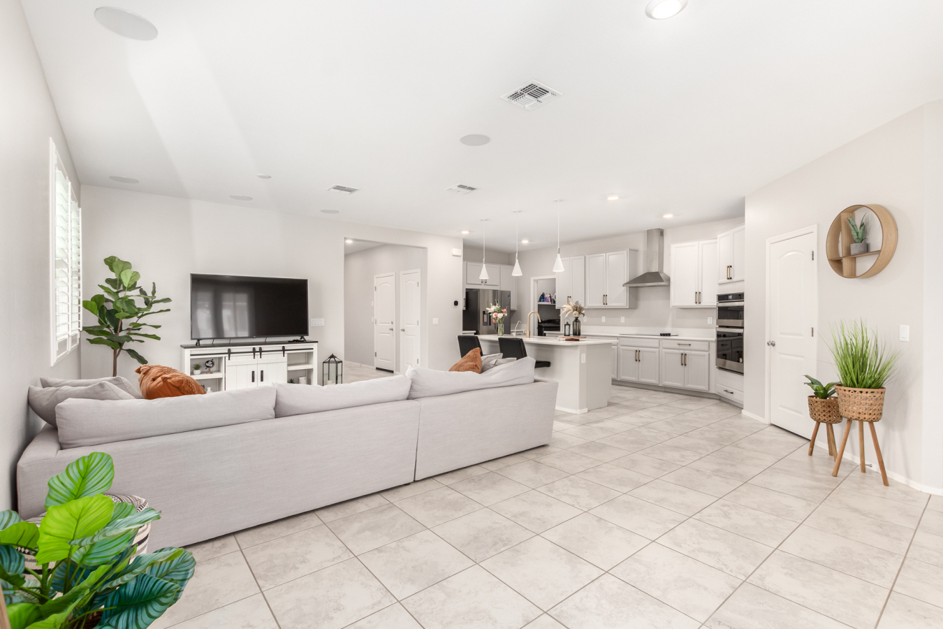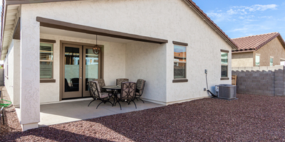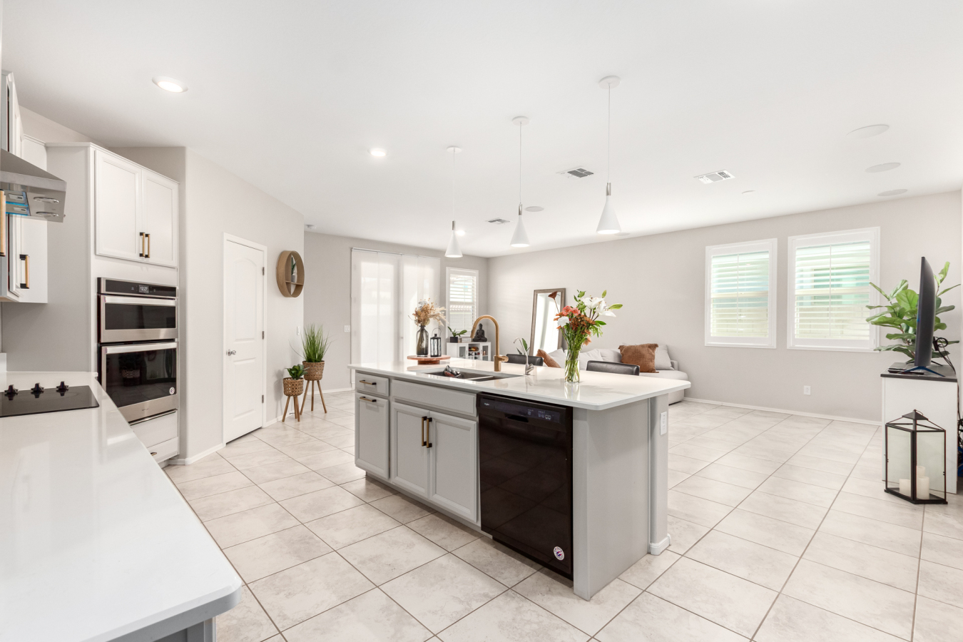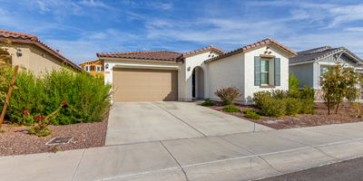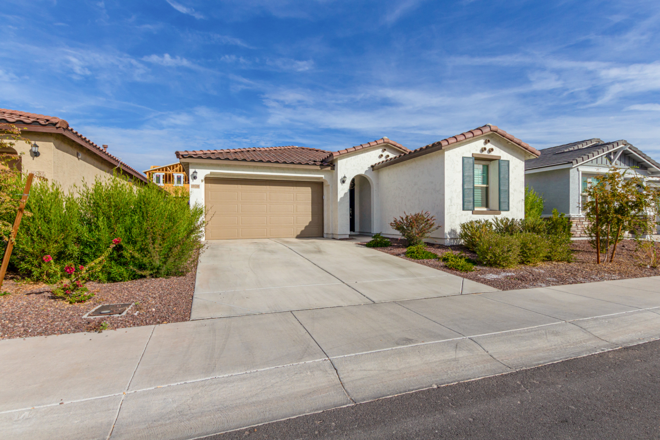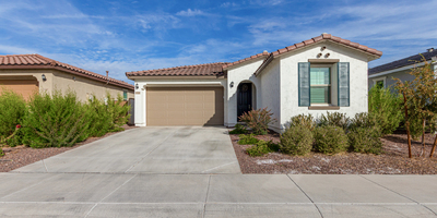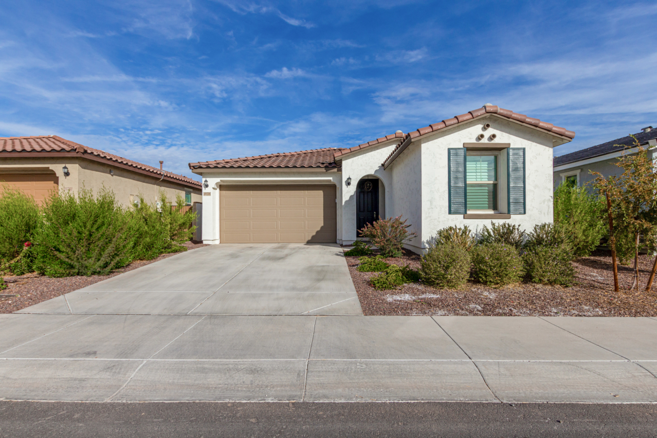 What a charming 3 bed, 2 bath home in the Award-winning Community of Verrado! Fall in love with the sweet curb appeal and the low-maintenance desert landscape. Inside, a large hallway leads you to the great open layout boasting pre-wired surround sound, plantation shutters, and neutral color tile & paint for a bright feel. Practice your cooking skills in this immaculate kitchen showcasing built-in appliances, white cabinets, an island w/breakfast bar, a pantry, and plenty of counter space. The main bedroom is split for extra privacy and offers a walk-in closet & an ensuite w/double sinks. Serene backyard with a covered patio is a black canvas awaiting all your landscaping ideas. EV OUTLET! Community amenities are 78+ parks, 2 golf courses, 4 Community pools, a fitness center, & more.