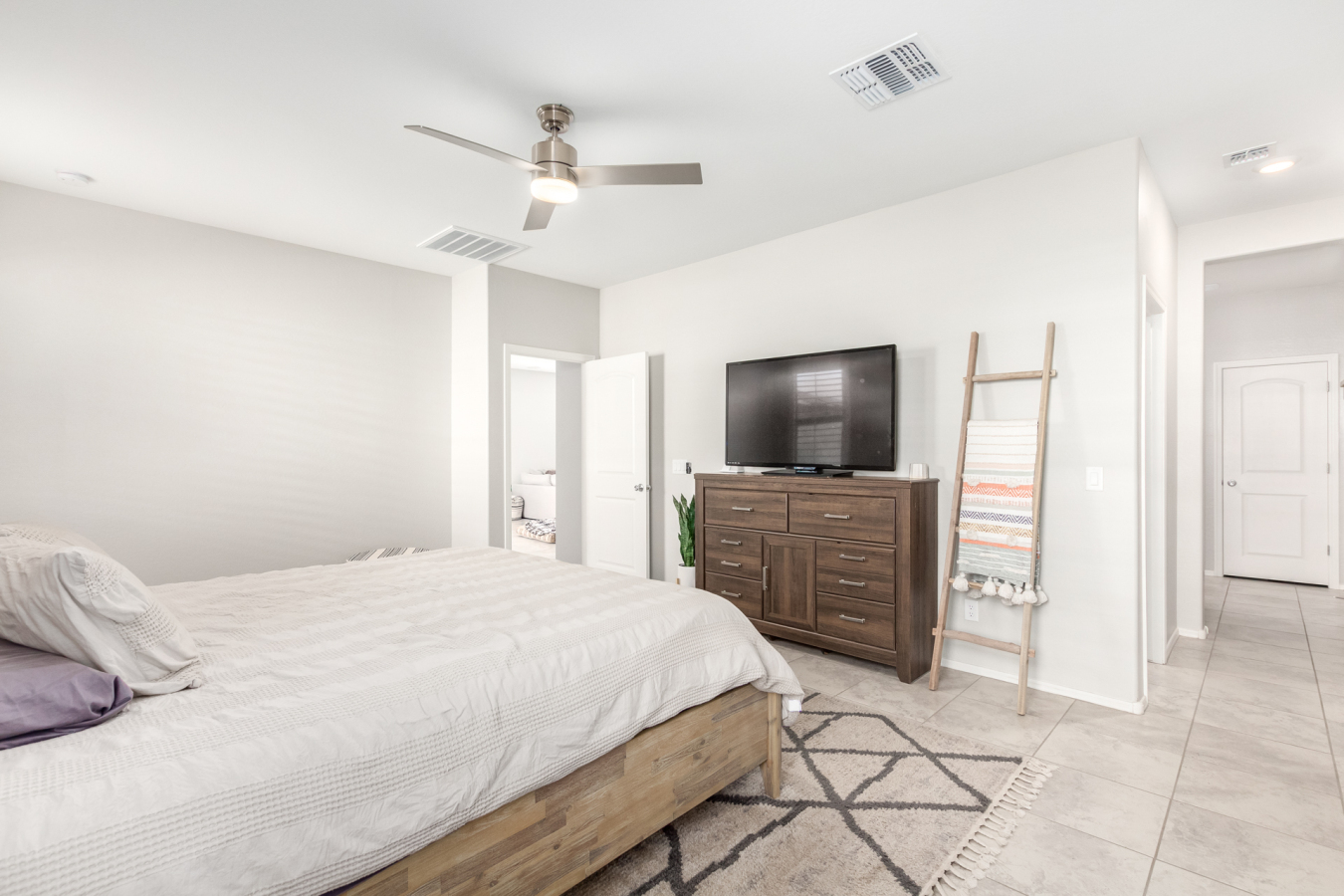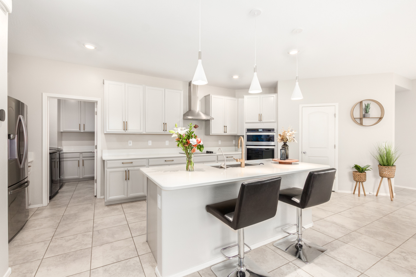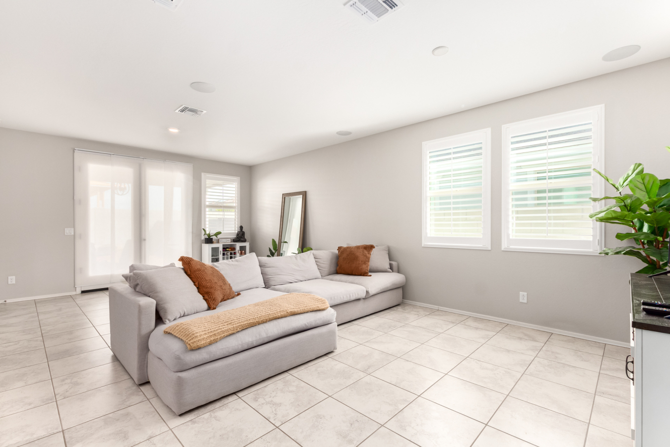 What a charming 3 bed, 2 bath home in the Award-winning Community of Verrado! Fall in love with the sweet curb appeal and the low-maintenance desert landscape. Inside, a large hallway leads you to the great open layout boasting pre-wired surround sound, plantation shutters, and neutral color tile & paint for a bright feel. Practice your cooking skills in this immaculate kitchen showcasing built-in appliances, white cabinets, an island w/breakfast bar, a pantry, and plenty of counter space. The main bedroom is split for extra privacy and offers a walk-in closet & an ensuite w/double sinks. Serene backyard with a covered patio is a black canvas awaiting all your landscaping ideas. EV OUTLET! Community amenities are 78+ parks, 2 golf courses, 4 Community pools, a fitness center, & more.