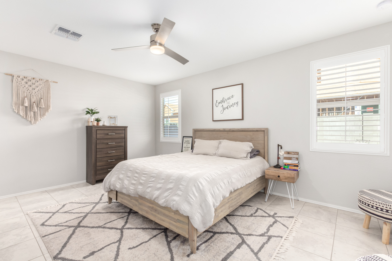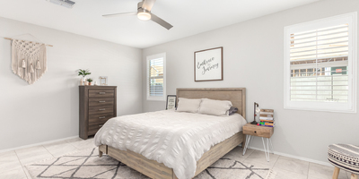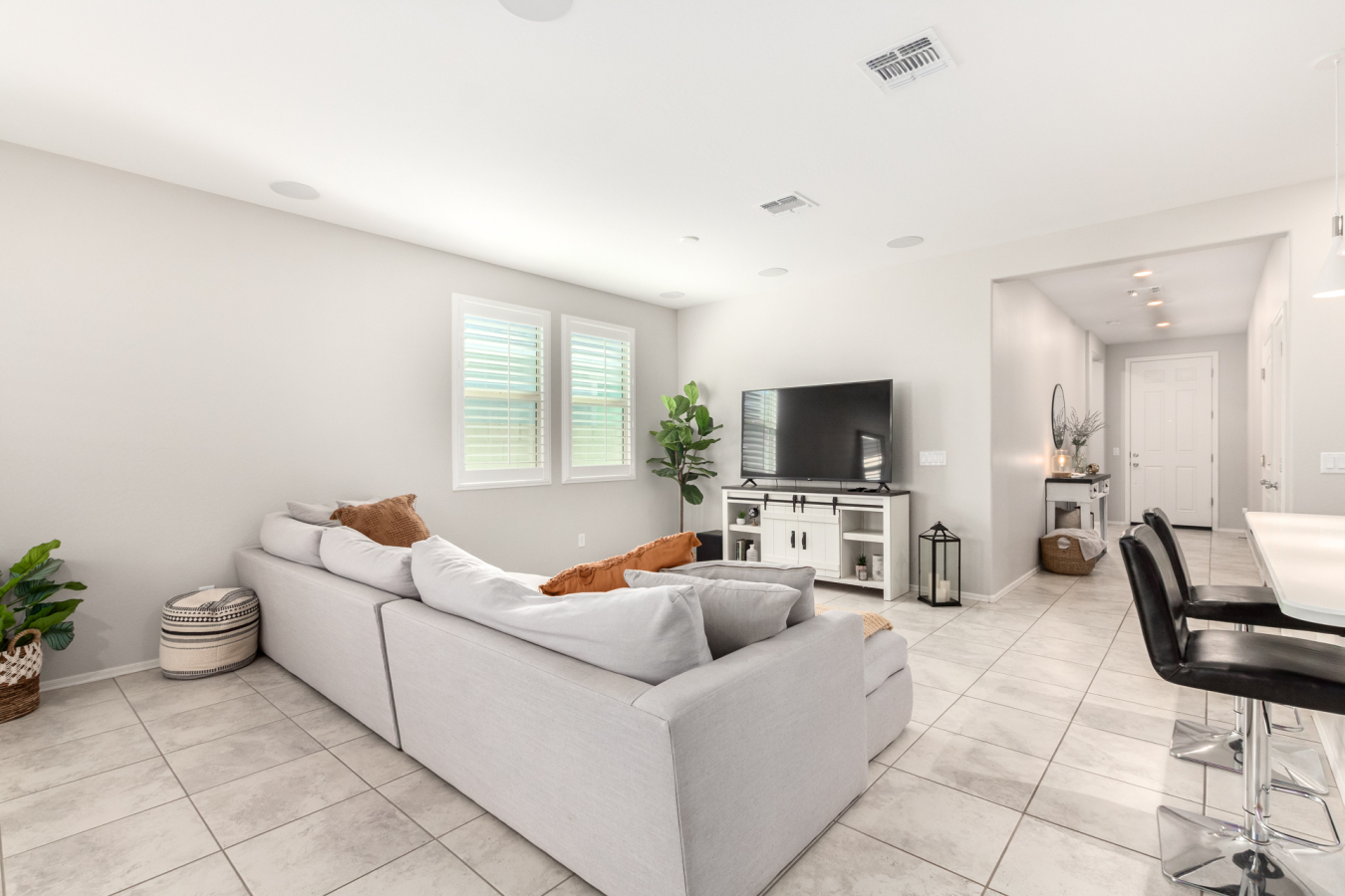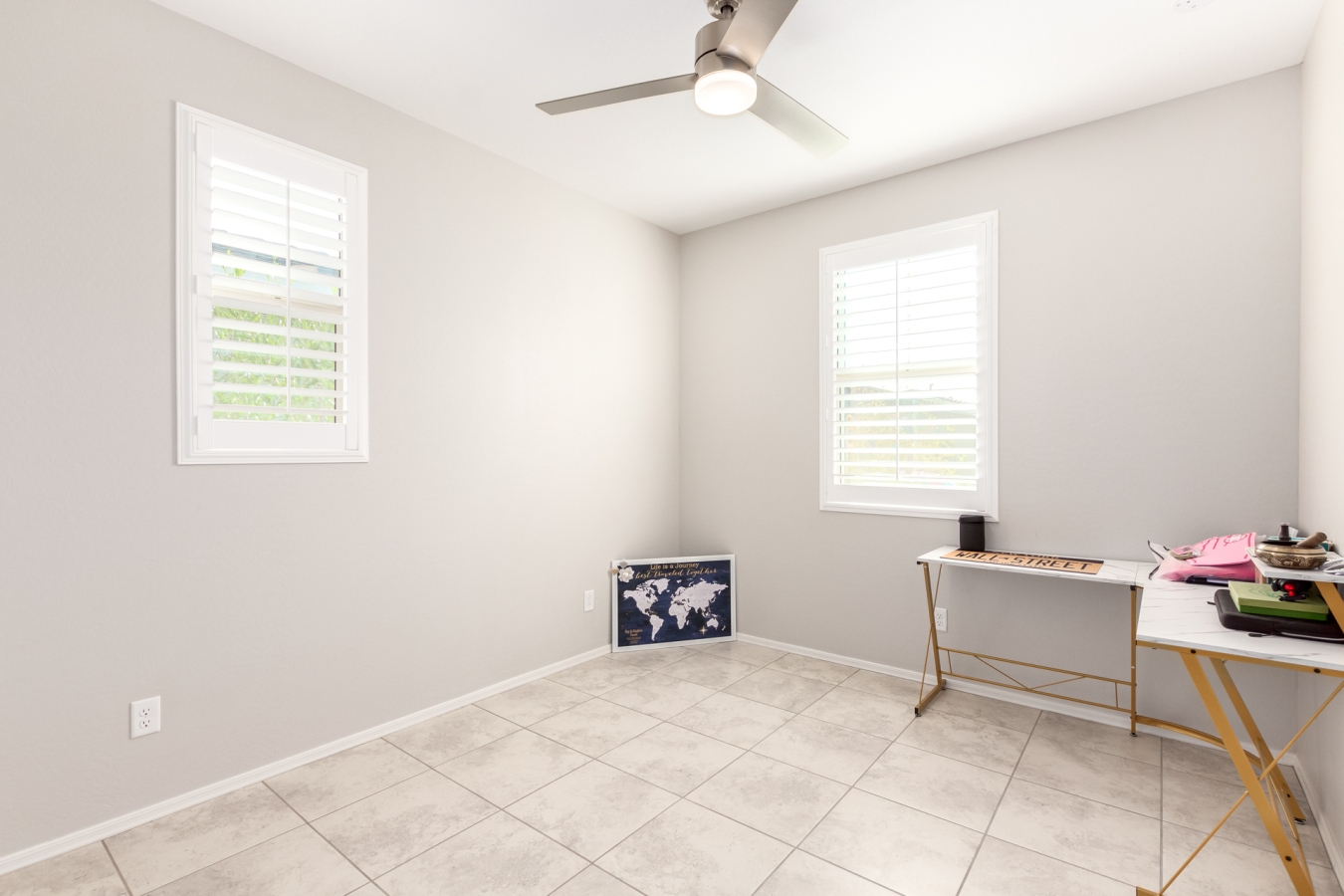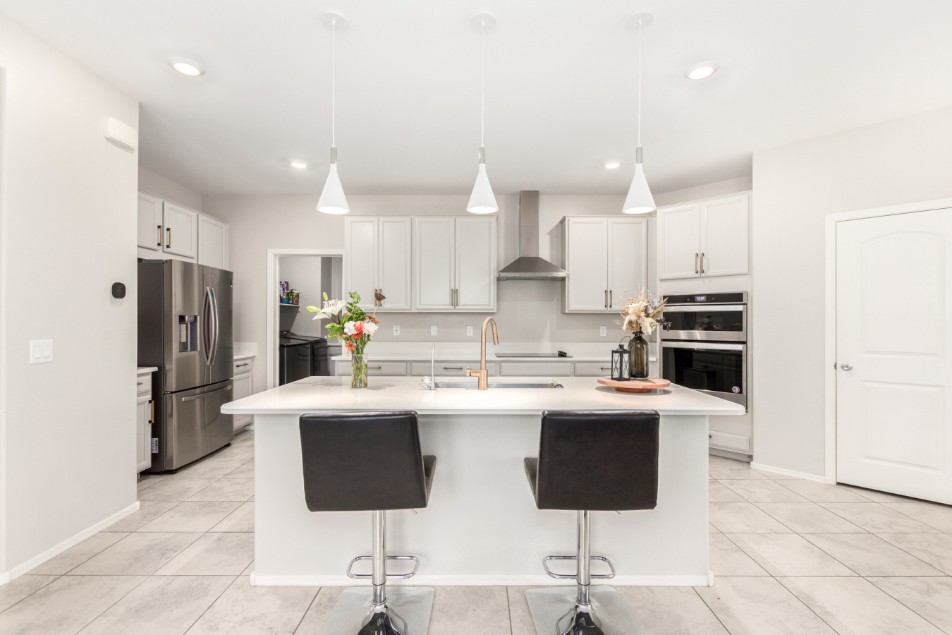What a charming 3 bed, 2 bath home in the Award-winning Community of Verrado! Fall in love with the sweet curb appeal and the low-maintenance desert landscape. Inside, a large hallway leads you to the great open layout boasting pre-wired surround sound, plantation shutters, and neutral color tile & paint for a bright feel. Practice your cooking skills in this immaculate kitchen showcasing built-in appliances, white cabinets, an island w/breakfast bar, a pantry, and plenty of counter space. The main bedroom is split for extra privacy and offers a walk-in closet & an ensuite w/double sinks. Serene backyard with a covered patio is a black canvas awaiting all your landscaping ideas. EV OUTLET! Community amenities are 78+ parks, 2 golf courses, 4 Community pools, a fitness center, & more.
