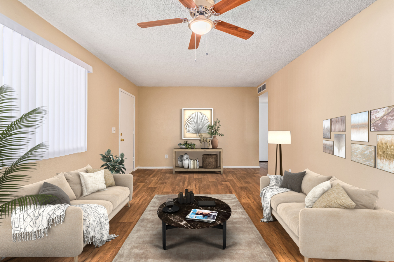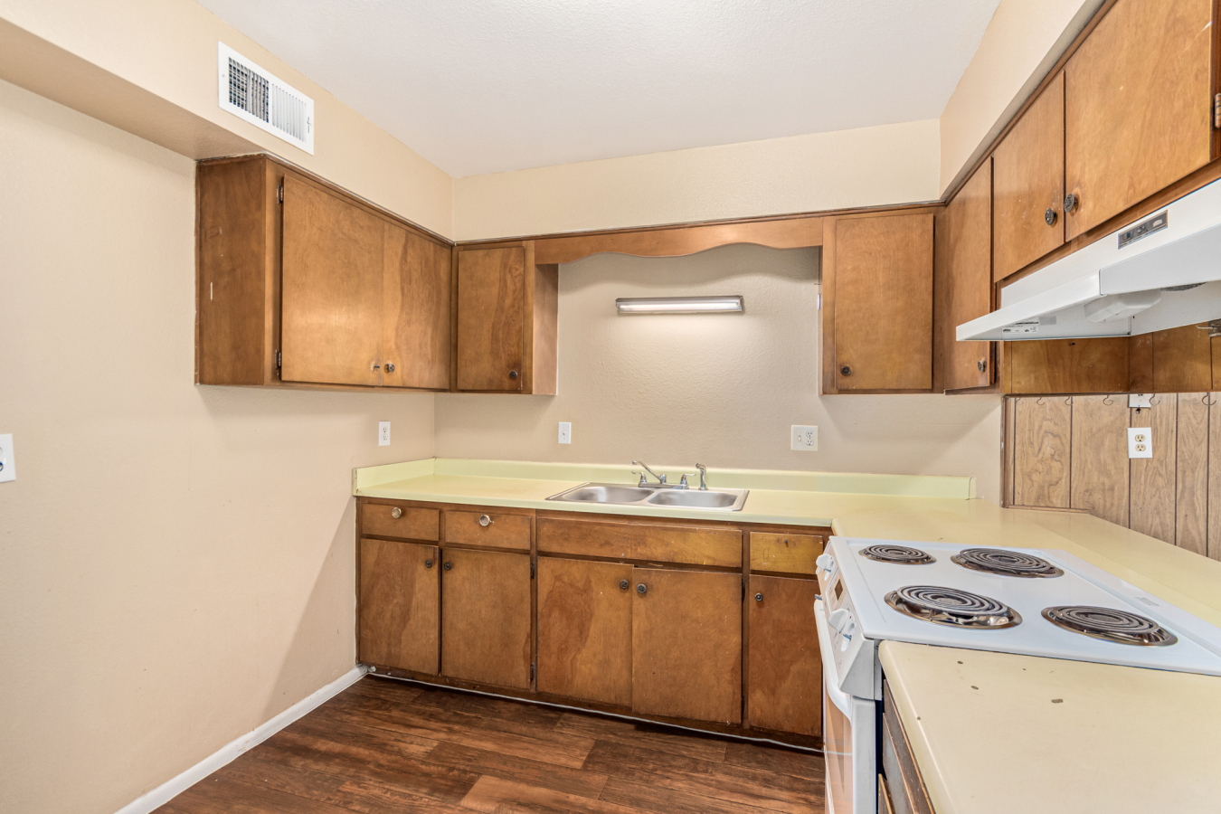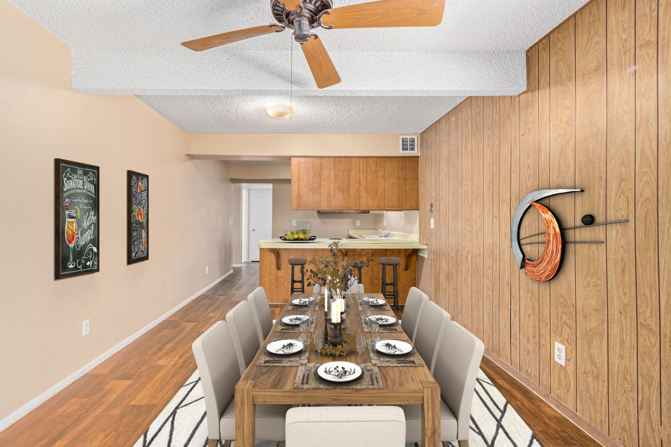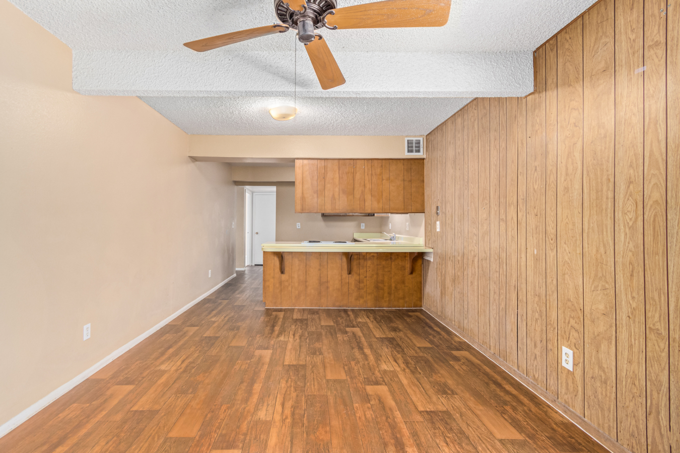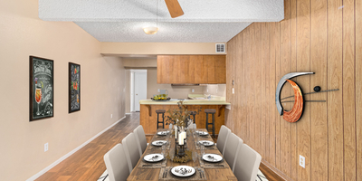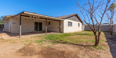 Look no further! This move-in-ready 4 bed, 2 bath residence in Phoenix is now on the market! Excellent location close to parks, schools, and markets. Come inside to discover a perfectly-flowing layout featuring wood-look flooring, neutral palette throughout, and traditional wood paneling. The immaculate kitchen showcases wood cabinetry, built-in appliances, a breakfast bar, and plenty of counter space to cover all your cooking needs. Unwind after a long day in the primary bedroom offering plush carpet in all the right places, a private bathroom, and a walk-in closet. Let your creativity flow in the spacious backyard including a covered patio and great potential for customizing! Don't miss it. This opportunity won't last long!