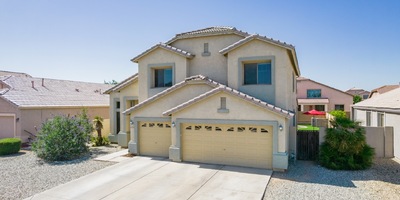 3 BEDROOMS + DEN, 3 BATH HOME * EAT-IN KITCHEN W/ISLAND * VAULTED CEILINGS W/ARCHED ENTRYWAYS * WINDOW BLINDS * FORMAL DINING/LIVING ROOM * LOFT * DEN/OFFICE LOCATED DOWNSTAIRS * FULL MASTER BATH W/SEPARATE SHOWER/TUB & DOUBLE SINKS * REFRESHING POOL PERFECT FOR ARIZONA'S SUMMERS * LOW MAINTENANCE FRONT DESERT LANSCAPING & LOW MAINTENANCE ARTIIFICIAL GRASS BACK YARD *EXTENDED COVERED PATIO * 3 CAR GARAGE * THERE ARE TWO AC UNITS, ONE WAS REPLACED IN 2021 AND THE OTHER WAS REPLACES IN 2023. GREAT BUY!