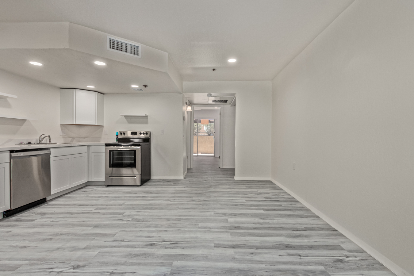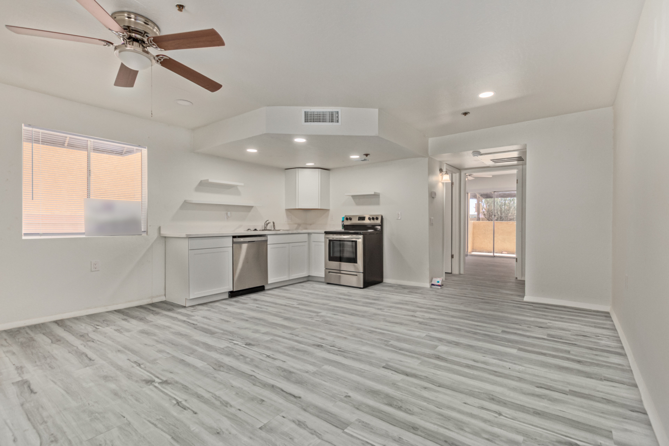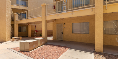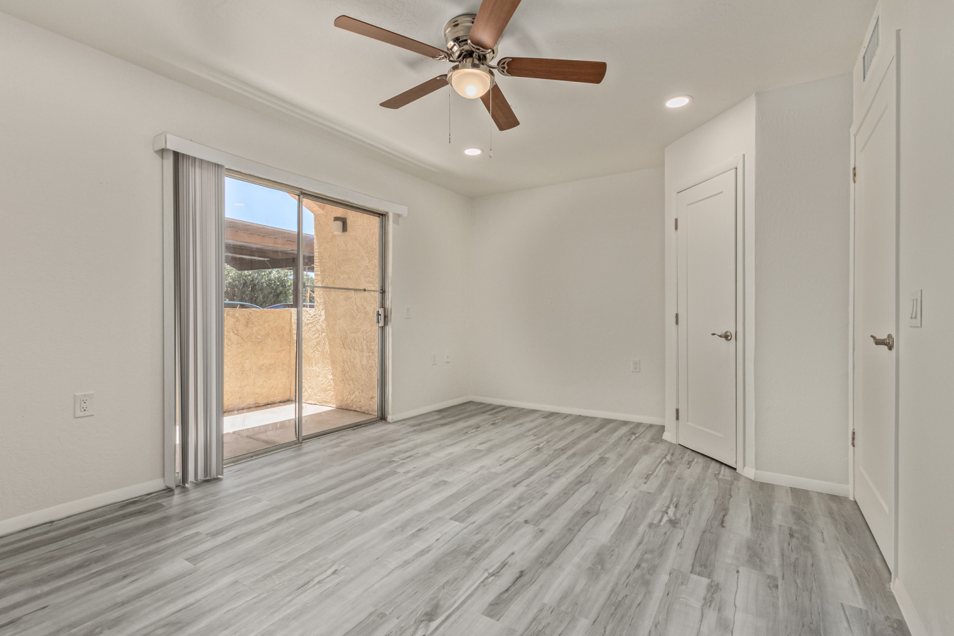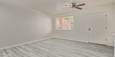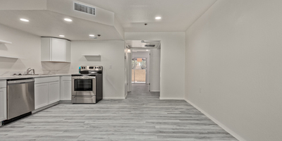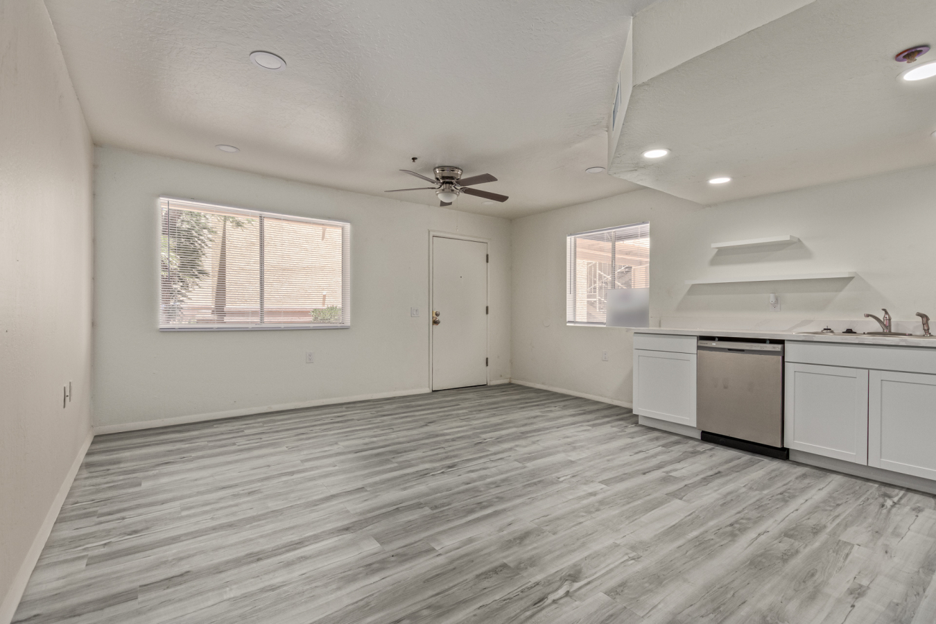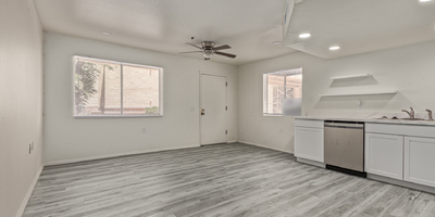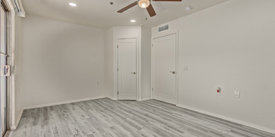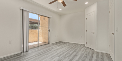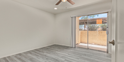 Look no further! This lovely property located in The Springs Condominiums is the perfect place for you! Come inside to find an inviting open-layout showcasing soothing palette, recessed lighting, and gray wood-look flooring that runs throughout. Continue to the impeccable kitchen offering white cabinetry, stainless steel appliances, and plenty of counter space for all your cooking needs. The charming bedroom features a generously-sized walk-in closet and direct access to the cozy back patio, where you can enjoy a peaceful moment of solitude or have a cup of your favorite coffee. You'll also find a refreshing Community pool, great for cooling off on hot summer days! Don't miss it! This opportunity won't last long!