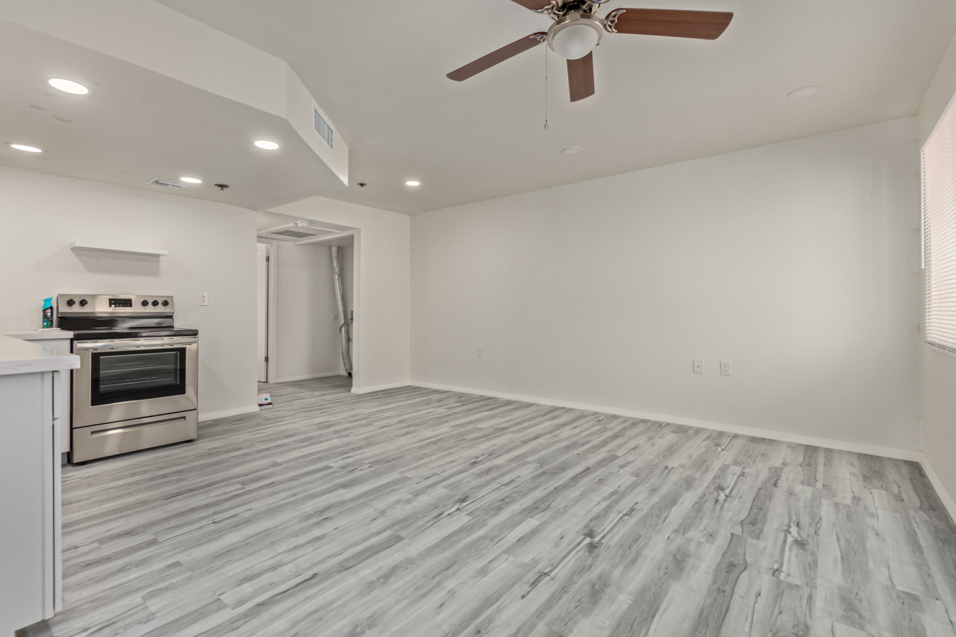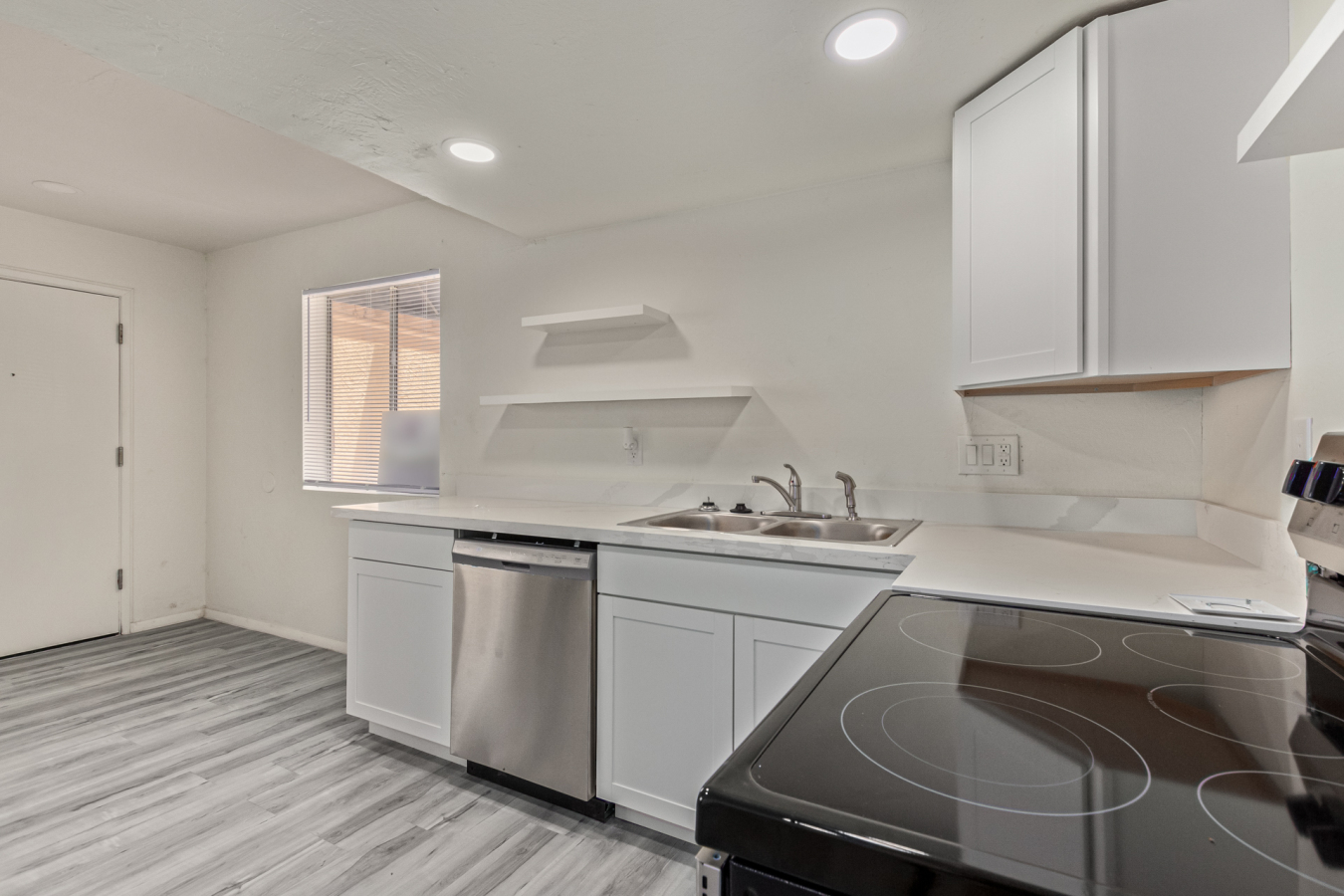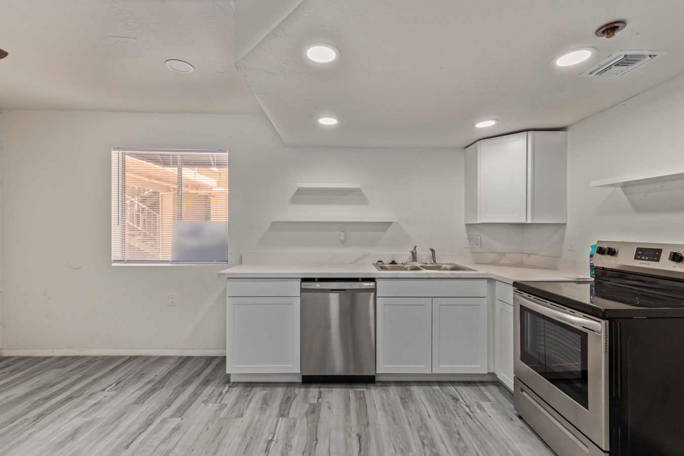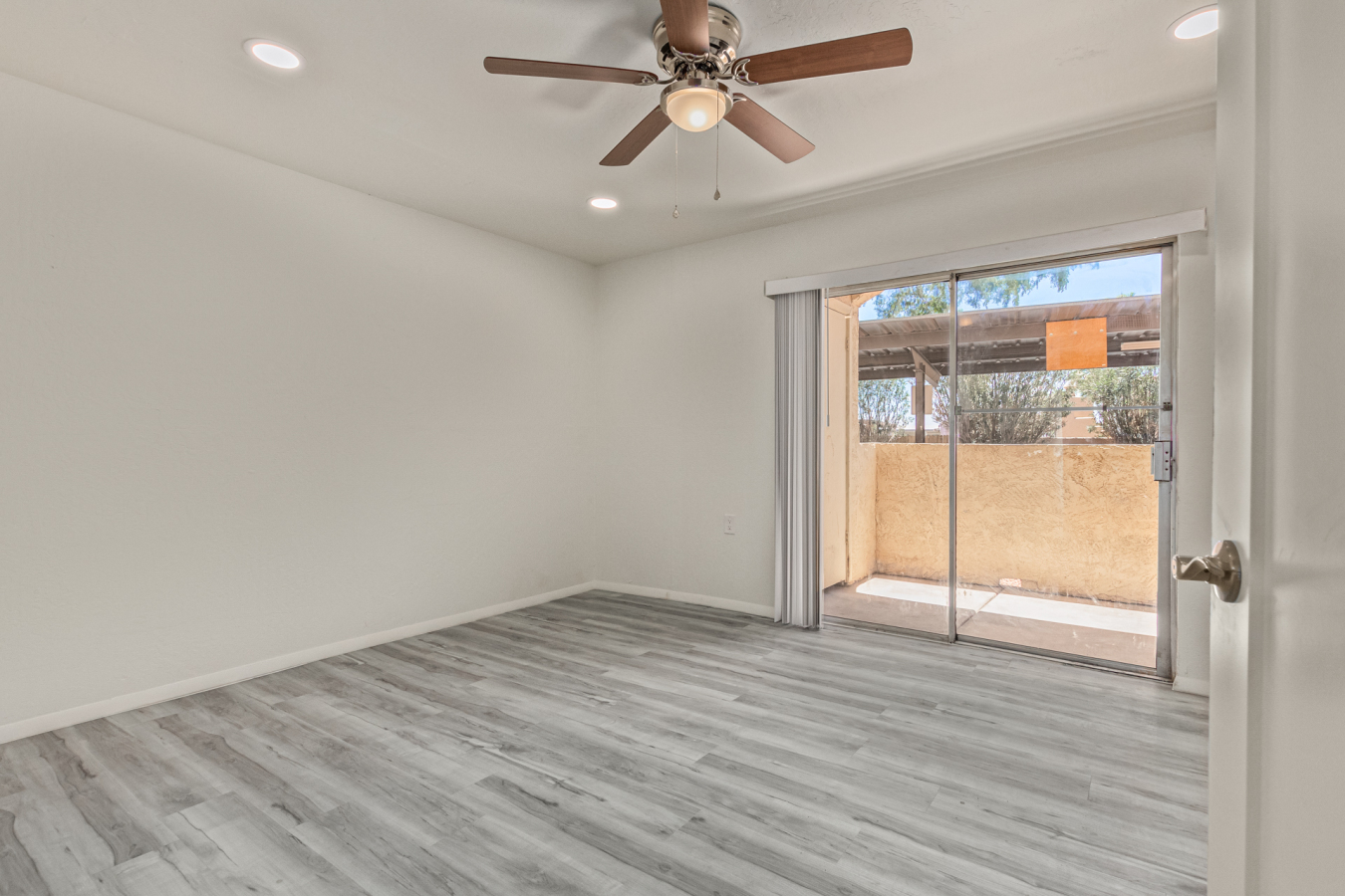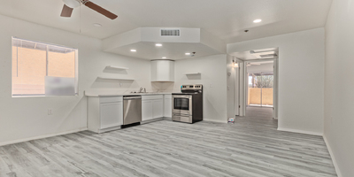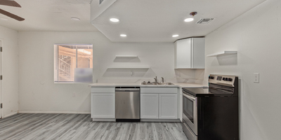 Look no further! This lovely property located in The Springs Condominiums is the perfect place for you! Come inside to find an inviting open-layout showcasing soothing palette, recessed lighting, and gray wood-look flooring that runs throughout. Continue to the impeccable kitchen offering white cabinetry, stainless steel appliances, and plenty of counter space for all your cooking needs. The charming bedroom features a generously-sized walk-in closet and direct access to the cozy back patio, where you can enjoy a peaceful moment of solitude or have a cup of your favorite coffee. You'll also find a refreshing Community pool, great for cooling off on hot summer days! Don't miss it! This opportunity won't last long!