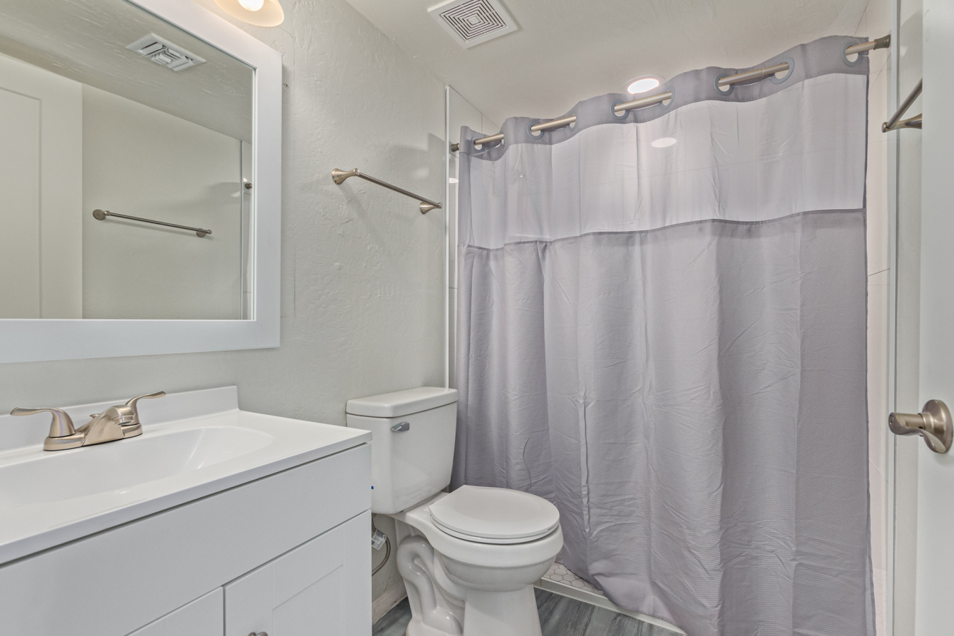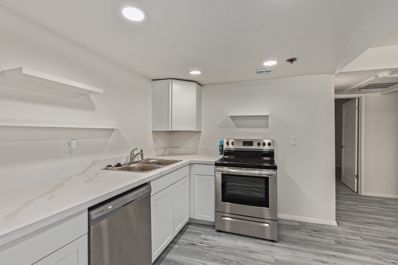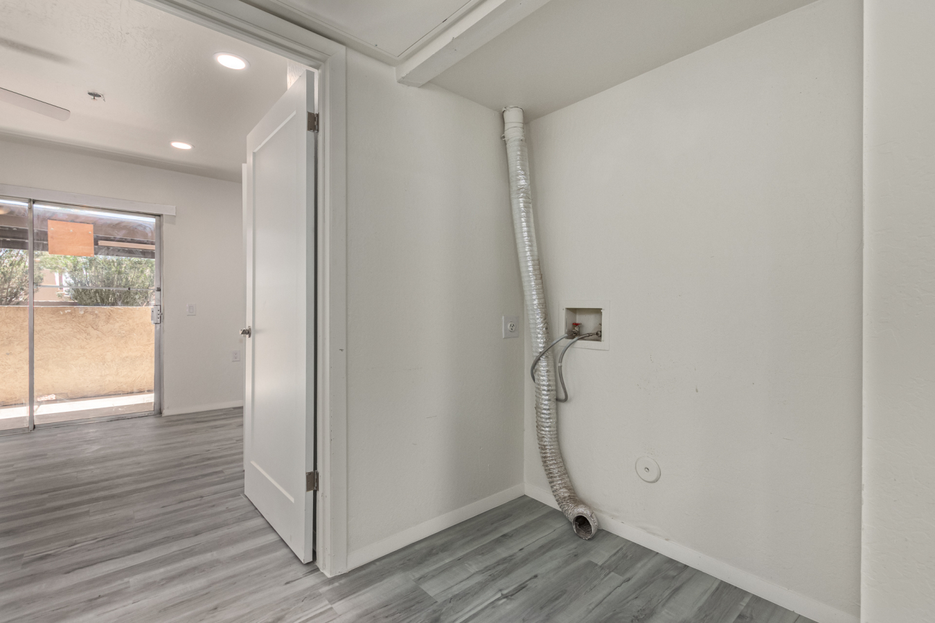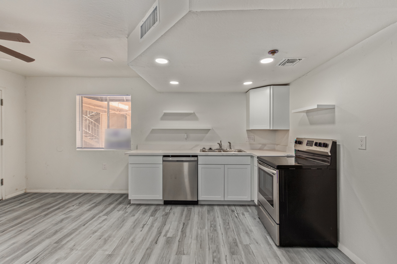 Look no further! This lovely property located in The Springs Condominiums is the perfect place for you! Come inside to find an inviting open-layout showcasing soothing palette, recessed lighting, and gray wood-look flooring that runs throughout. Continue to the impeccable kitchen offering white cabinetry, stainless steel appliances, and plenty of counter space for all your cooking needs. The charming bedroom features a generously-sized walk-in closet and direct access to the cozy back patio, where you can enjoy a peaceful moment of solitude or have a cup of your favorite coffee. You'll also find a refreshing Community pool, great for cooling off on hot summer days! Don't miss it! This opportunity won't last long!