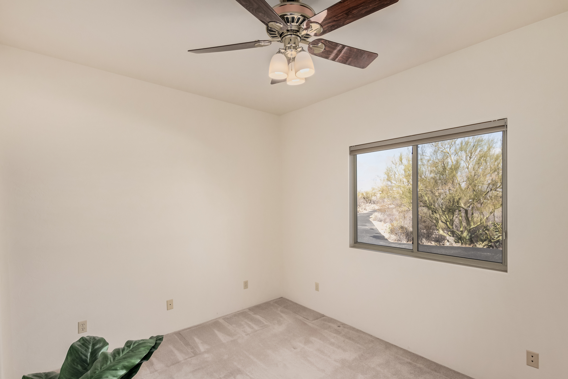 Exclusive, Gated Wild Horse Ranch Estates! A Long driveway leads to this lovely home situated on almost 4 acres on a cul-de-sac lot and was built to capture picturesque views of the mountains from all windows. Enter through a large inviting courtyard, a perfect spot to relax and smell the roses while sipping morning coffee or an afternoon beverage and enjoying the incredible sunrises and sunsets. The inviting great room offers a warming gas fireplace, high ceilings, and large windows showcasing both the Rincon and Catalina mountain ranges, and streaming in natural lighting. Spacious chef's kitchen features a convenient breakfast bar, center island, loads of cabinets and counter space, and a fantastic pantry cabinet with easily accessible foldout shelves. An ideal place to prepare holiday meals for friends and family. Expansive ensuite with dual sinks, jetted soaking tub, separate walk-in shower with rain-shower fixtures, linen closet, and a private door to the back yard.