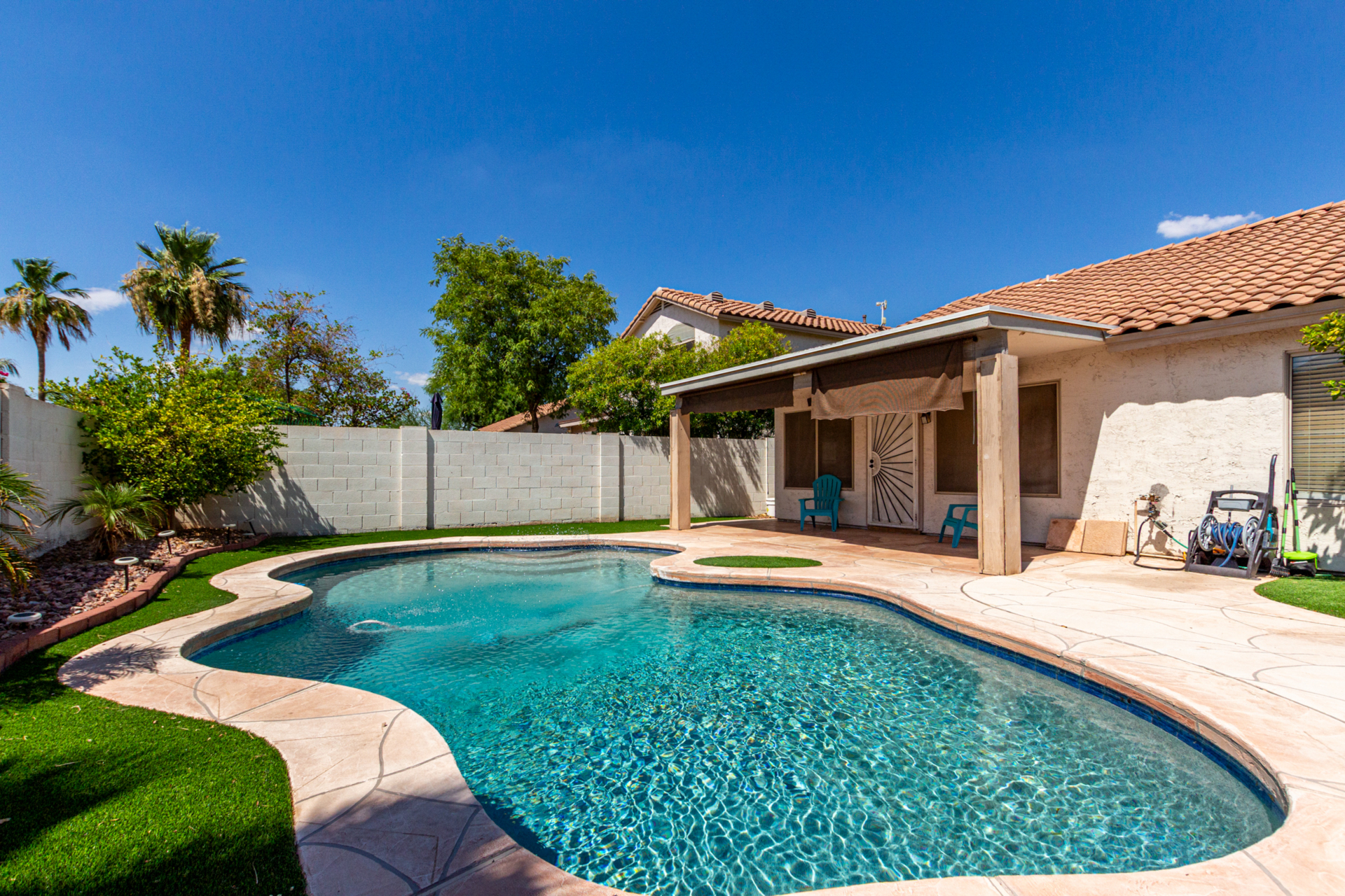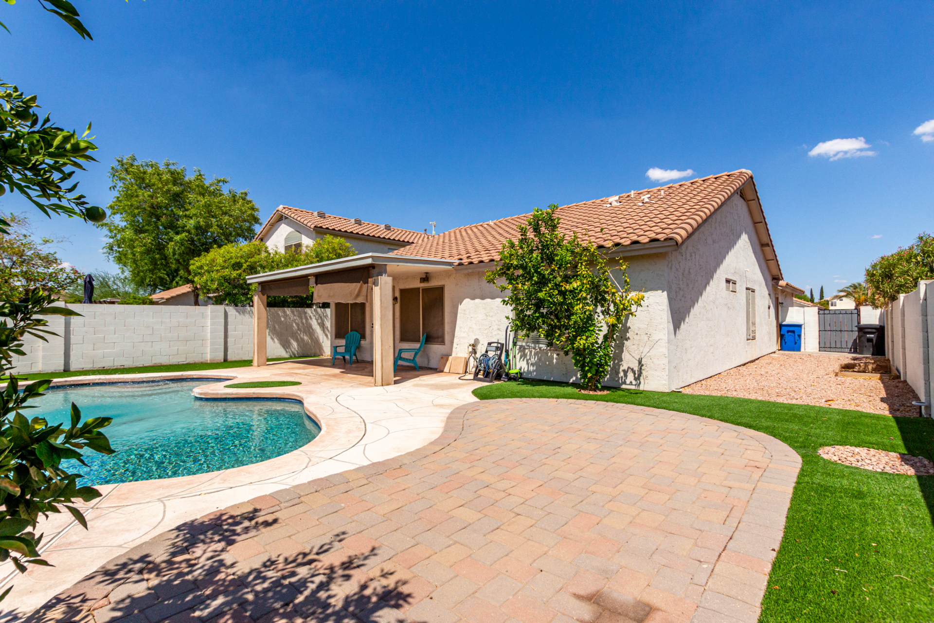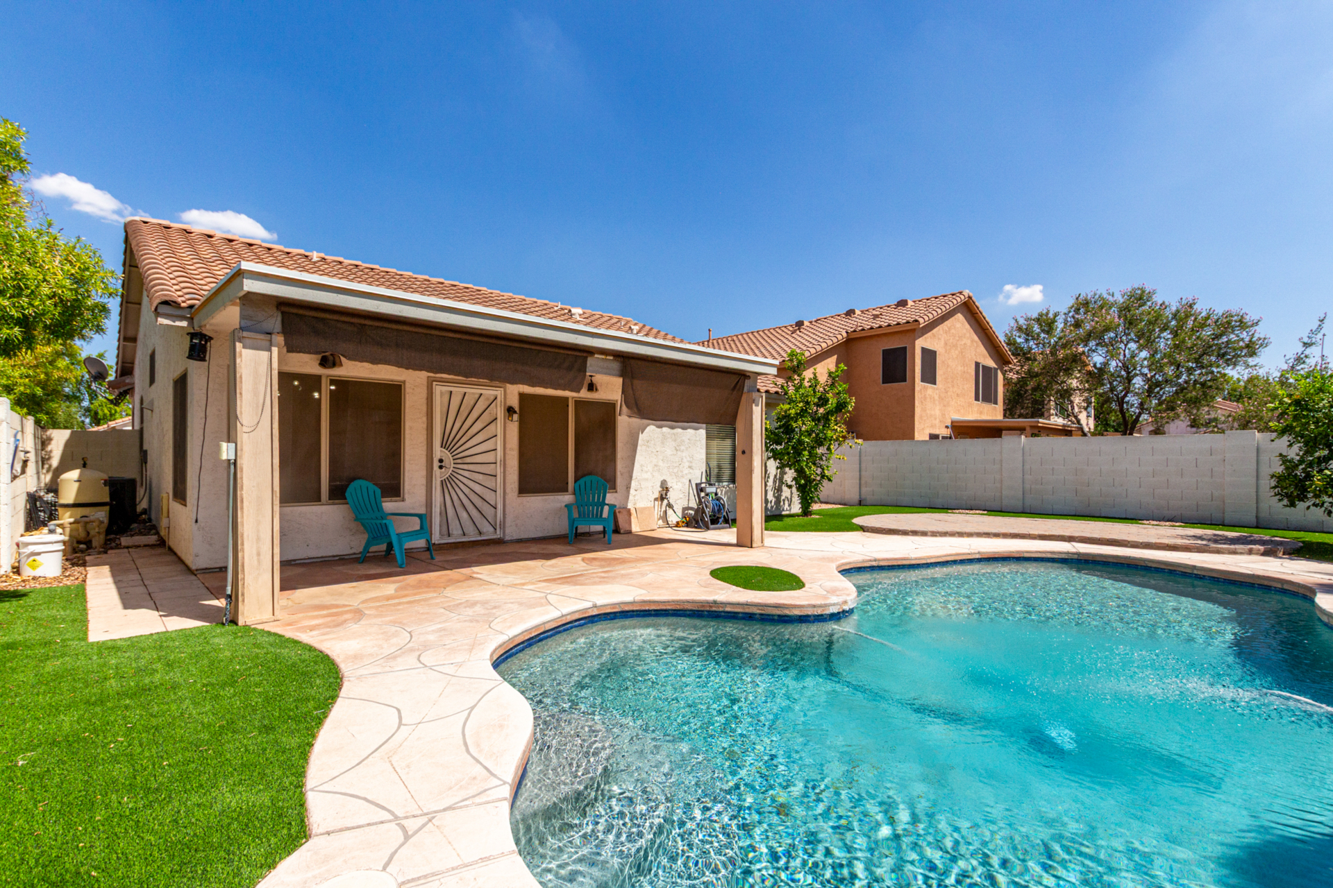 Check out this One-of-a-Kind Clemente Ranch Charmer. This gorgeous home is a Vibe...Sparkling pool, artificial turf & modern finishes throughout are just a few of the details that make this home special. Come admire the creative touches inside and out that customize it in every way. Plantation shutters, granite counters, custom paint, wood-look laminate flooring, cool lighting plus textures inside & out. This incredible backyard is the place everyone will want to chill on those hot AZ days. Your chance to live like you're on vacation 24/7 starts with a quick tour today.