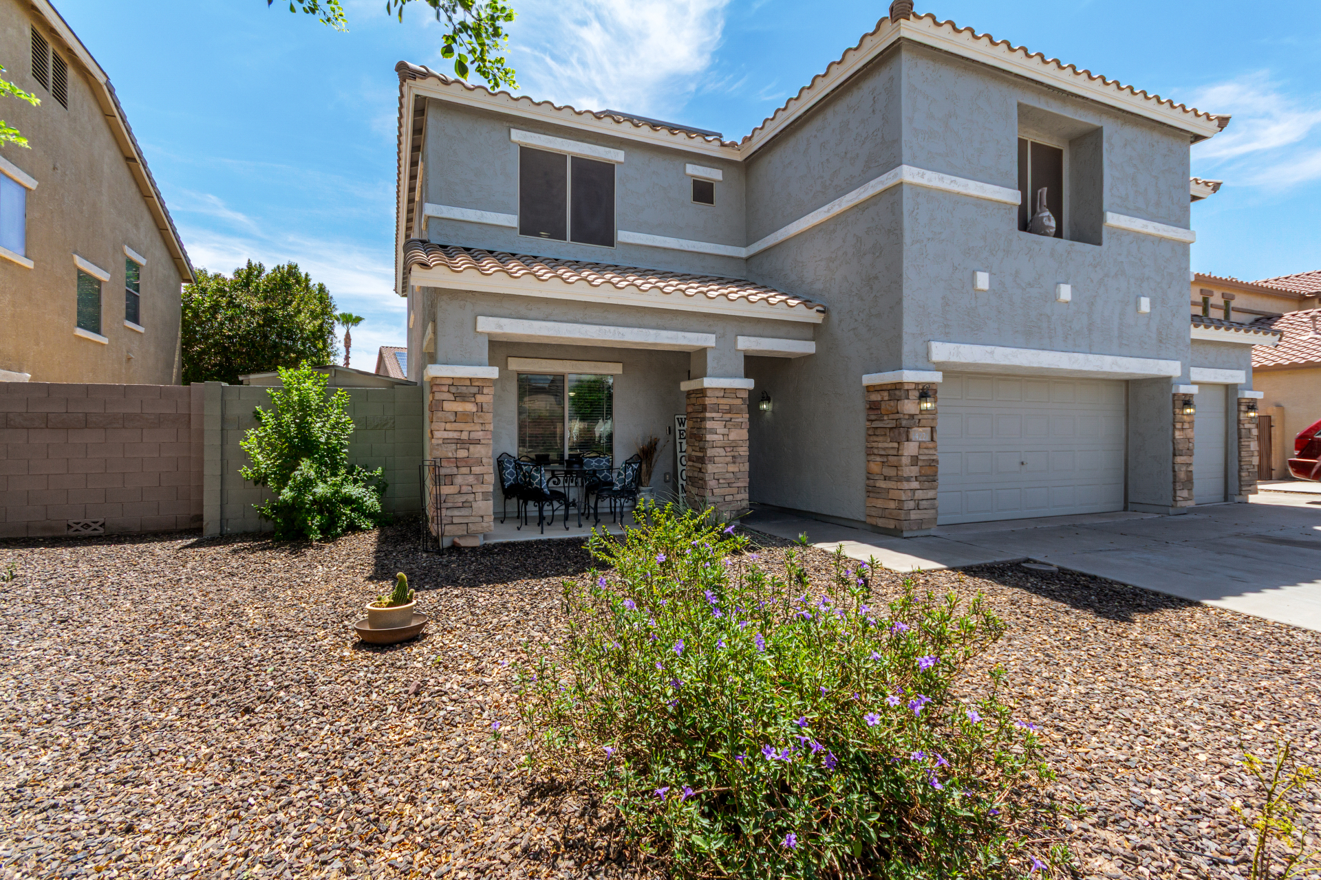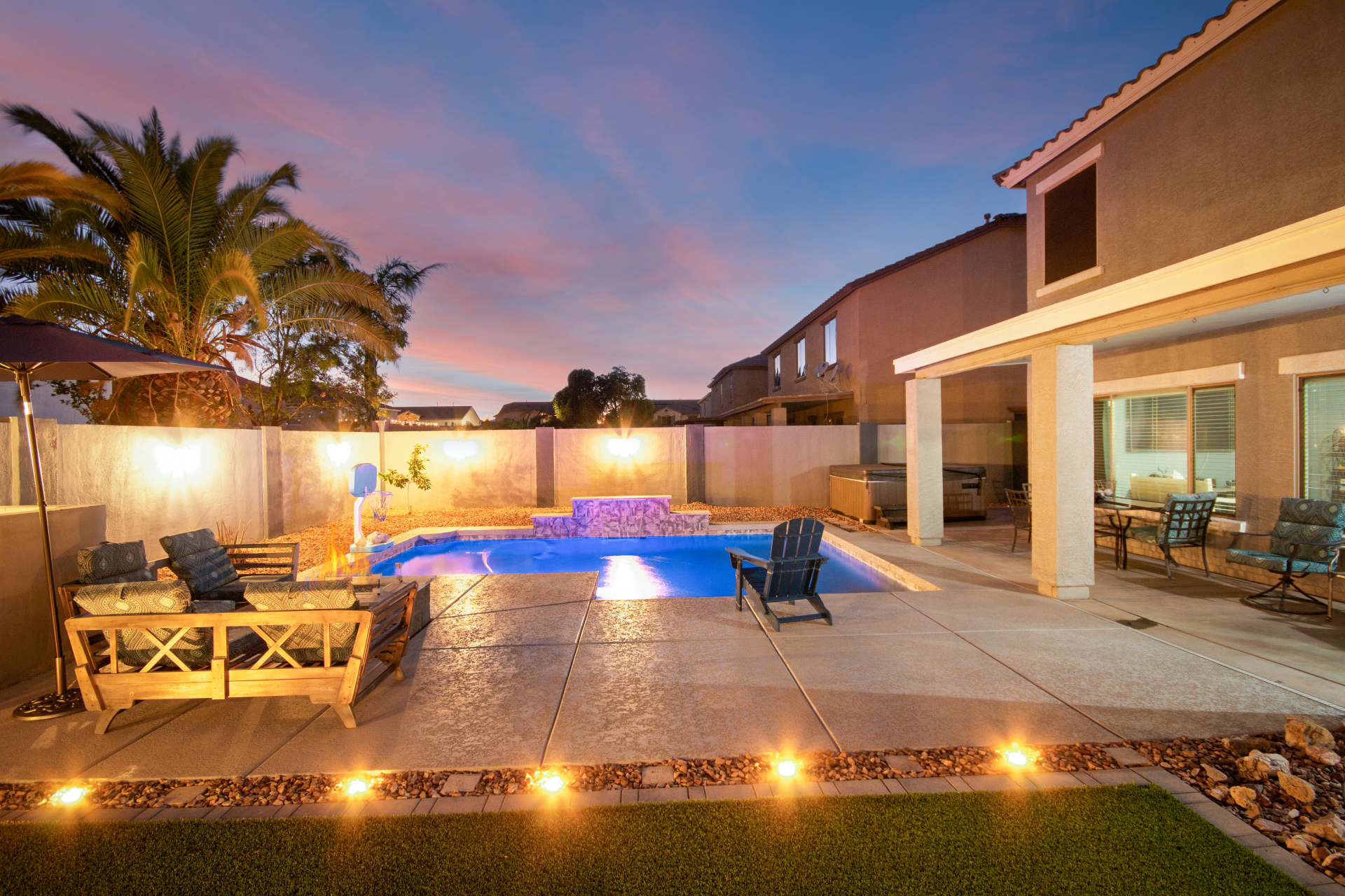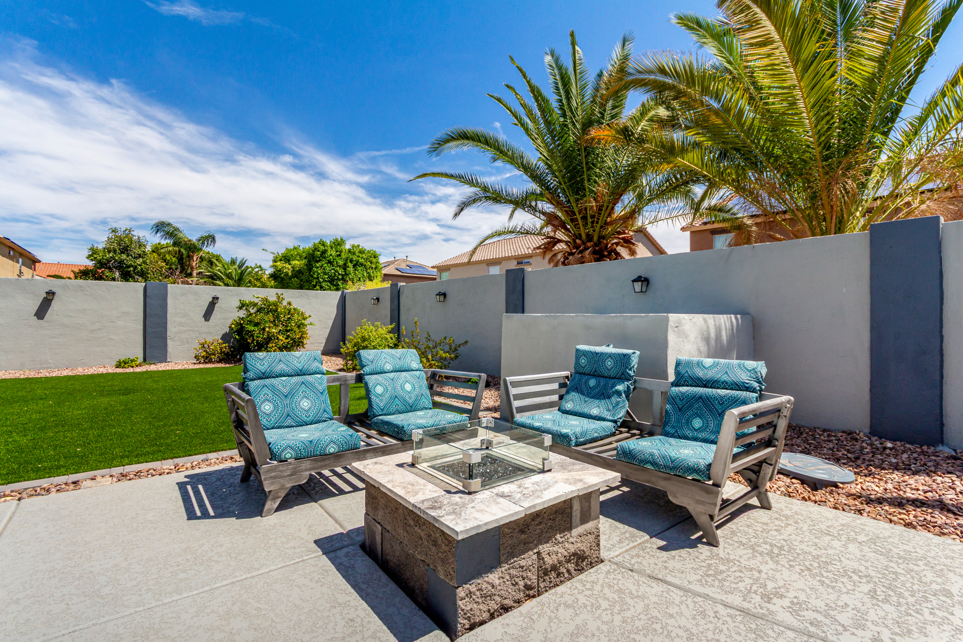 This 5-BR, 3-BA home is perfect for family living. Enjoy a large family-room, oversized living room, and huge loft, plus a sprawling master suite. The chef's kitchen with a large island and textured granite countertops is ideal for meals and gatherings. Step outside to your backyard oasis with a pool, waterfall, spa, built-in-firepit, grill, and care-free astroturf-perfect for the fun, games & relaxation. Additional features include a 53-panel solar system (paid off), extended driveway, RV gate, 3-car garage, and plenty of storage. Spacious, upgraded, and resort-style, this home has everything your family needs for comfort and entertaining. This gem will not last long!