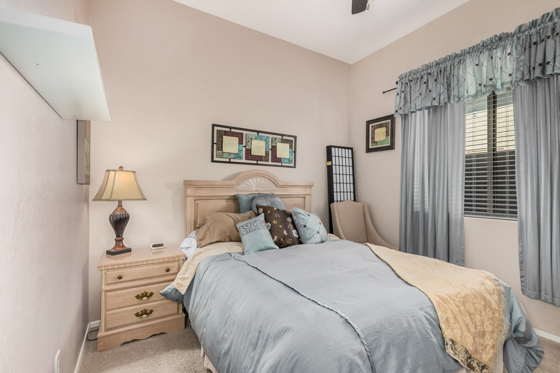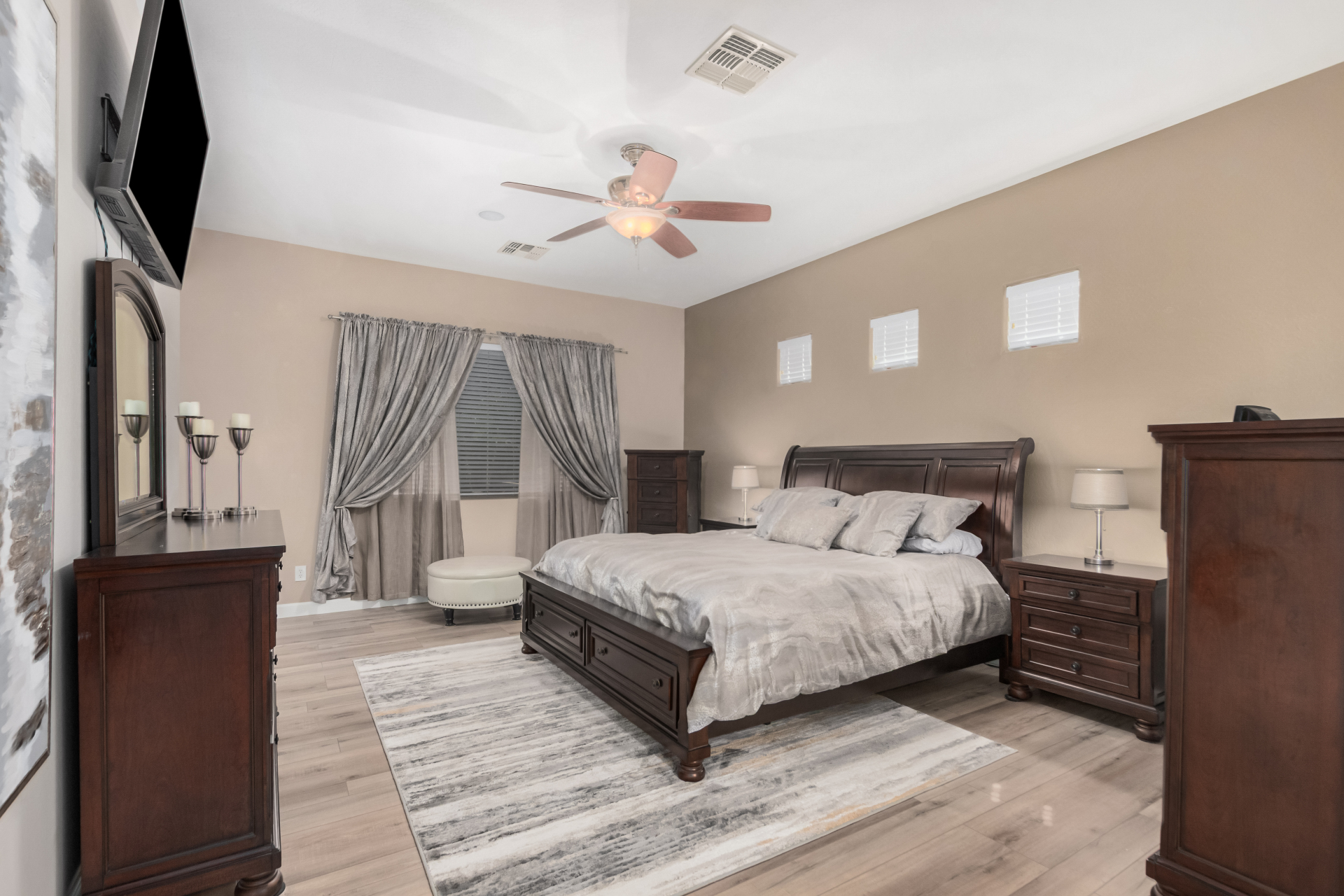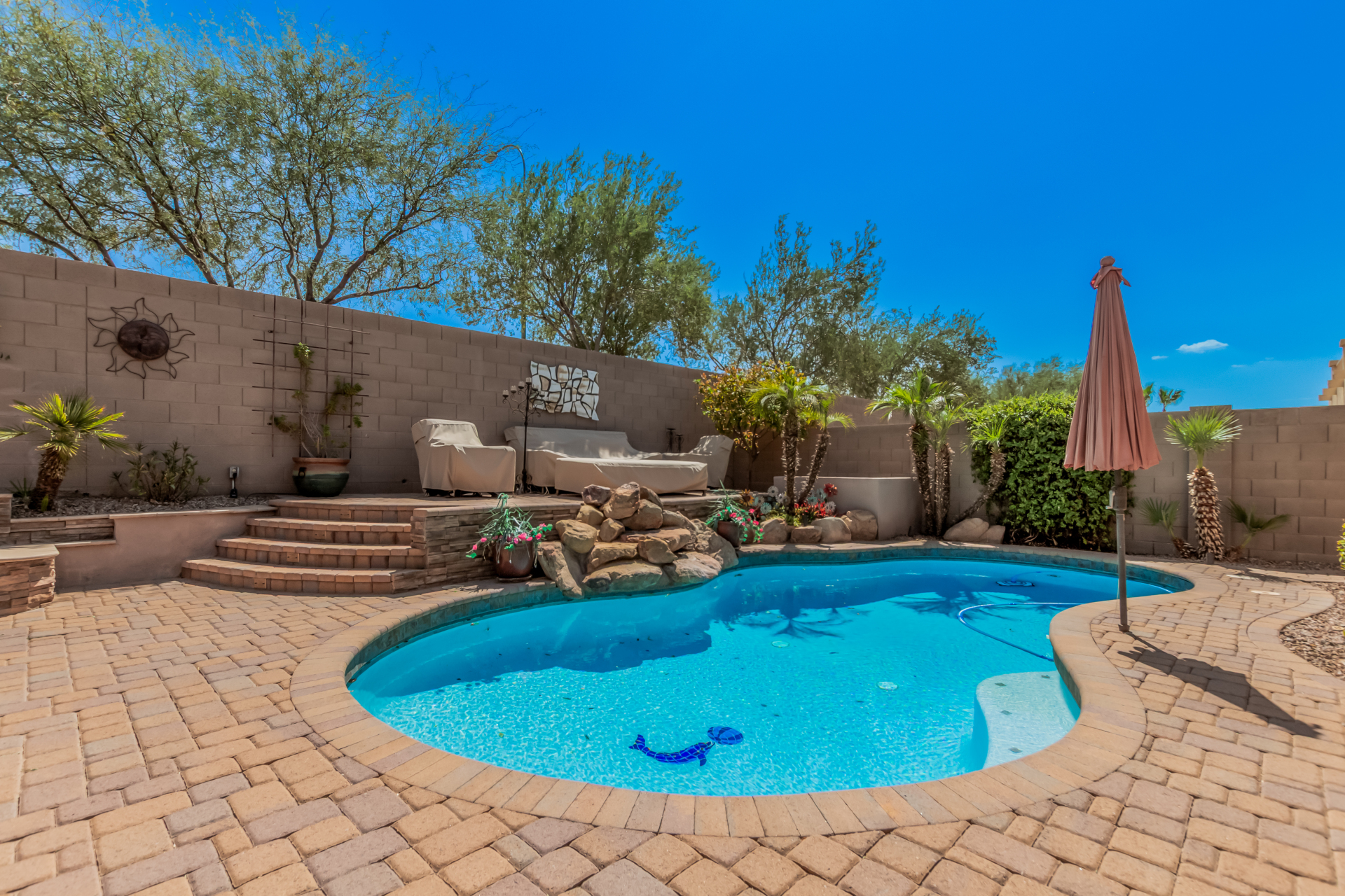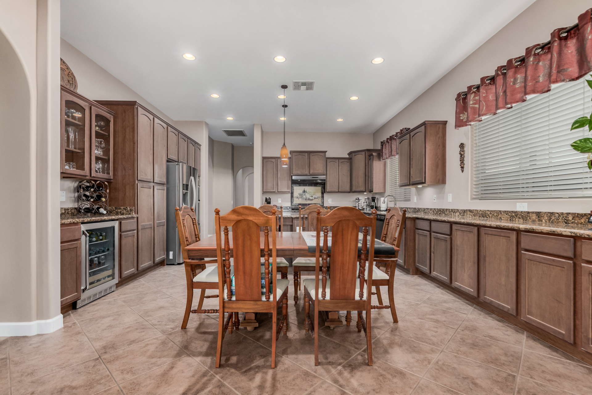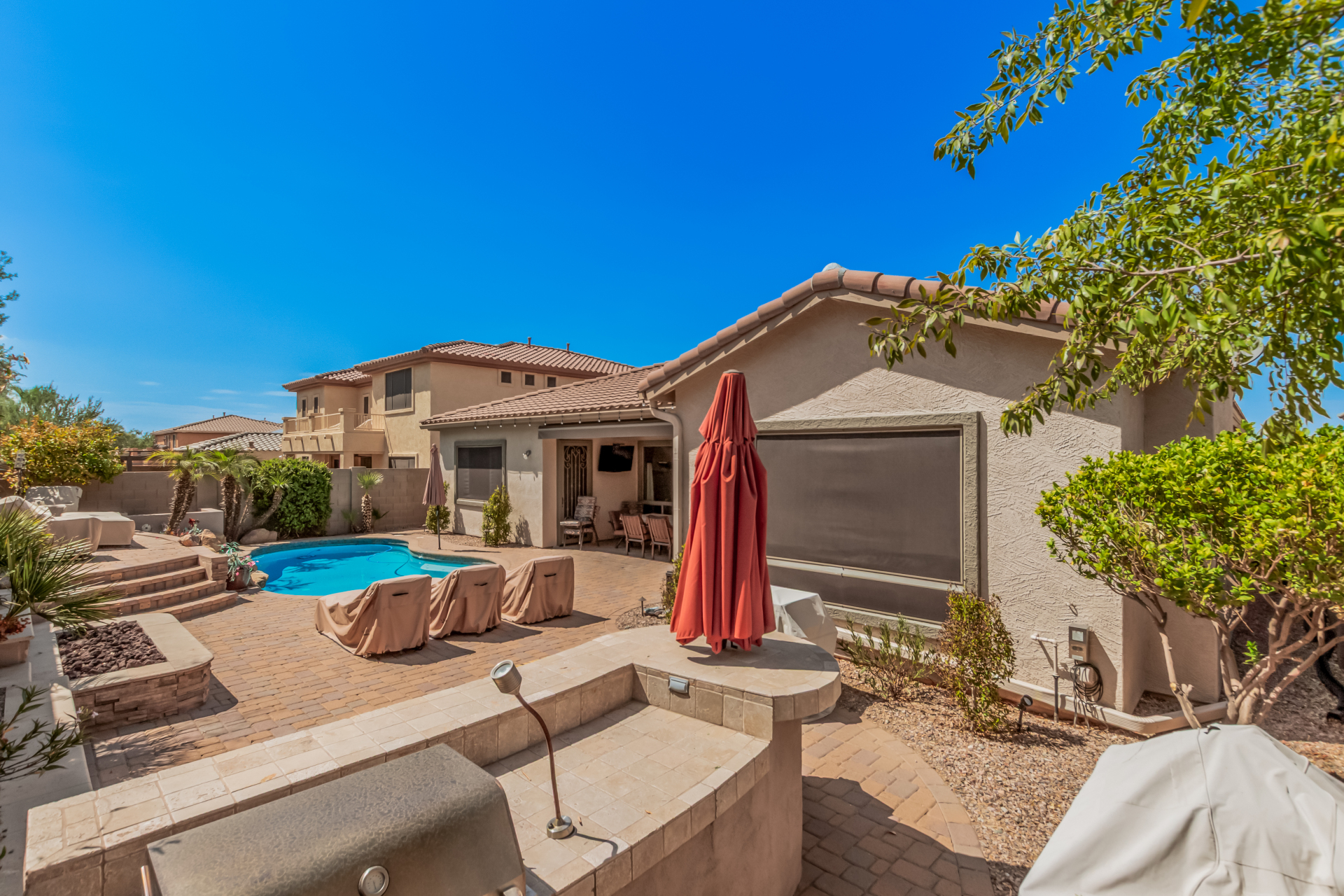 The search is finally over! Fall in love with this stunning residence featuring a 3-car garage, an inviting courtyard with stylish pavers, and pristine artificial turf. The serene living room welcomes you with high ceilings, a soothing palette, and attractive wood-look flooring. Create lasting memories in the family room, complete with a stone-clad fireplace for cozy evenings. The impeccable kitchen boasts granite counters, pendant/recessed lighting, abundant wood cabinetry with crown moulding, stainless steel appliances, and an island with a breakfast bar. The tranquil primary bedroom showcases convenient backyard access, an ensuite with double sinks, and a walk-in closet. You'll also find a den ideal for an office or a quiet study.