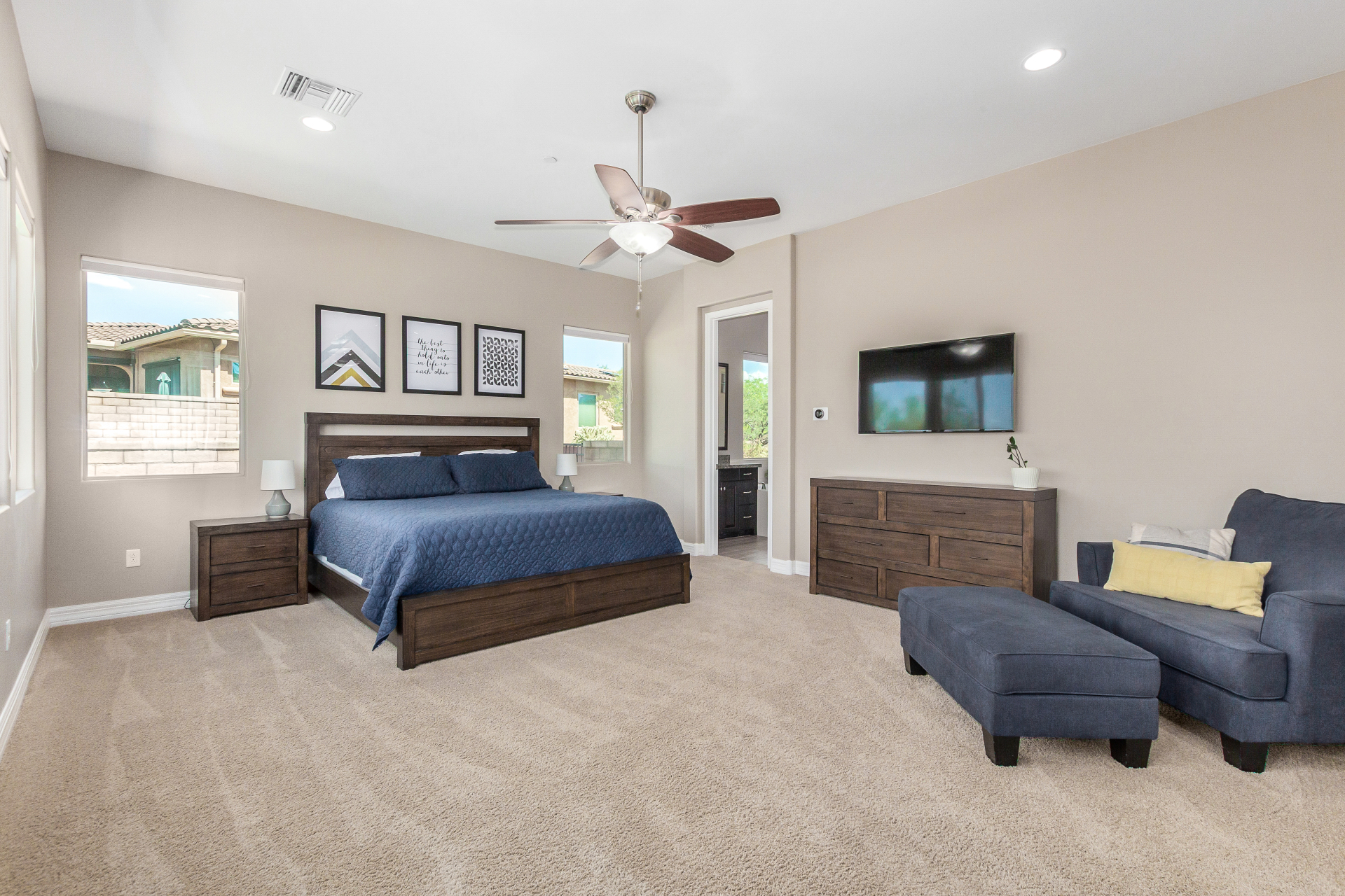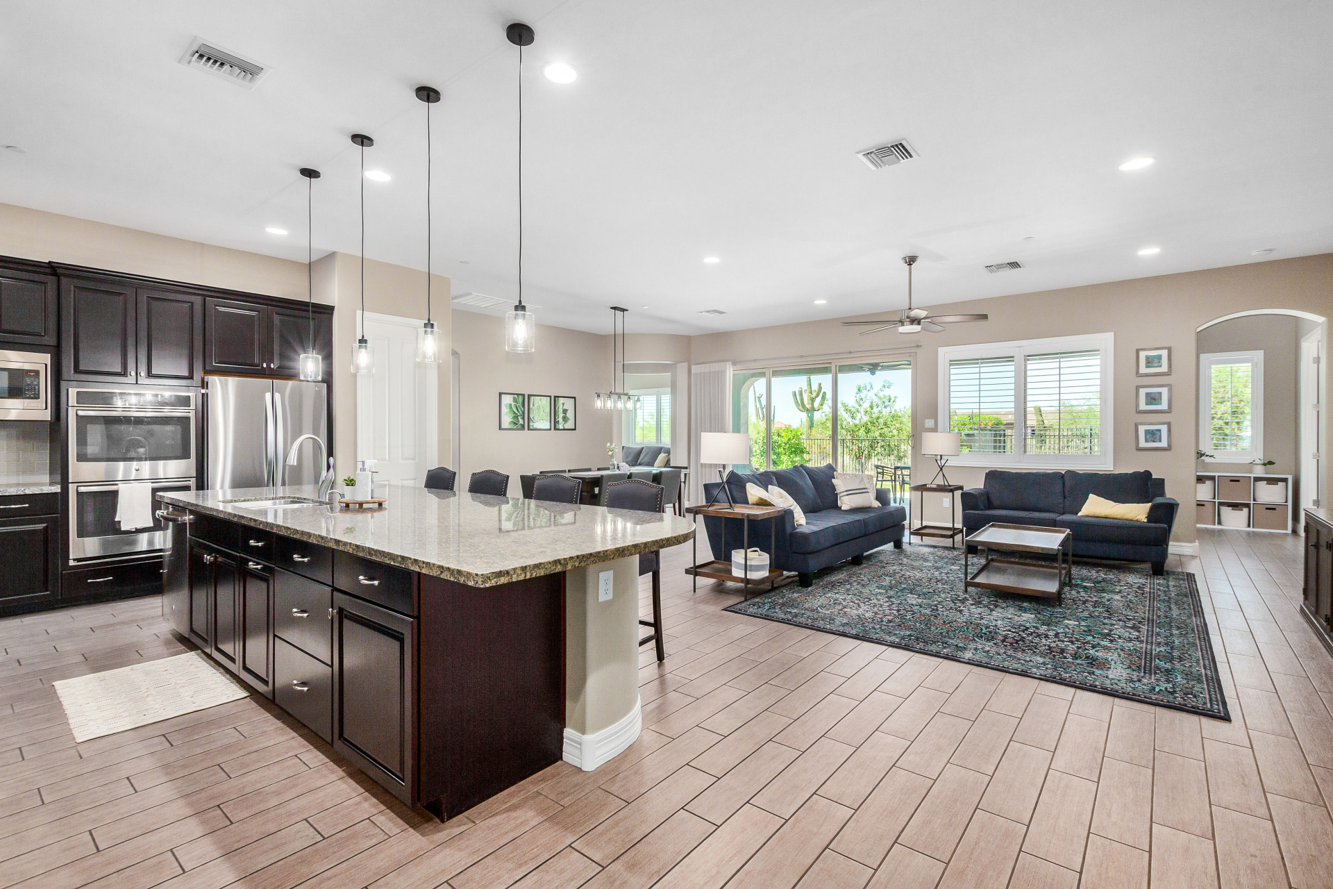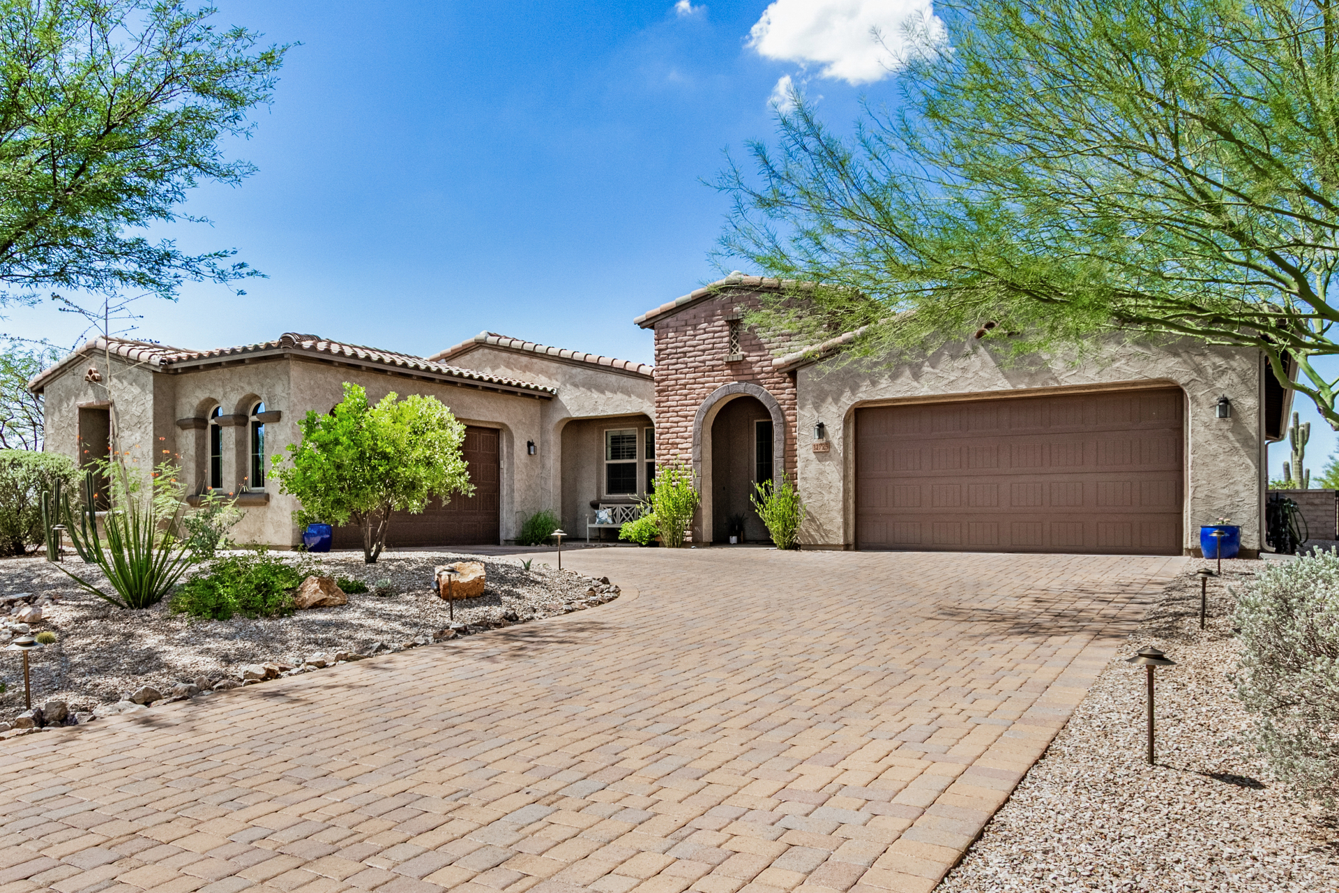 Beyond the gates of one of Oro Valley's most coveted neighborhoods lies a residence that redefines luxury living. Set on nearly half an acre (.45-acre) with a 4-CAR garage, this estate offers the kind of privacy, scale, and spaciousness that are rarely available in this market. This home invites you into the elegant foyer, which sets the stage for what lies beyond. Enjoy the formal living room or continue to the heart of the home and notice the rich dark wood cabinetry, impressive island, designer finishes, large pantry, and 12' sliding glass door. In addition to the great room adjoining the kitchen, the versatile bonus room provides space to curate your own retreat. Five bedrooms and three full baths ensure comfort for family and guests alike, but the primary suite is the crown jewel Expansive and serene, it's a sanctuary of its own with the proportions and appointments you'd expect in a true luxury home. The walk-in shower and soaking tub were crafted with wellness and rejuvenation in mind.