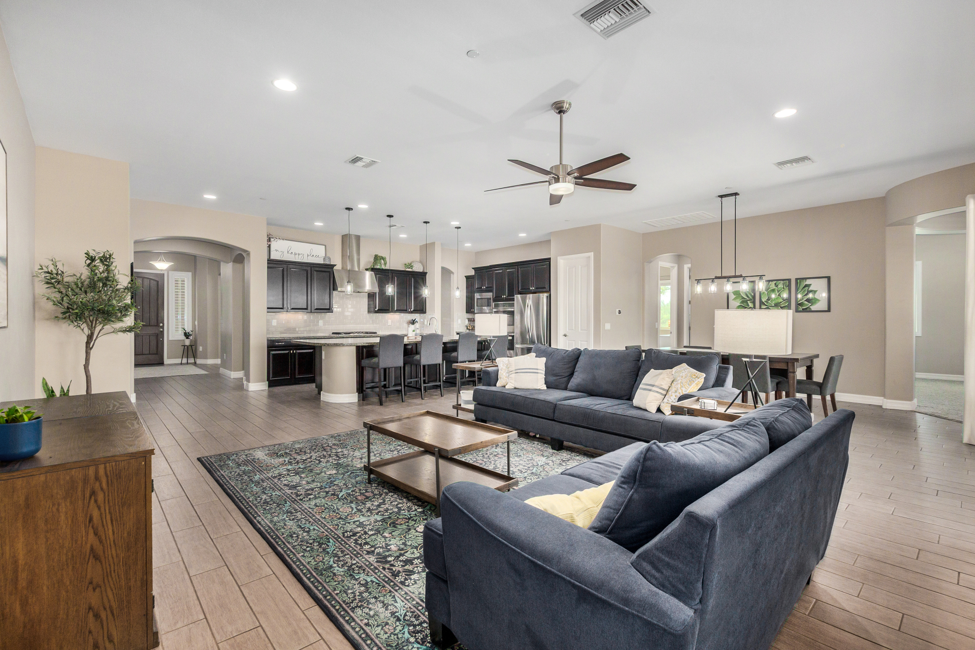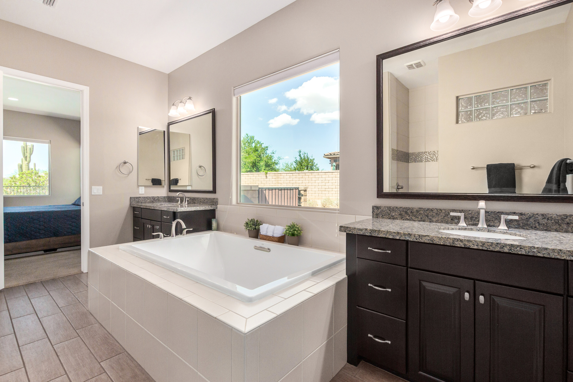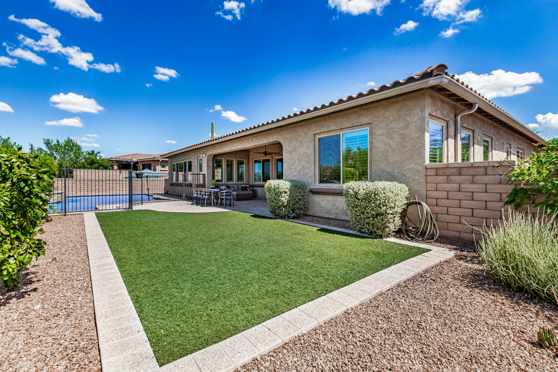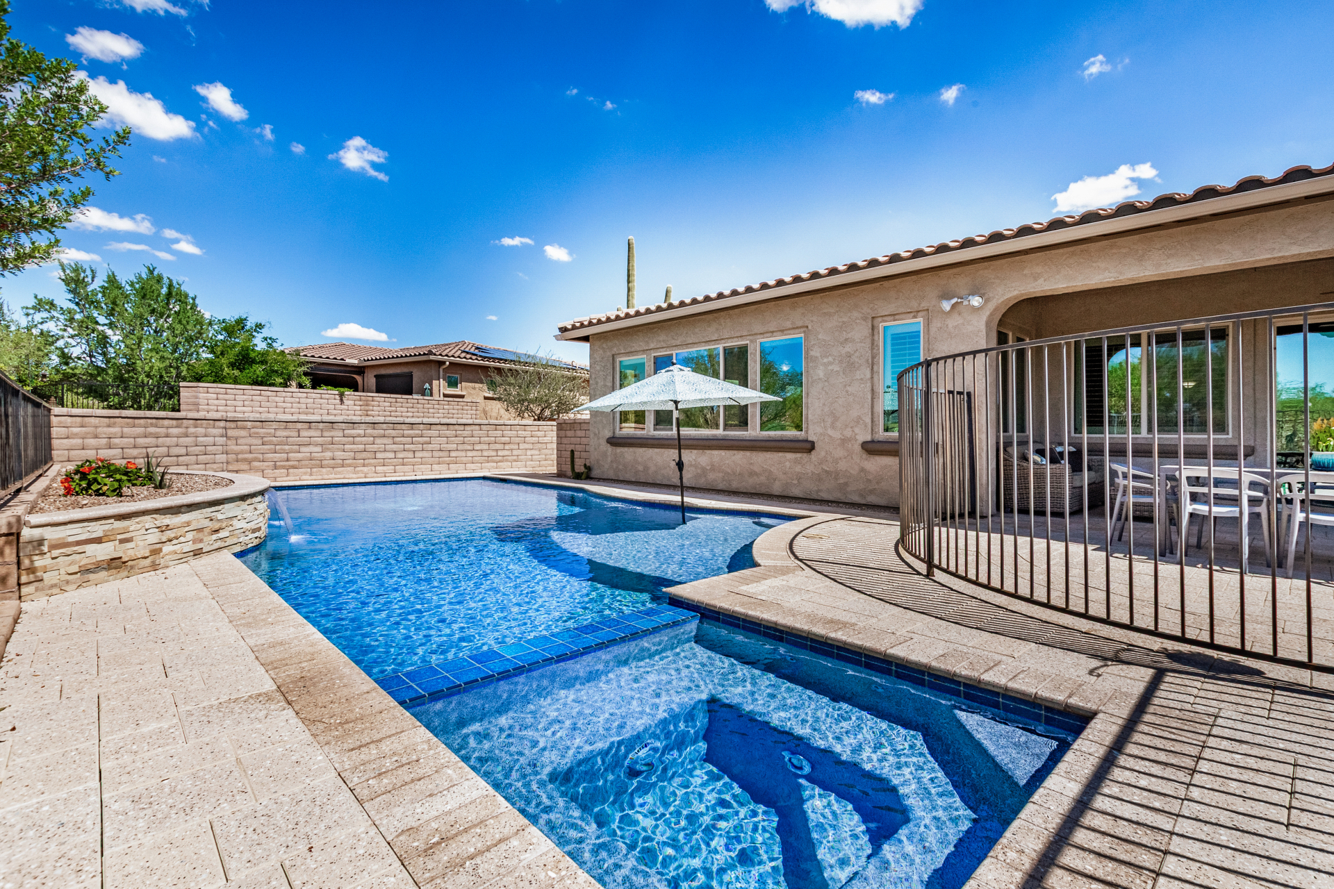 Beyond the gates of one of Oro Valley's most coveted neighborhoods lies a residence that redefines luxury living. Set on nearly half an acre (.45-acre) with a 4-CAR garage, this estate offers the kind of privacy, scale, and spaciousness that are rarely available in this market. This home invites you into the elegant foyer, which sets the stage for what lies beyond. Enjoy the formal living room or continue to the heart of the home and notice the rich dark wood cabinetry, impressive island, designer finishes, large pantry, and 12' sliding glass door. In addition to the great room adjoining the kitchen, the versatile bonus room provides space to curate your own retreat. Five bedrooms and three full baths ensure comfort for family and guests alike, but the primary suite is the crown jewel Expansive and serene, it's a sanctuary of its own with the proportions and appointments you'd expect in a true luxury home. The walk-in shower and soaking tub were crafted with wellness and rejuvenation in mind.