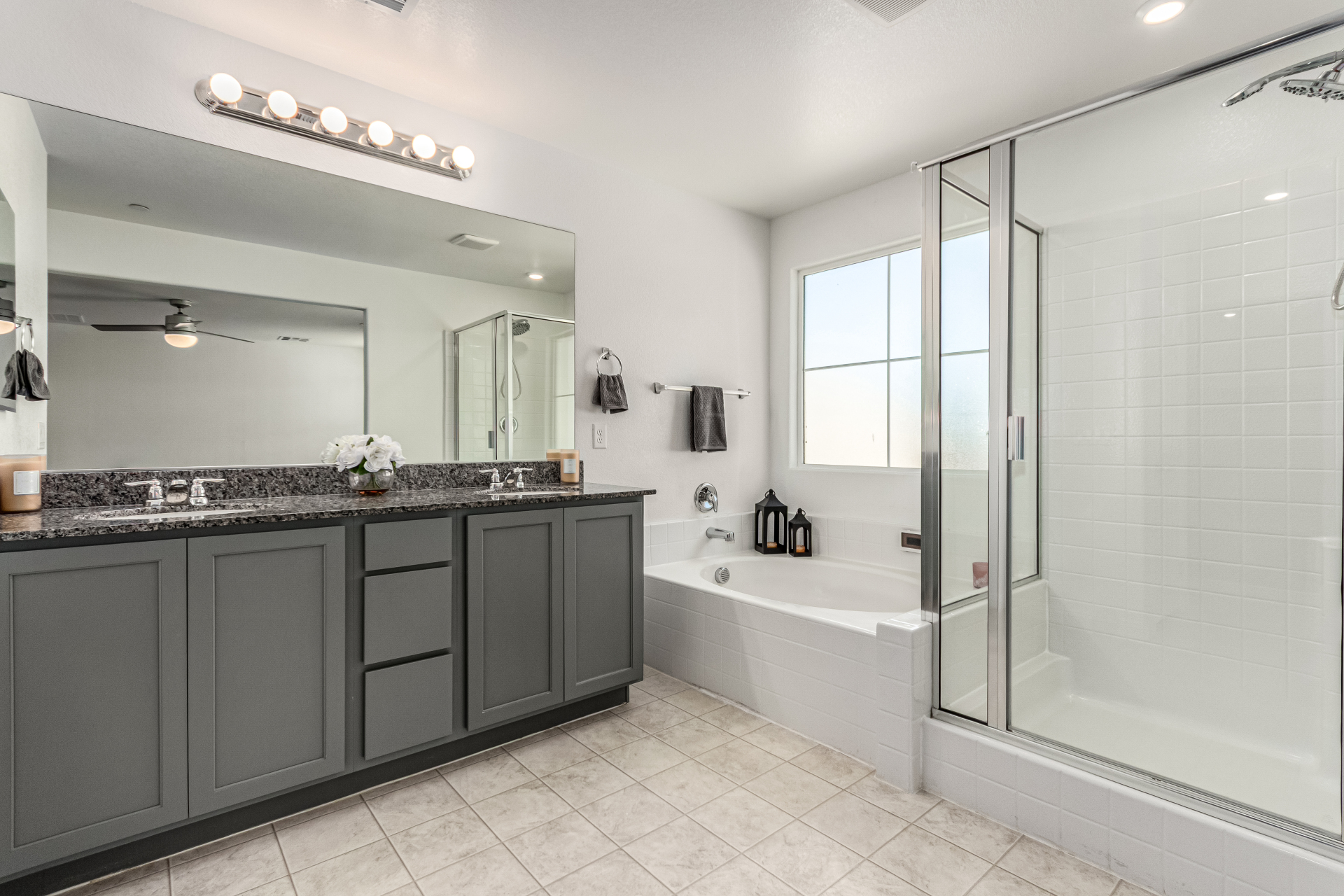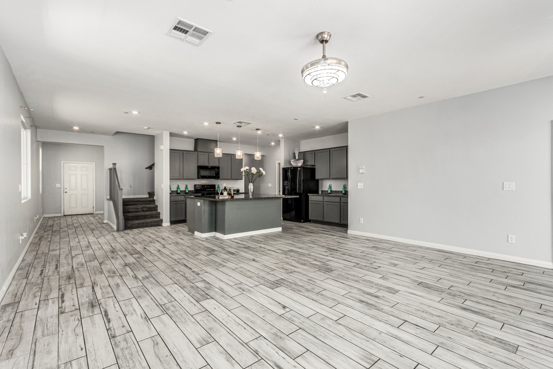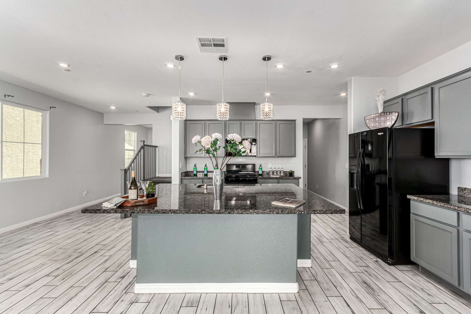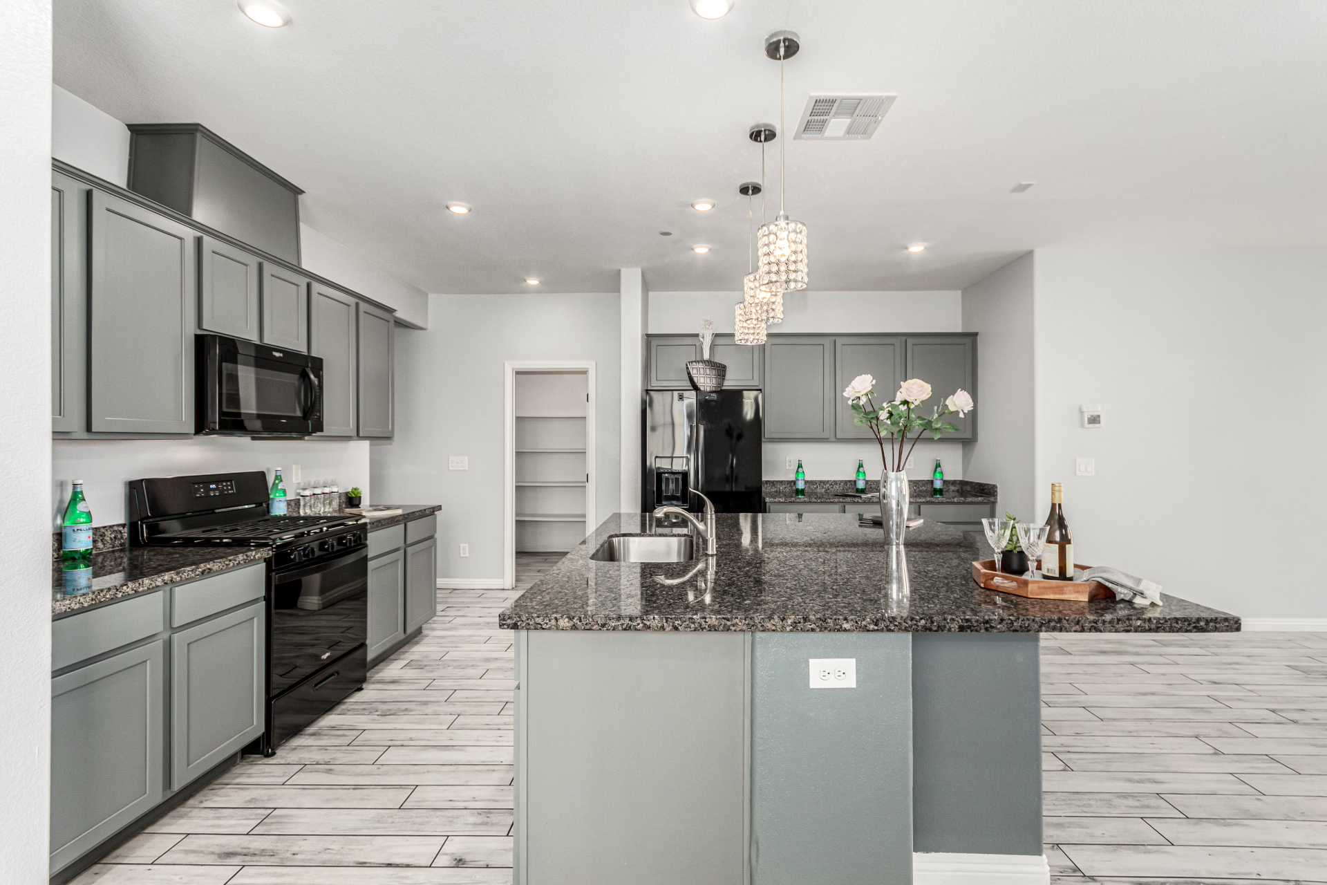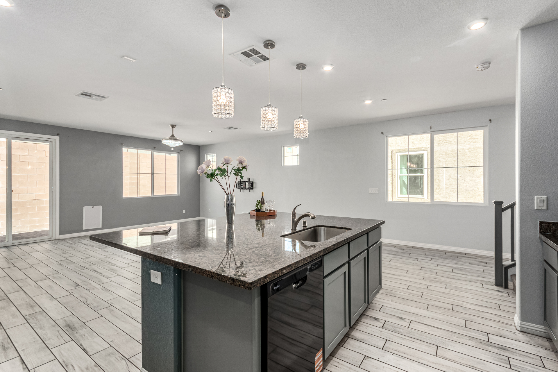 Welcome to the gated Rancho Crossing, where this remarkable two-story home awaits you! Providing 5 beds, 3.5 baths, low-care landscape, and a 2-car garage w/paver driveway. The interior exudes refined style with tons of natural light, a neutral palette, tall ceilings, and tasteful flooring - soft carpet & wood-look tile. You'll love the seamlessly flowing open layout! The impressive kitchen boasts black matching appliances, granite counters, a walk-in pantry, ample gray cabinetry, recessed & pendant lights, and a prep island w/breakfast bar. Perfect for your guests, there is one bedroom with its own bathroom downstairs. Storage room under the stairs! The cozy loft can be an office or TV area. The large main bedroom has an ensuite with dual granite sinks, separate tub/shower, & a walk-in closet. Laundry room w/xwasher & dryer included, as well as an attached walk-in storage. Check out the private backyard with well-laid pavers, making it ideal to relax while enjoying BBQ! Make it yours!