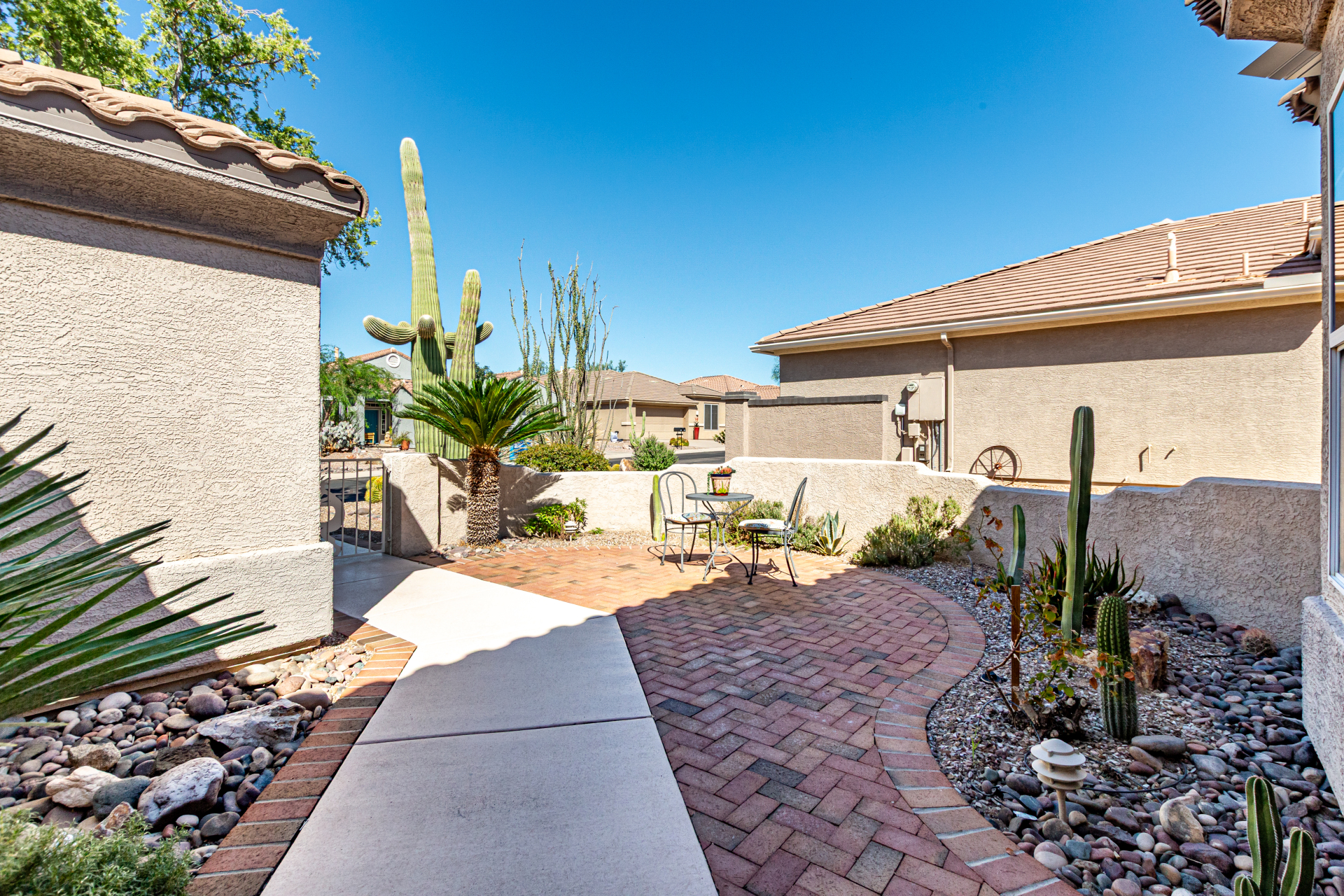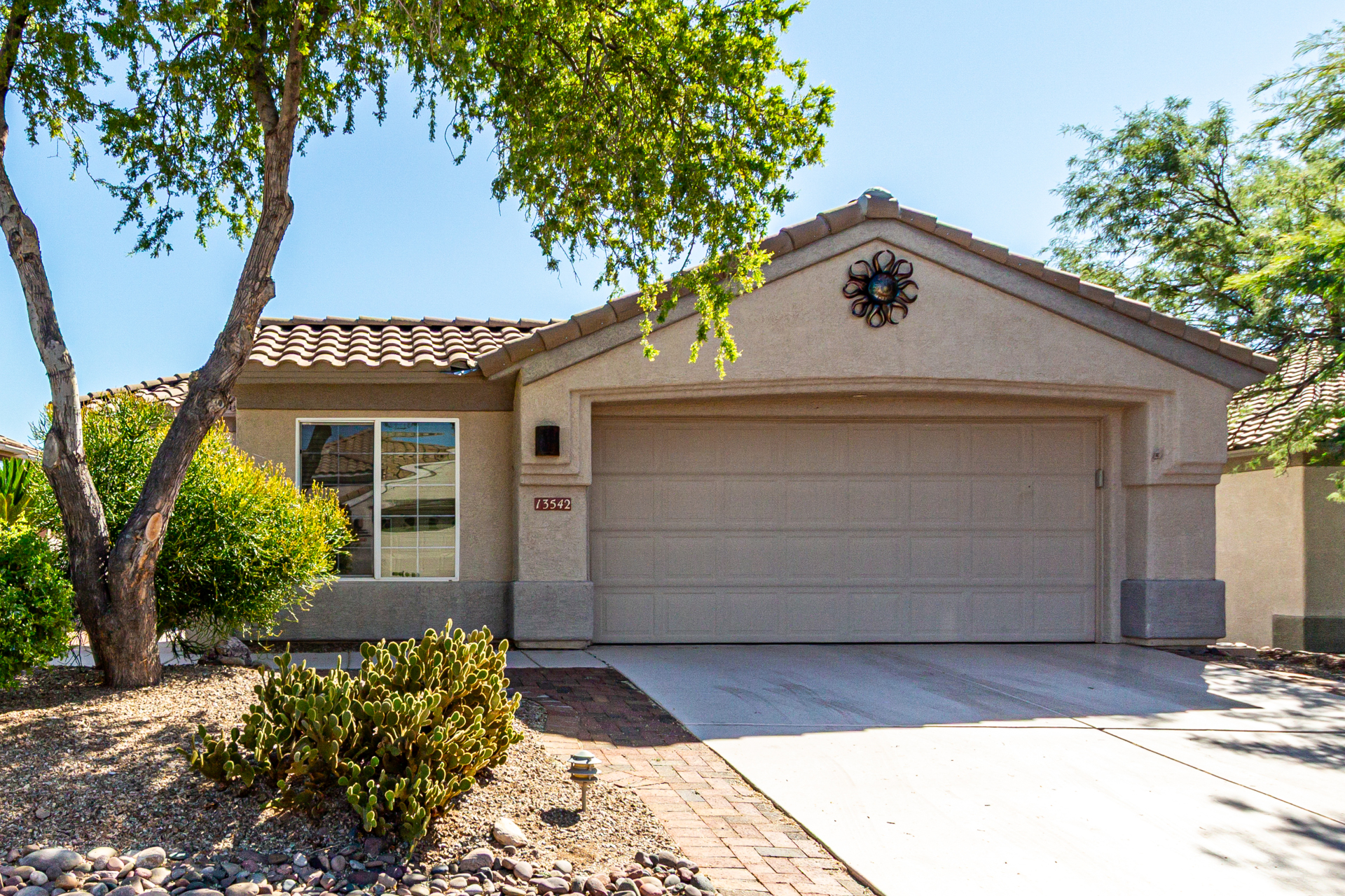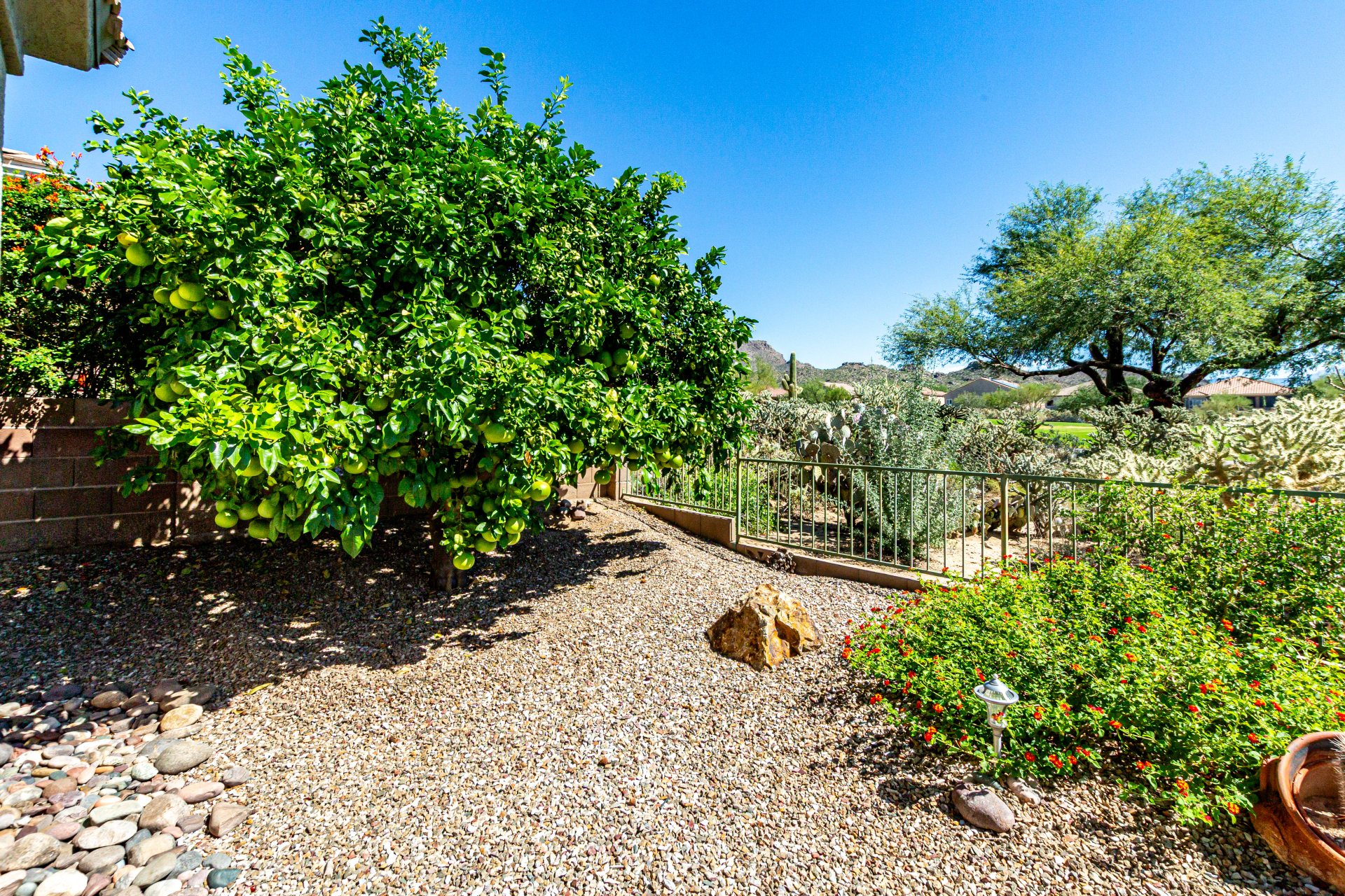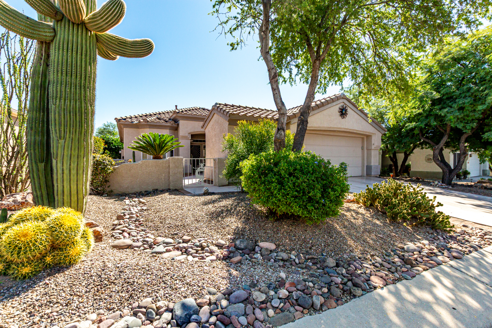 Located on the 3rd fairway with an East facing backyard, this updated home in The Highlands at Dove Mountain features a newer roof, HVAC, water heater and garage door. The fully fenced backyard offers sweeping mountain, golf course, and city light views, while the front courtyard captures magnificent sunsets. Outdoor living is enhanced with grapefruit and pomegranate trees and a built-in gas BBQ. Two bedrooms plus a den, a great room with a gas fireplace, and an updated kitchen with granite countertops, tile backsplash, pull-out cabinets, pantry drawers, and bay window. The oversized utility room includes washer and dryer, sink, storage, and desk space. An extra-large garage provides abundant storage and a golf cart space. Enjoy resort-style amenities- 24 hour security, golf, pickleball, tennis, pool/hot tub, fitness center, restaurant/bar, billiards, clubs, social activities and so much more! Hiking and biking trails a stones throw away from this sought-after active adult community!