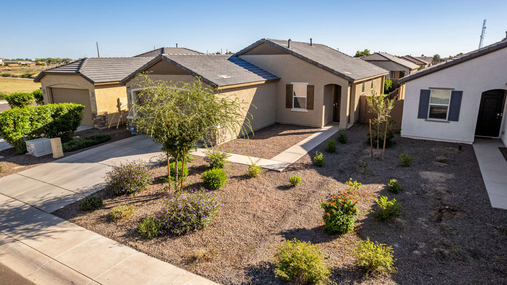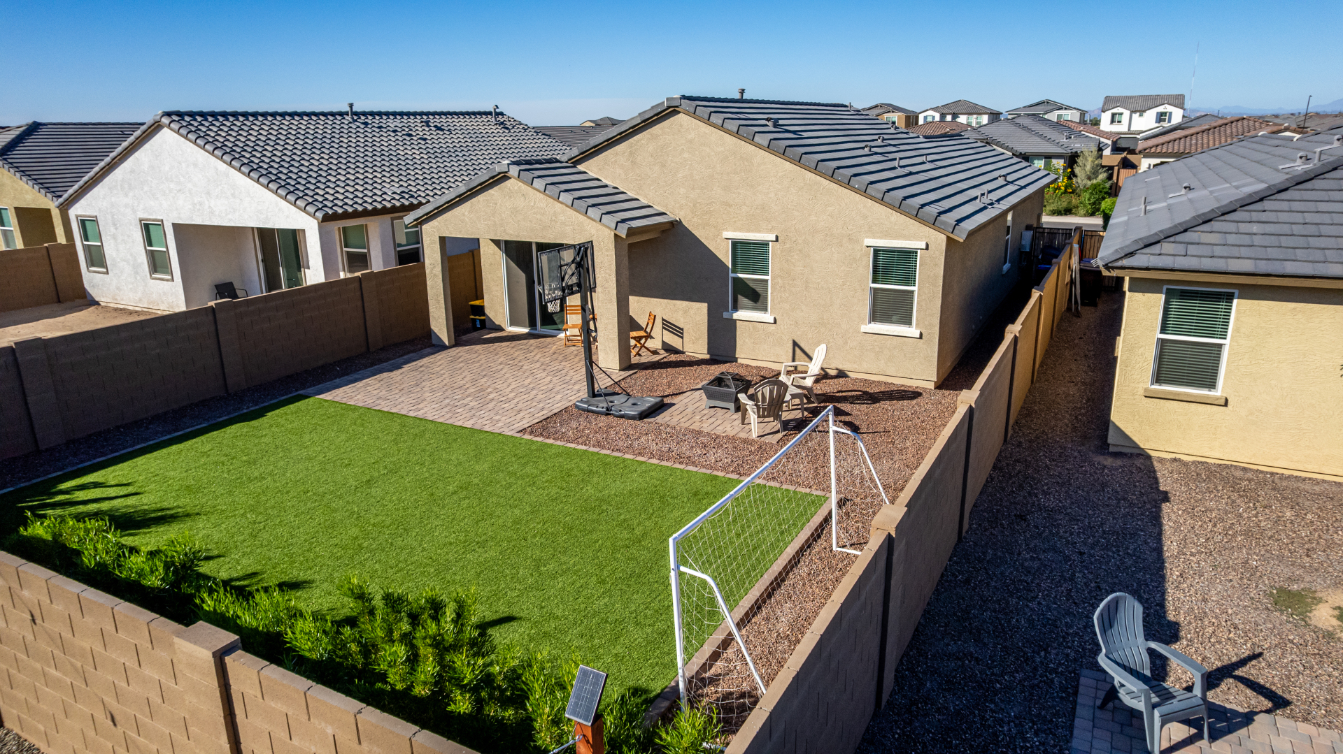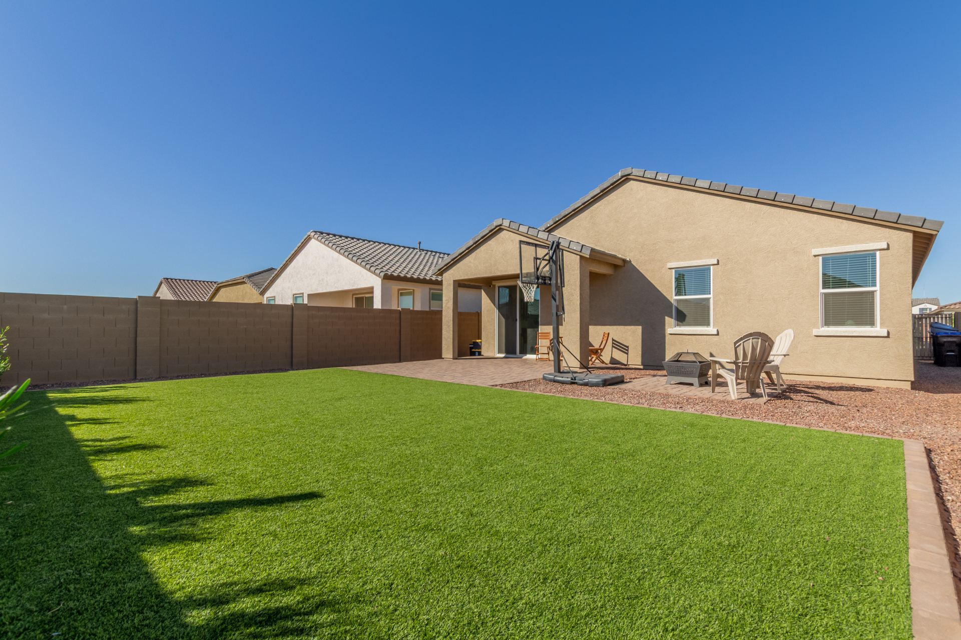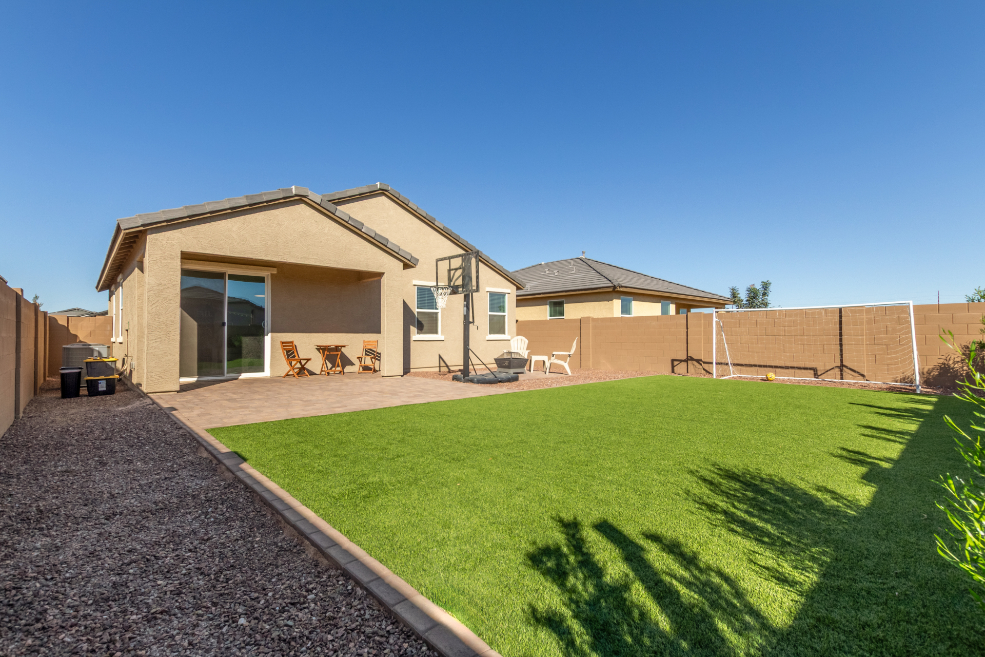 Better than new—without the wait! Enjoy a beautifully finished $11K backyard featuring low-maintenance synthetic turf, extensive pavers, and an automated watering system for the flowering shrubs creating your outdoor retreat. Inside, the open-concept layout seamlessly connects the great room, kitchen, and dining area for a bright, welcoming atmosphere. The primary suite offers a spacious walk-in closet and an ensuite bath with dual vanities. Additional upgrades include a whole-home water softener and a reverse osmosis drinking water system—adding comfort and quality to everyday living. Move in and make this your new Home Sweet Home today!