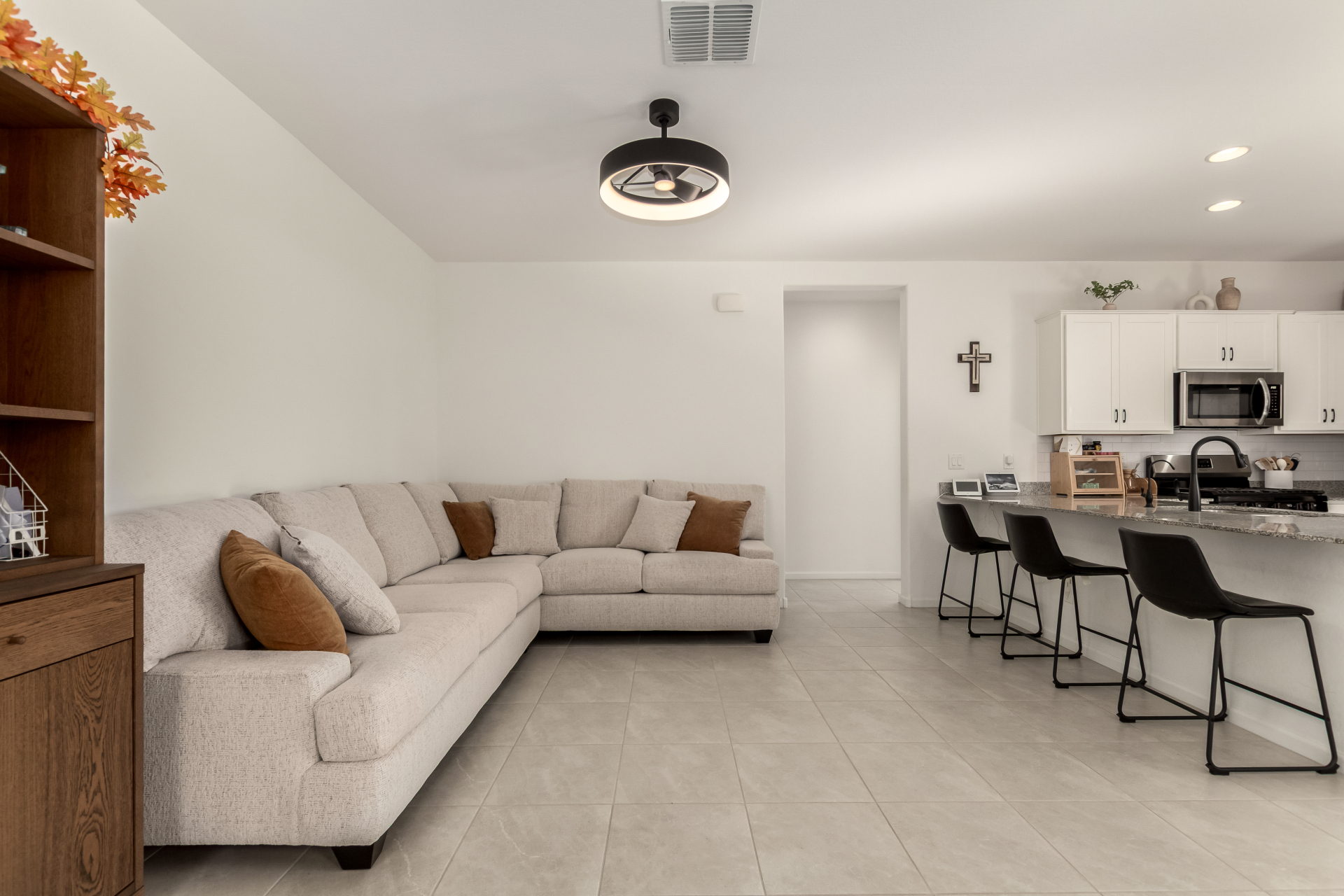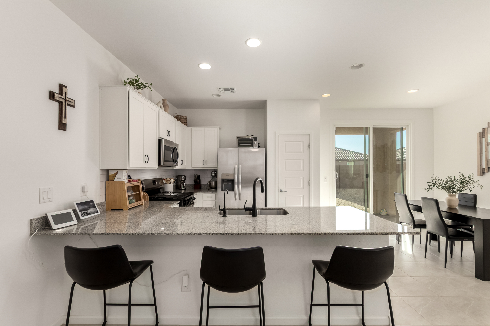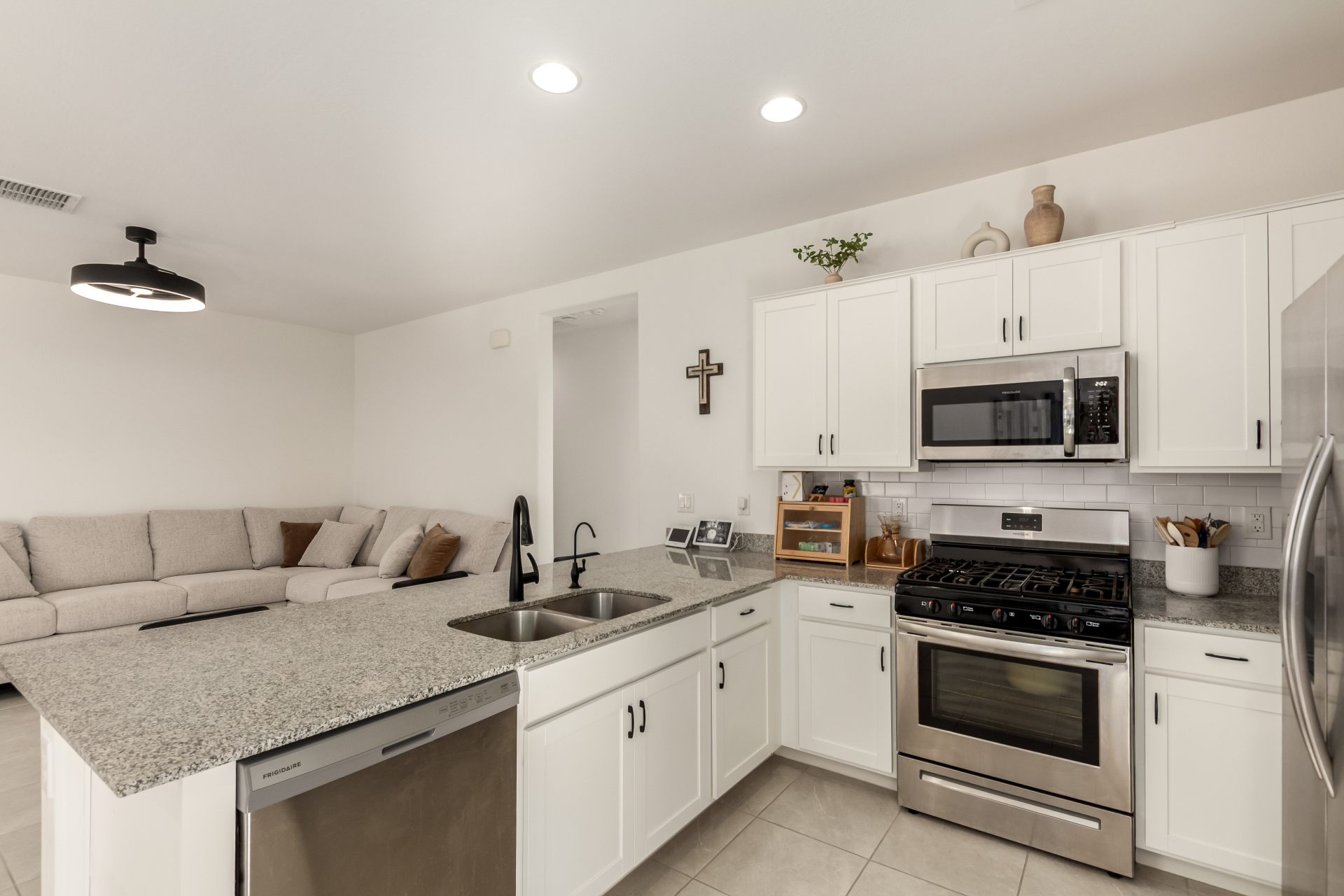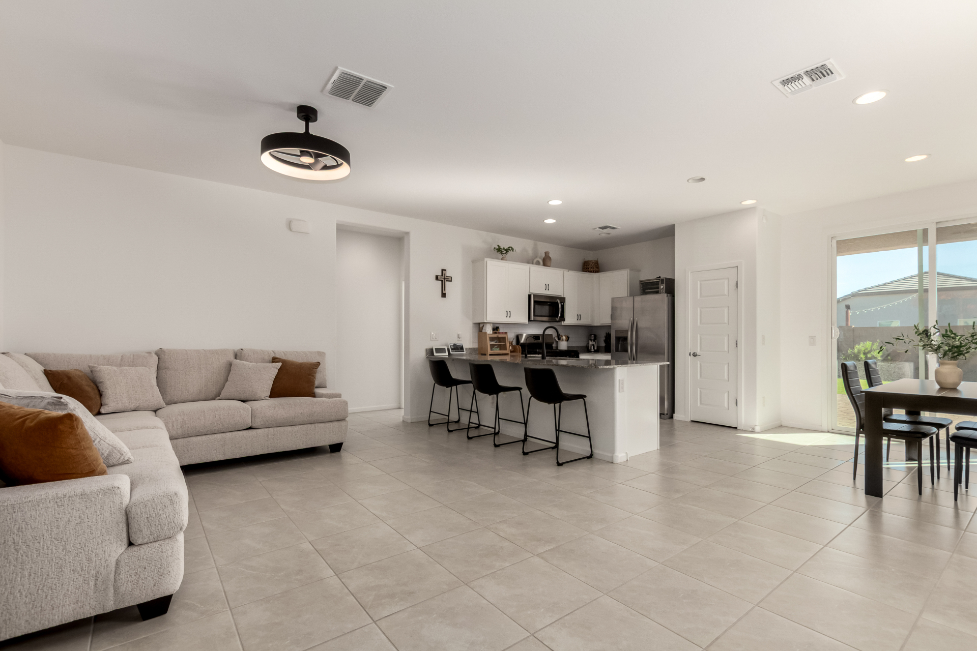 Better than new—without the wait! Enjoy a beautifully finished $11K backyard featuring low-maintenance synthetic turf, extensive pavers, and an automated watering system for the flowering shrubs creating your outdoor retreat. Inside, the open-concept layout seamlessly connects the great room, kitchen, and dining area for a bright, welcoming atmosphere. The primary suite offers a spacious walk-in closet and an ensuite bath with dual vanities. Additional upgrades include a whole-home water softener and a reverse osmosis drinking water system—adding comfort and quality to everyday living. Move in and make this your new Home Sweet Home today!