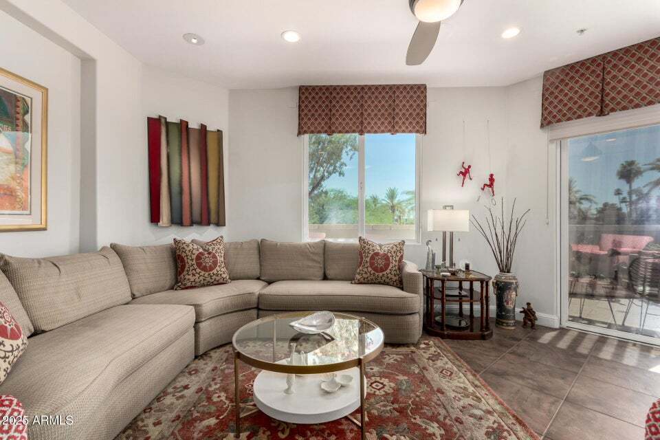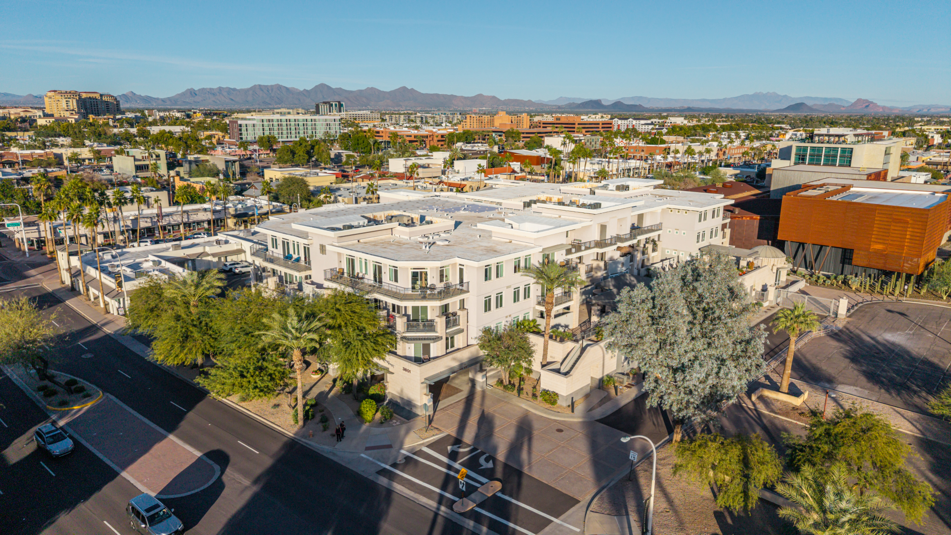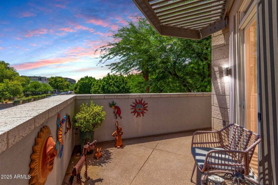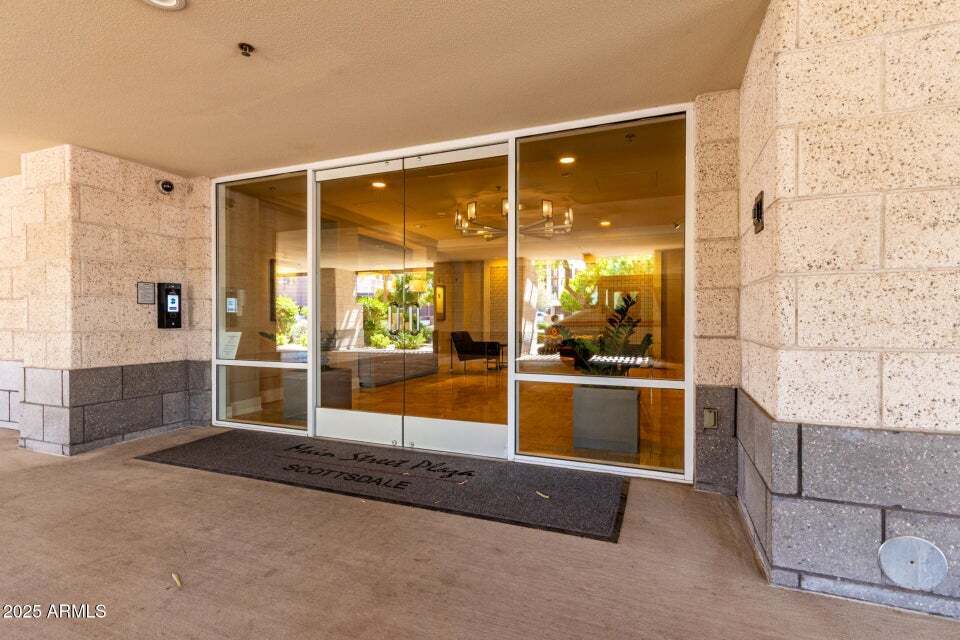 Discover elegant urban living at its finest in this exquisite condo in the heart of Downtown Scottsdales Arts District. Built in 2007, this southwest-facing end unit offers endless views of the Arizona sunsets. Address also known as: 7035 E MAIN ST G-201 SCOTTSDALE, AZ 85251 Step inside to an open-concept great room with soaring ceilings, a beautiful fireplace, and an inviting dining area, all bathed in natural light. The chef's gourmet kitchen is a dream, featuring top-of-the-line appliances, quartz countertops, a breakfast bar, gas cooktop, and a large walk-in pantry. Custom plantation shutters and a neutral palette enhance the inviting living space. Steps away from your front door enjoy a wealth of amenities, including a heated community pool and spa, covered ramadas, outdoor fireplaces, a fitness center, and a reservable community room with a full-service kitchen.