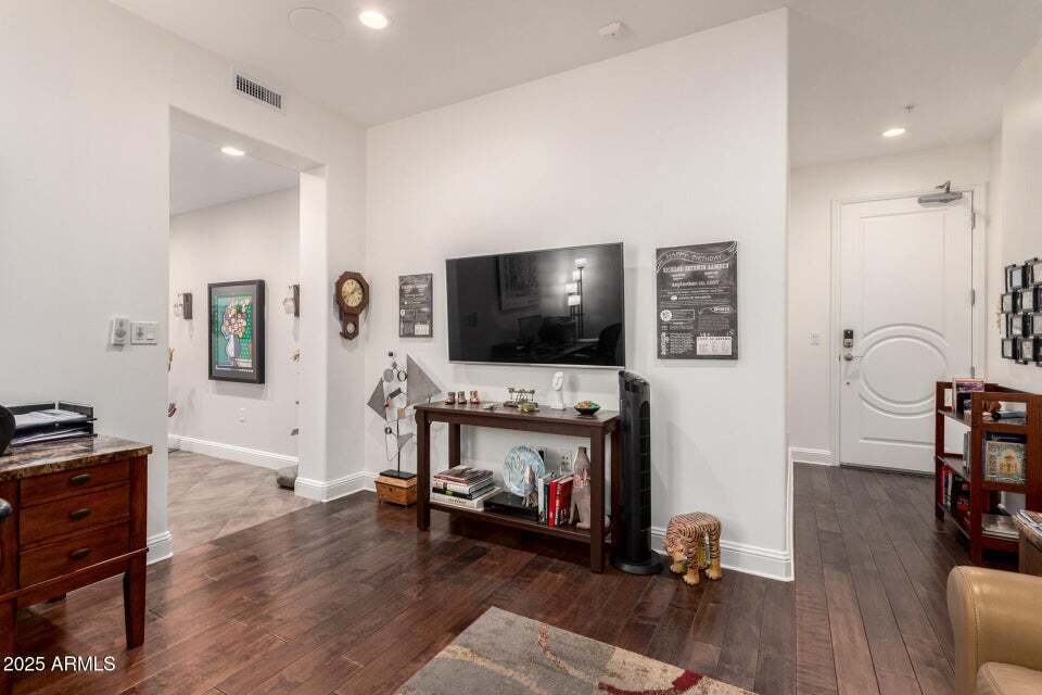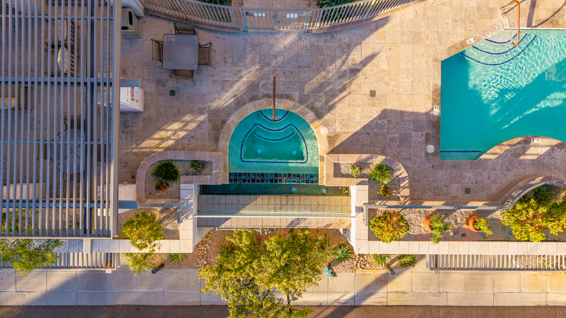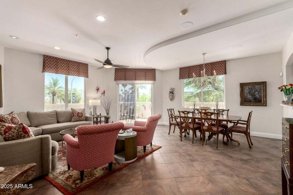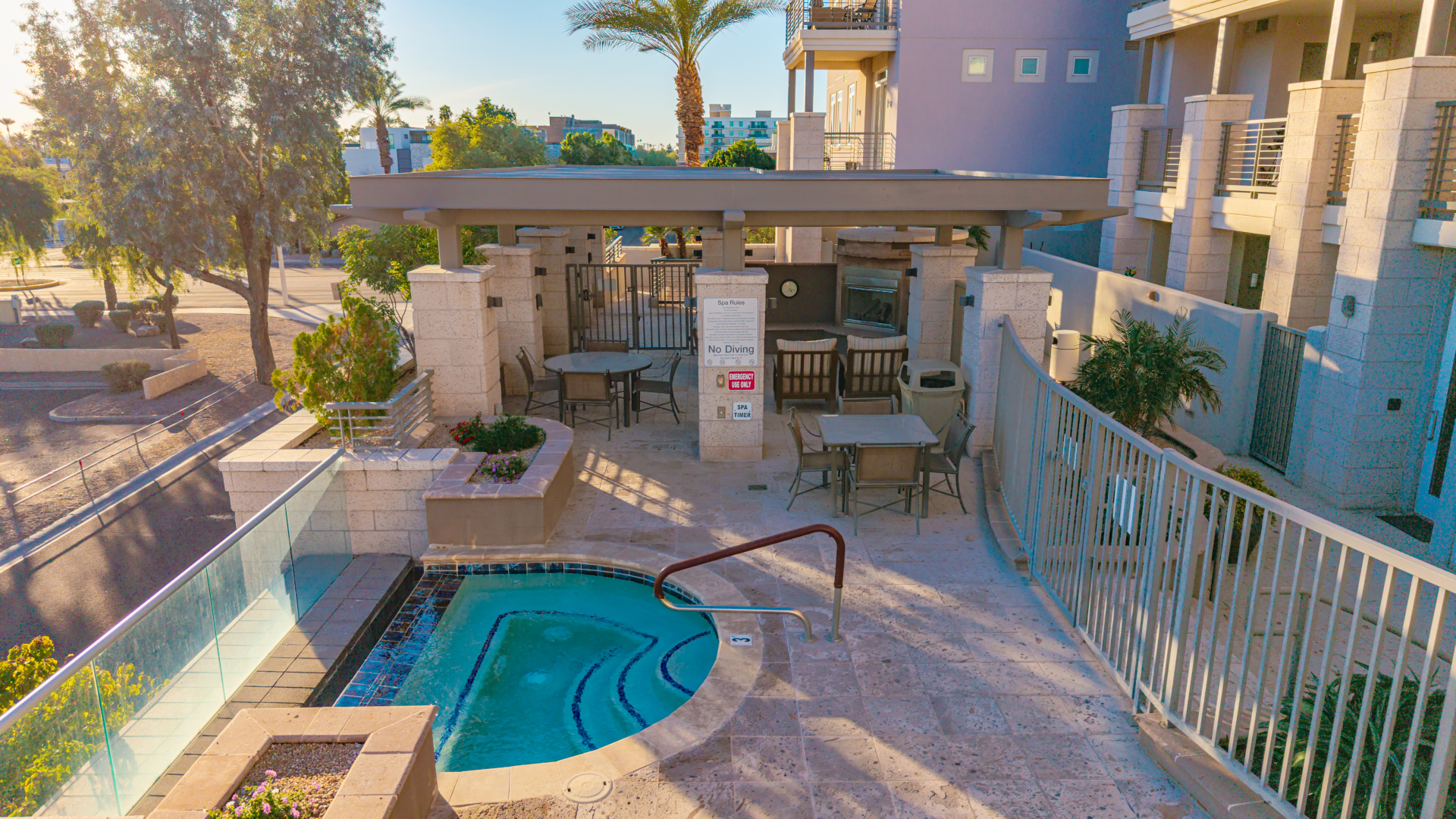 Discover elegant urban living at its finest in this exquisite condo in the heart of Downtown Scottsdales Arts District. Built in 2007, this southwest-facing end unit offers endless views of the Arizona sunsets. Address also known as: 7035 E MAIN ST G-201 SCOTTSDALE, AZ 85251 Step inside to an open-concept great room with soaring ceilings, a beautiful fireplace, and an inviting dining area, all bathed in natural light. The chef's gourmet kitchen is a dream, featuring top-of-the-line appliances, quartz countertops, a breakfast bar, gas cooktop, and a large walk-in pantry. Custom plantation shutters and a neutral palette enhance the inviting living space. Steps away from your front door enjoy a wealth of amenities, including a heated community pool and spa, covered ramadas, outdoor fireplaces, a fitness center, and a reservable community room with a full-service kitchen.