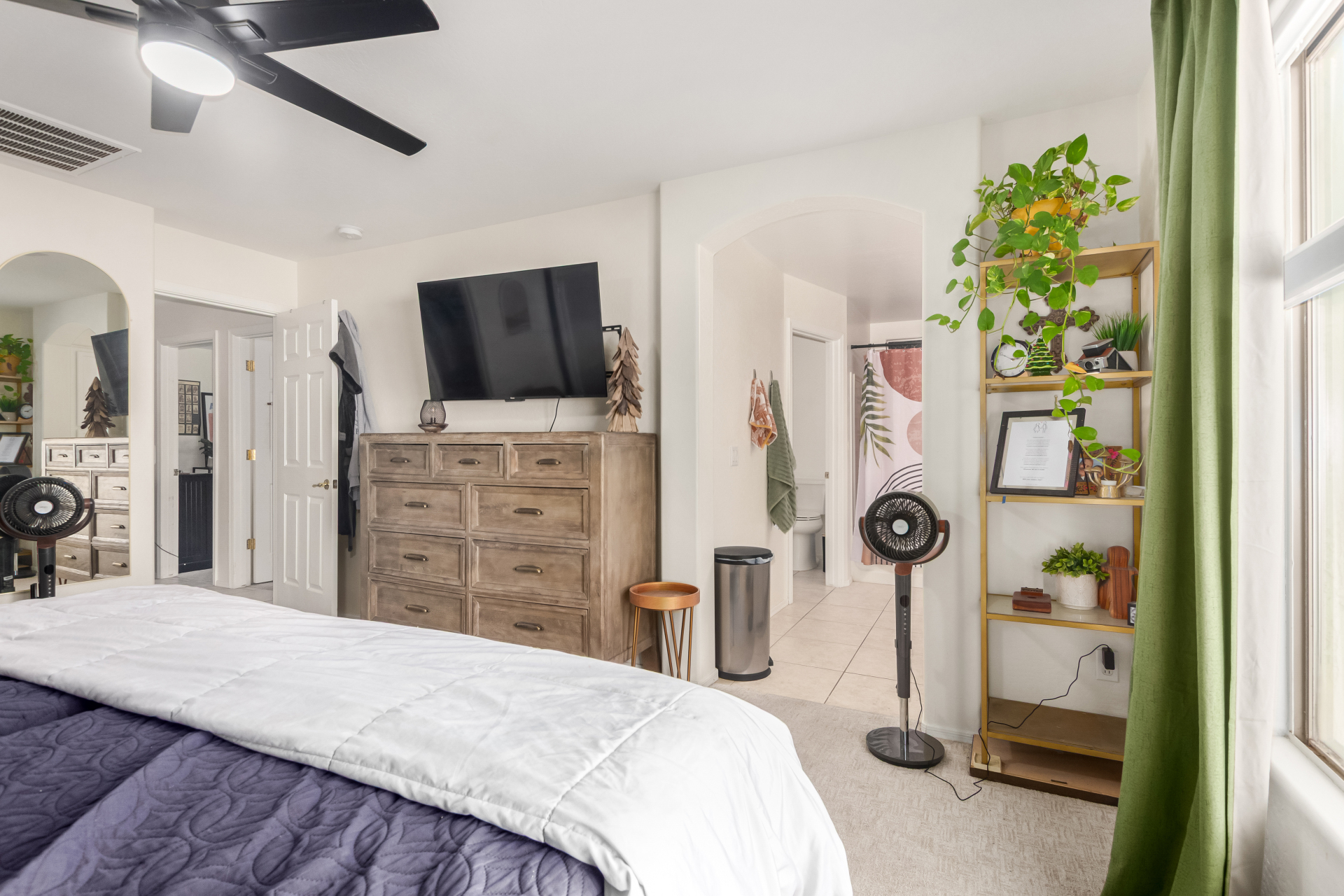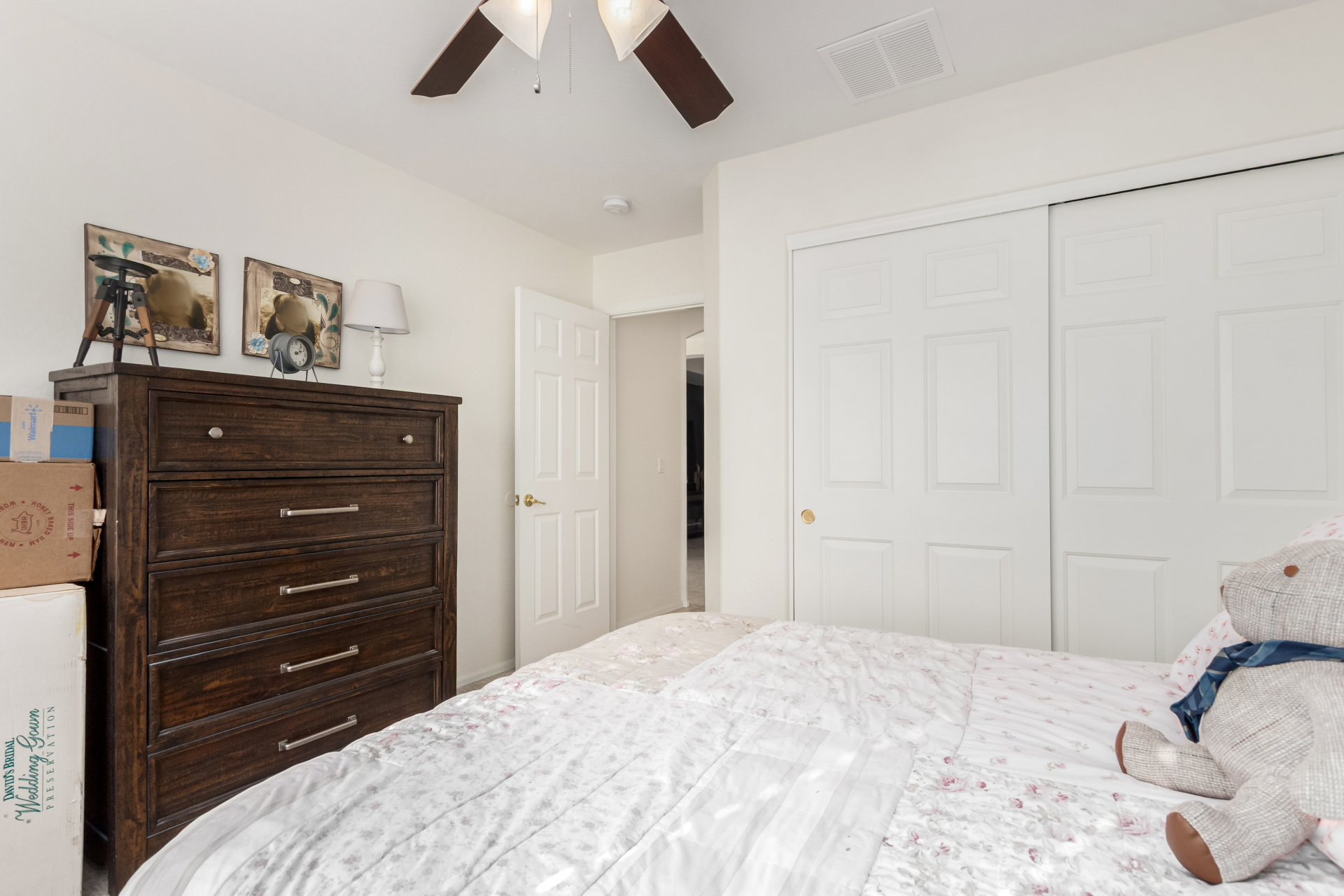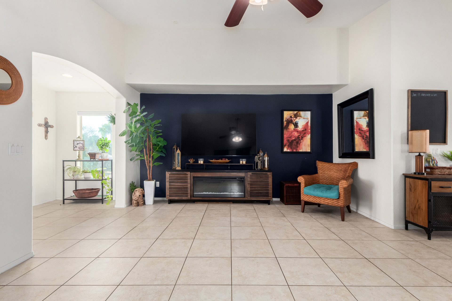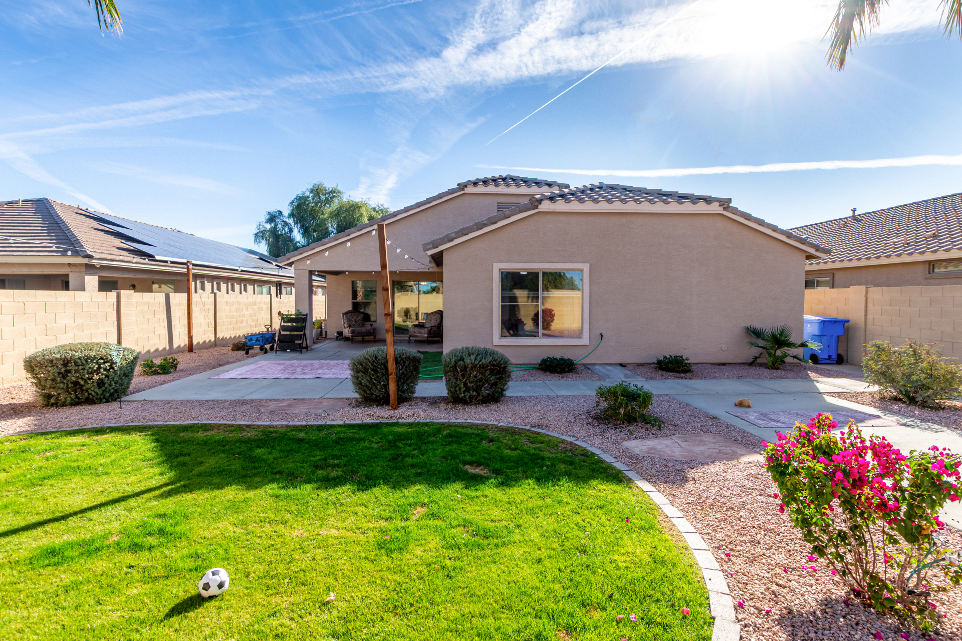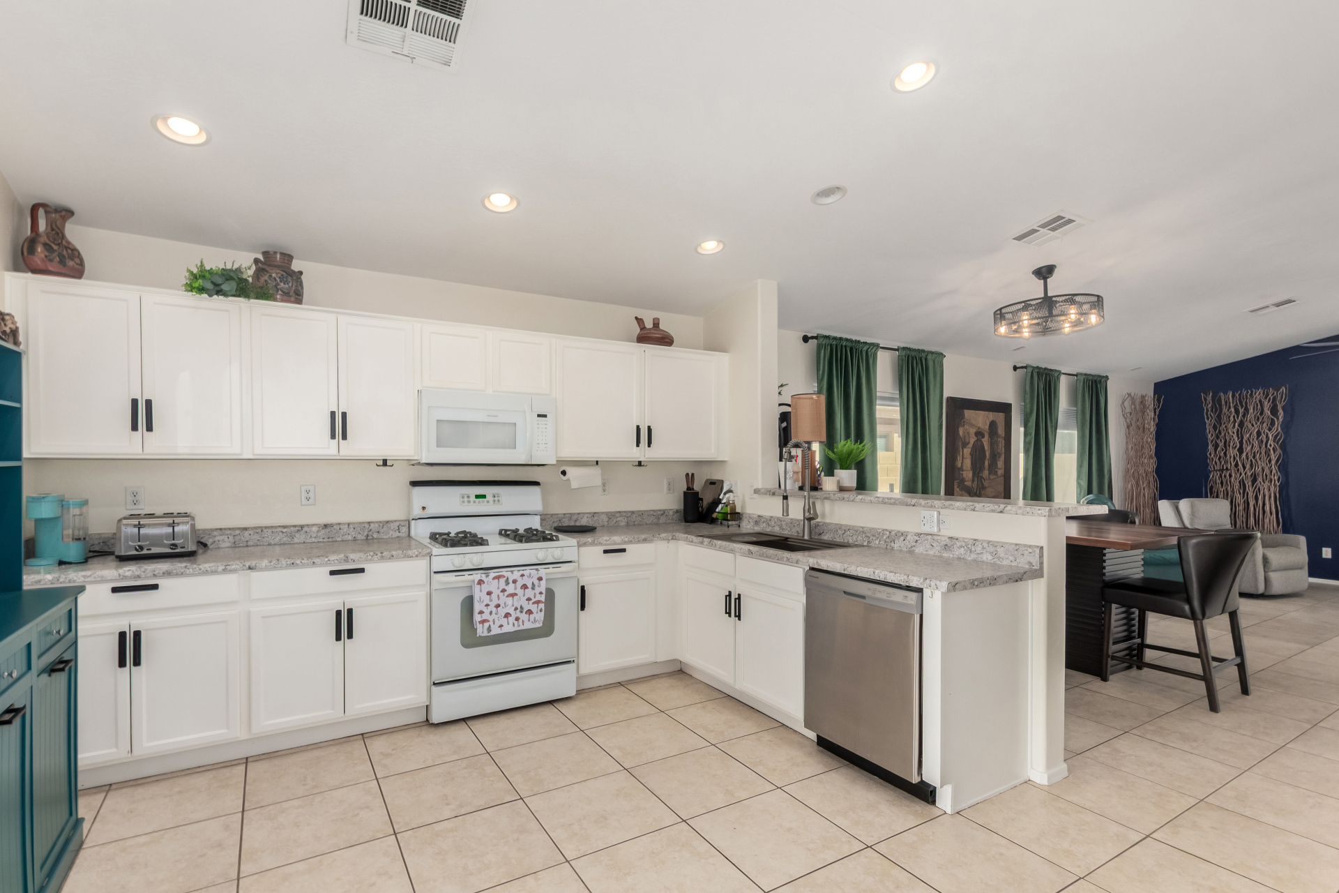 Welcome home to this beautifully maintained 4-bedroom gem featuring a 2-car garage and an inviting front porch! Discover a spacious open floor plan filled with natural light and enhanced by tile flooring, vaulted ceilings, neutral paint, and ceiling fans throughout, which add to its charm. Lovely kitchen is equipped with plenty of cabinetry, built-in appliances, a breakfast bar, and recessed lighting. Sliding glass doors seamlessly connect the kitchen to the back patio, ideal for indoor-outdoor living. Serene main bedroom provides a peaceful retreat with plush carpeting, direct outdoor access, a bathroom with shower/tub combo, and a walk-in closet. Outside, enjoy your large backyard complete with a covered patio, perfect for entertaining guests or savoring quiet mornings. Don't miss!