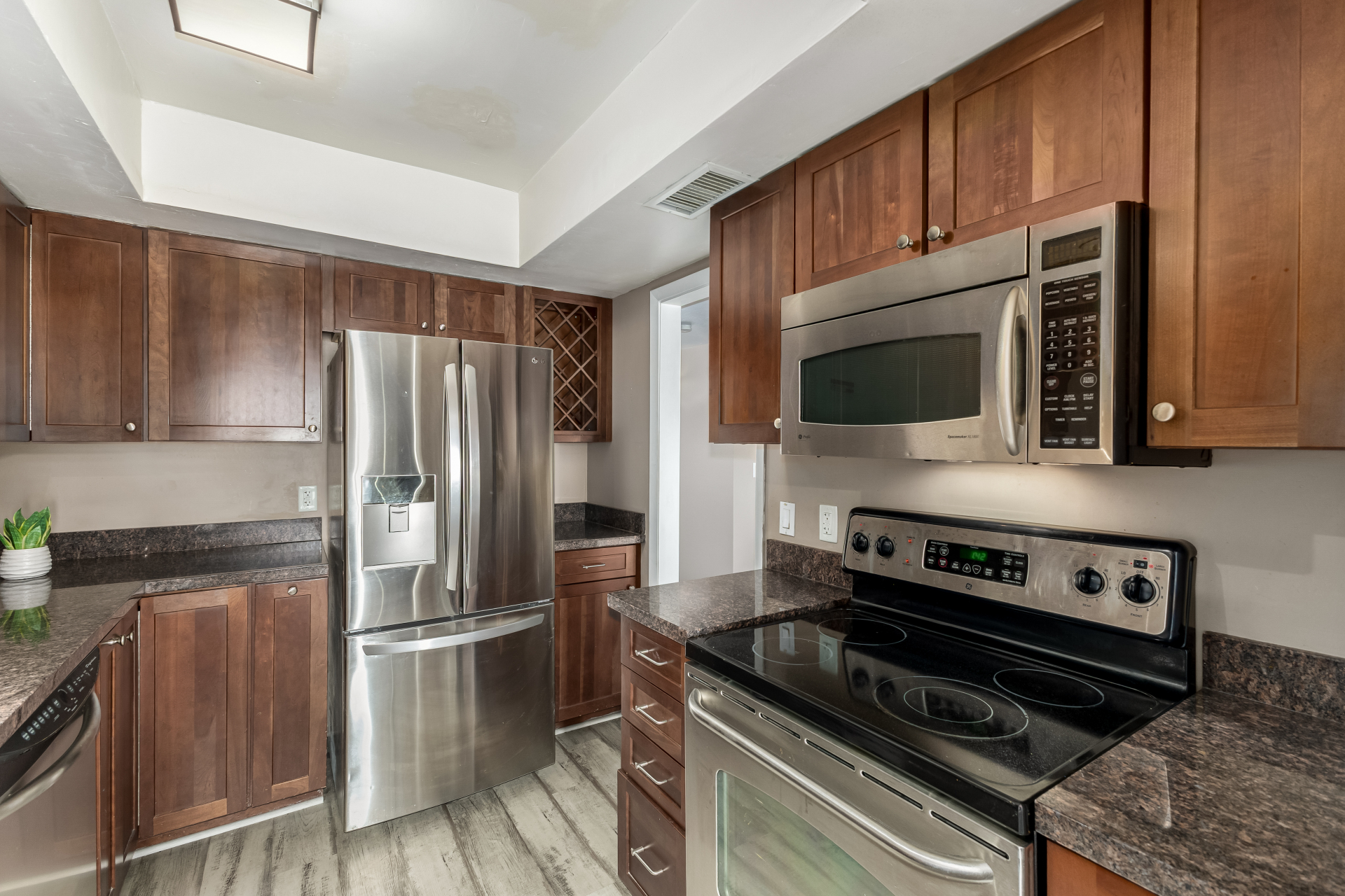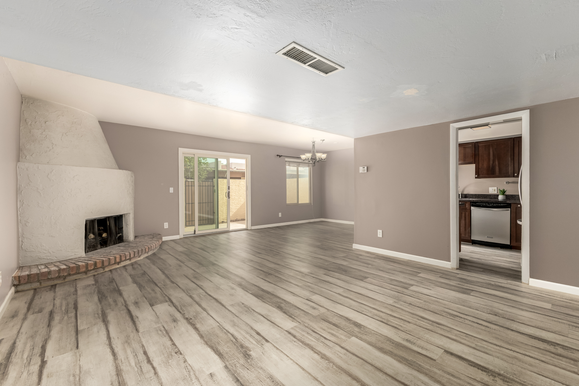 Seize the chance to own this charming 3-bedroom townhome in Avenida Siete! Discover a spacious living room with a soothing palette, attractive wood-look flooring, and an inviting fireplace for cozy evenings with loved ones. The well-appointed kitchen comes with granite counters, ample wood shaker cabinets, and stainless steel appliances for a delightful cooking experience. You'll also find a versatile den ideal for an office or lounge. Double doors lead to the main bedroom, boasting vaulted ceilings, a built-in closet with mirrored doors, and a private bathroom for added comfort. Unwind at the end of a long day in the backyard, offering an open patio, an attached storage shed, and a fragrant citrus tree. Don't miss out on this fantastic opportunity!