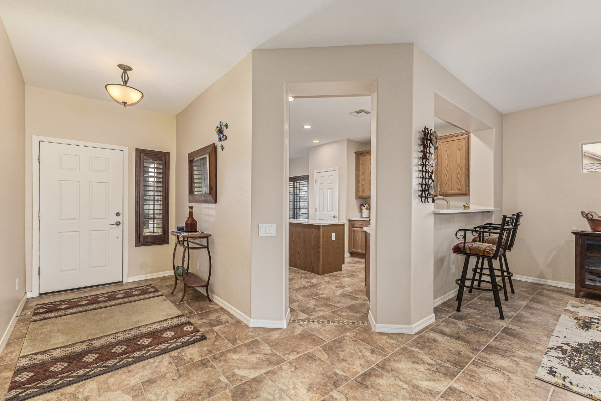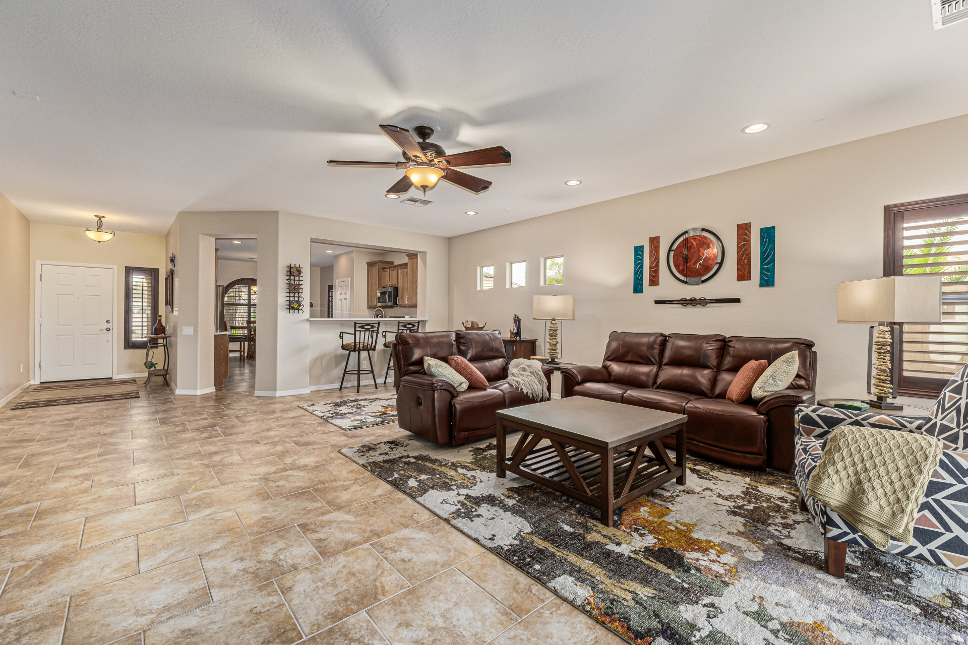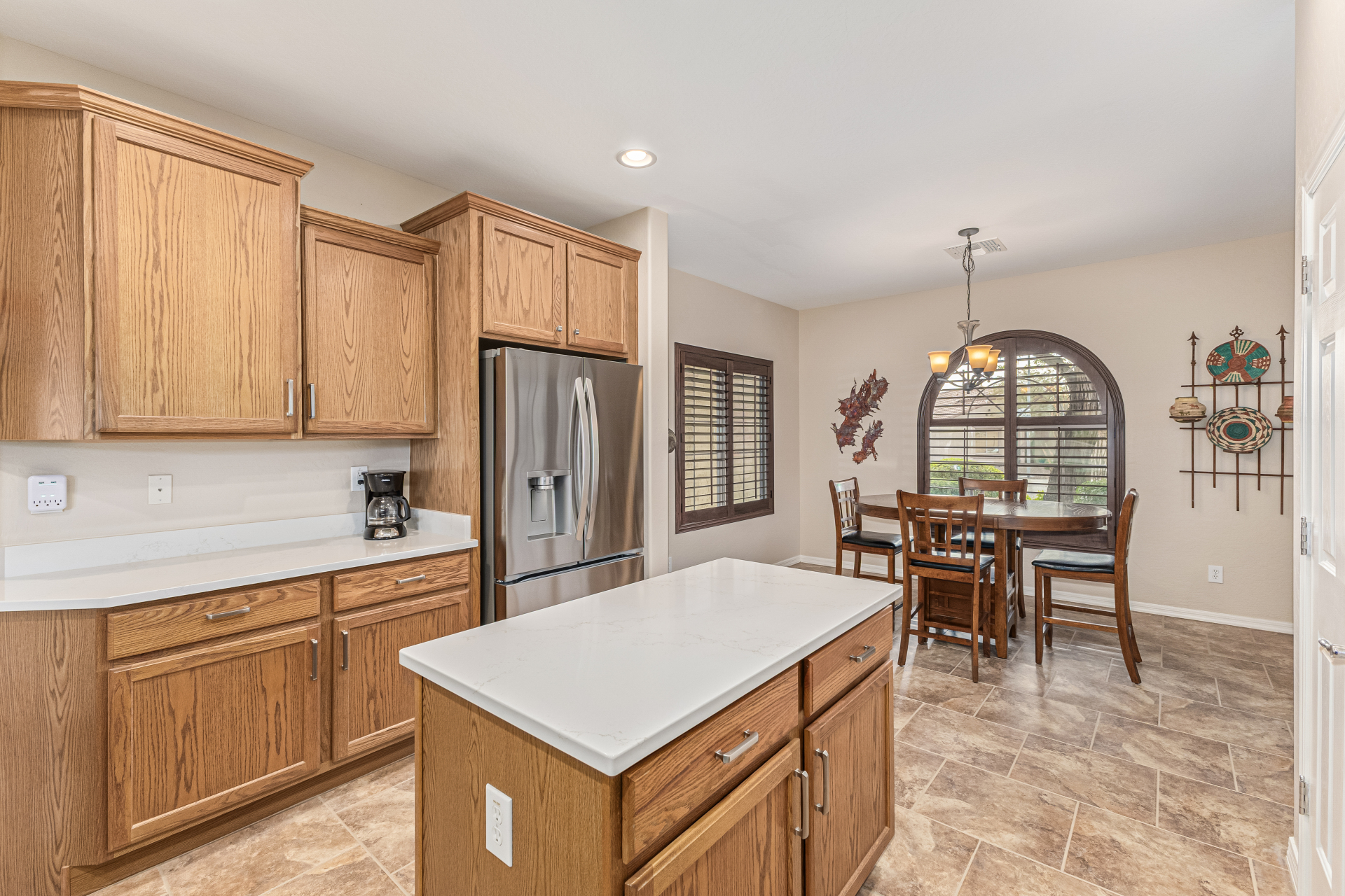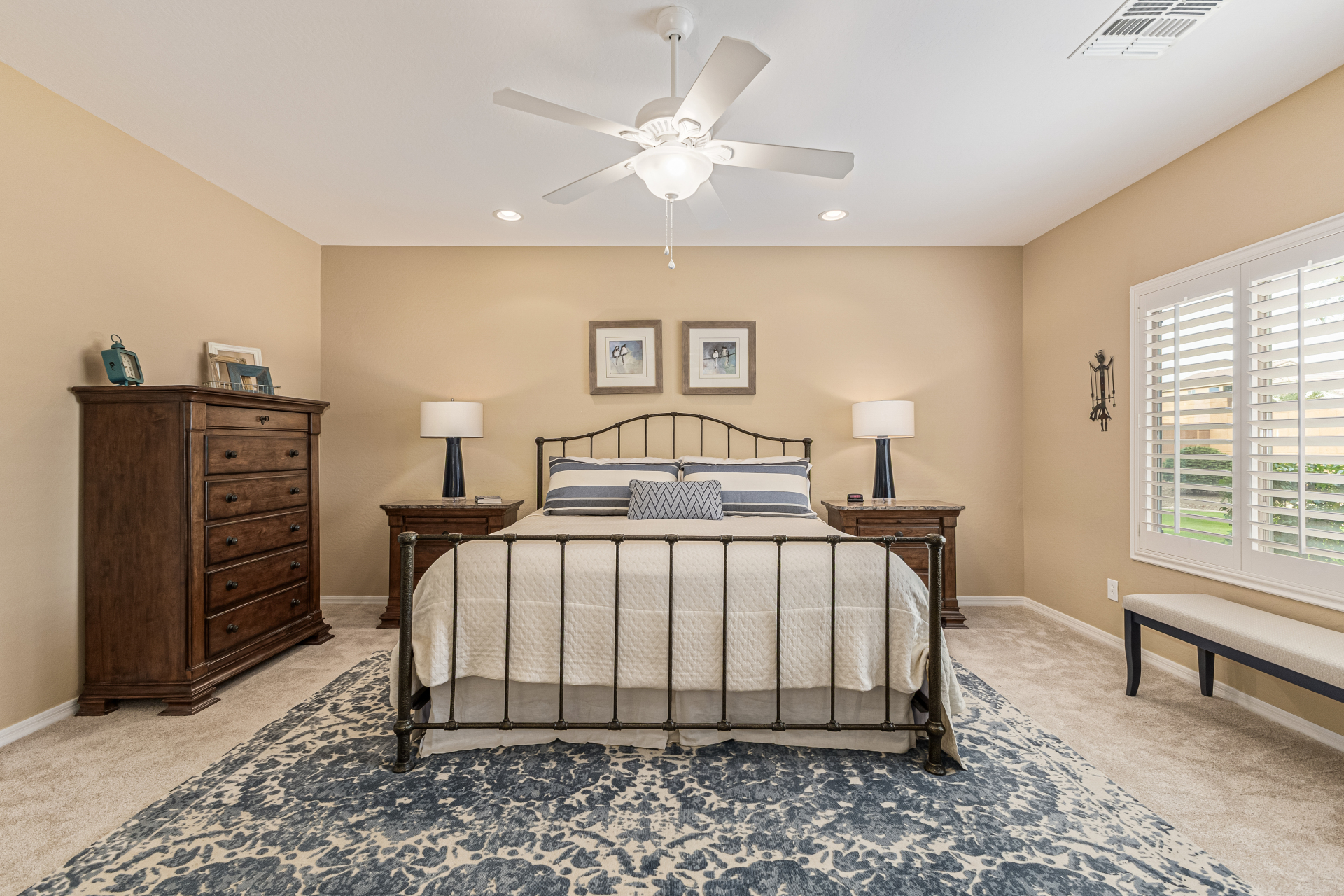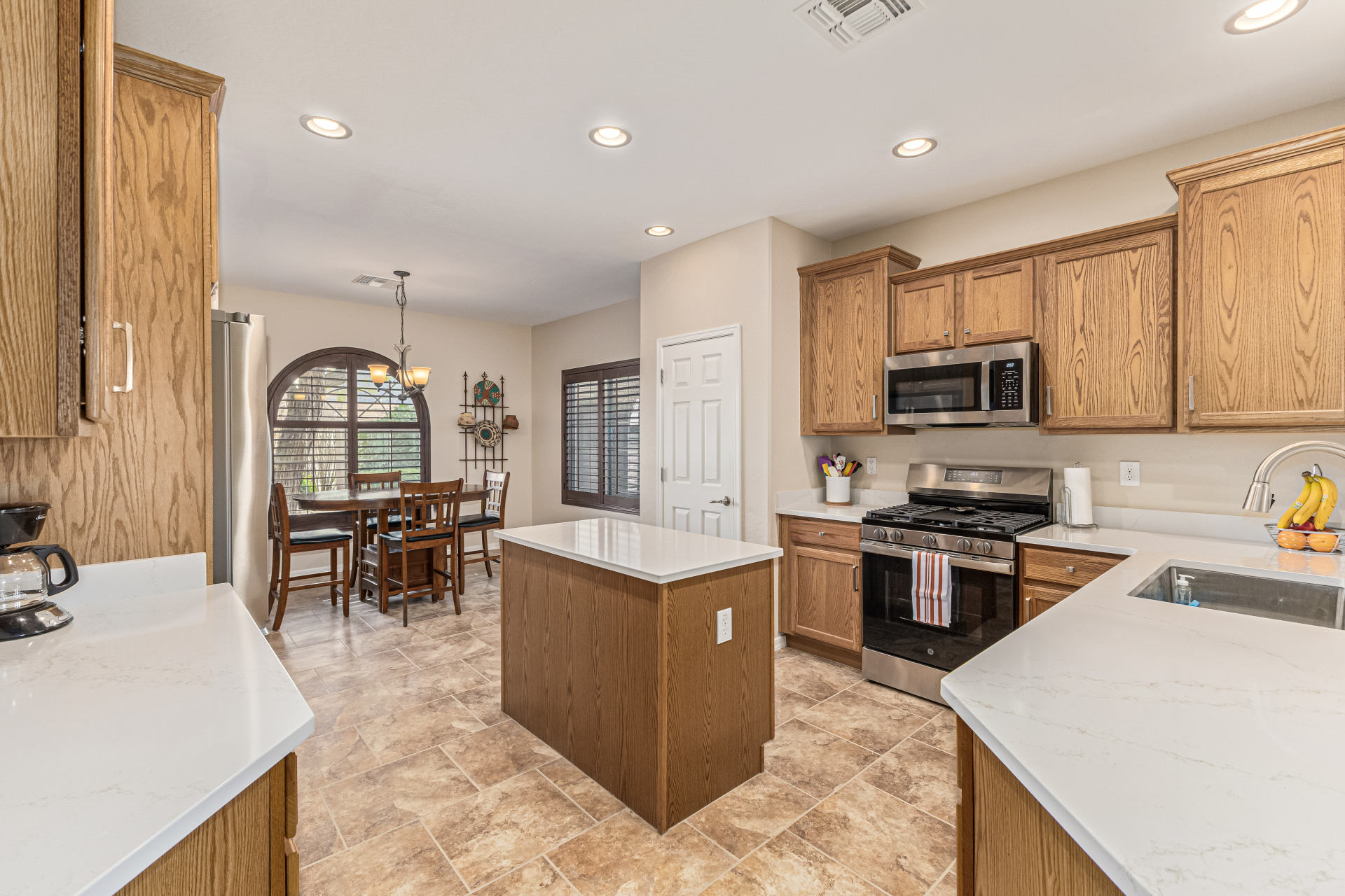 You'll love this beautiful home in Stetson Valley! Offering 3 beds, 2 baths, oversized 2-car garage, manicured mature landscape, and great curb appeal. The fabulous interior features tons of natural light, plantation shutters, neutral paint, and tile flooring w/carpet in bedrooms. The large living room is paired with sliding doors to the back! The eat-in kitchen boasts SS appliances, a pantry, quartz counters, recessed lighting, a center island, ample cabinetry w/crown molding, and a pass-through window w/breakfast bar. The double-door main bedroom has an ensuite with dual sinks, separate tub/shower, & a walk-in closet. Laundry room with cabinetry. Tranquility awaits in the spacious backyard! A covered patio, well-laid pavers, artificial turf, & shade trees complete the picture. Just WOW!
