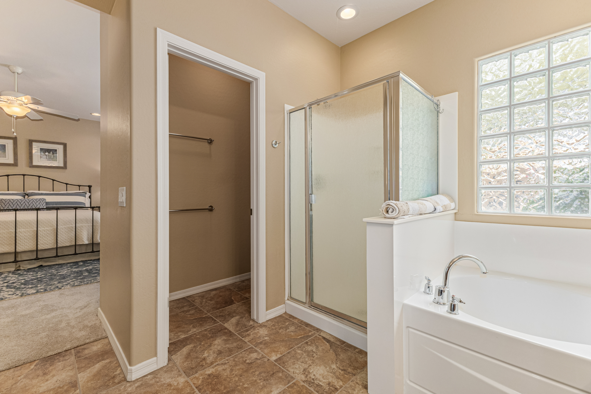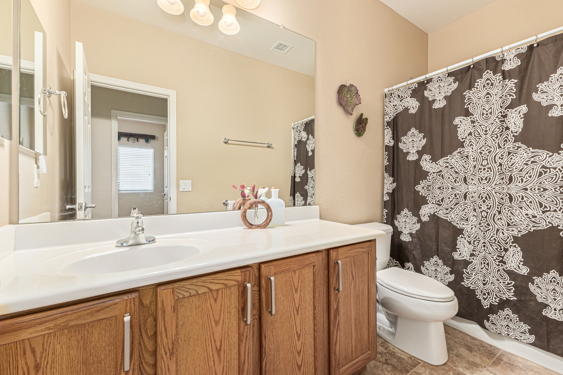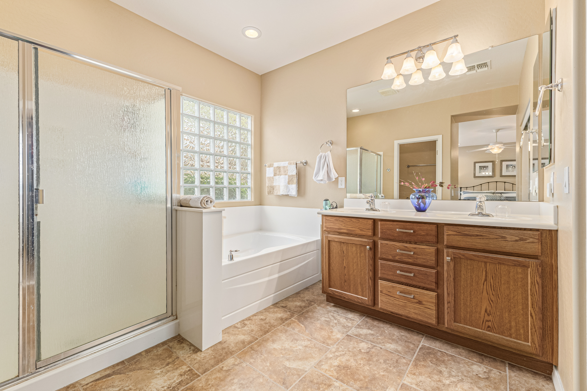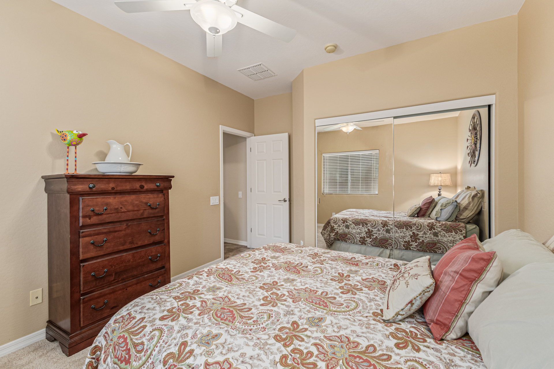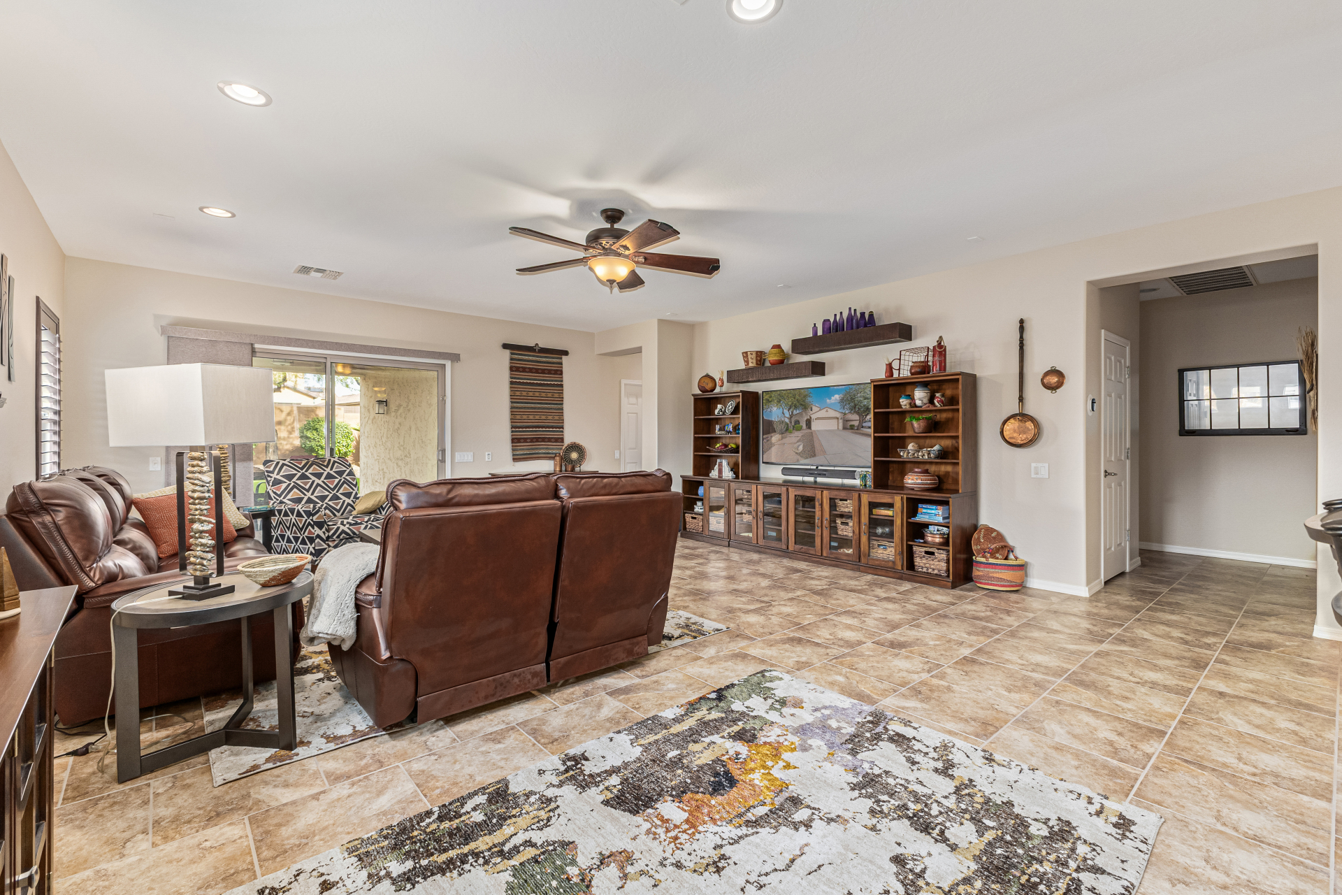 You'll love this beautiful home in Stetson Valley! Offering 3 beds, 2 baths, oversized 2-car garage, manicured mature landscape, and great curb appeal. The fabulous interior features tons of natural light, plantation shutters, neutral paint, and tile flooring w/carpet in bedrooms. The large living room is paired with sliding doors to the back! The eat-in kitchen boasts SS appliances, a pantry, quartz counters, recessed lighting, a center island, ample cabinetry w/crown molding, and a pass-through window w/breakfast bar. The double-door main bedroom has an ensuite with dual sinks, separate tub/shower, & a walk-in closet. Laundry room with cabinetry. Tranquility awaits in the spacious backyard! A covered patio, well-laid pavers, artificial turf, & shade trees complete the picture. Just WOW!