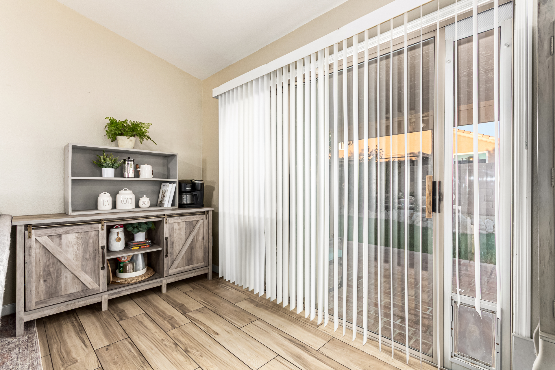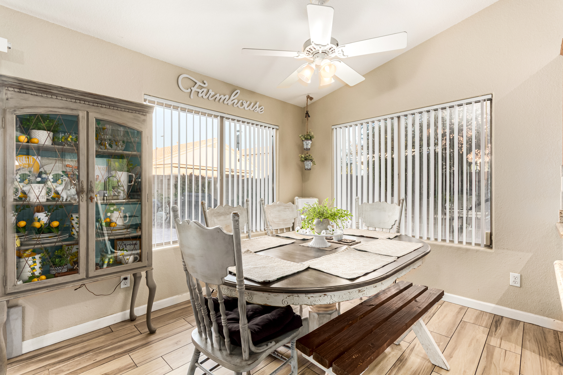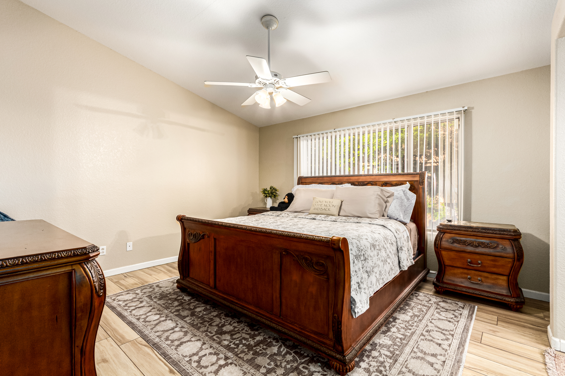 Charming single-level home with a great location close to schools, freeways, and golfing! The manicured landscape & 2-car garage are just the beginning. Inside, you'll find vaulted ceilings, wood-look flooring, plenty of natural light, and earthy colors, all set in an inviting open layout perfect for entertaining & relaxation. The pristine kitchen is equipped with track lights, oak cabinetry, tile backsplash, granite countertops, built-in appliances, and an island with a breakfast bar, ideal for casual meals. The serene main bedroom promises a good night's sleep and boasts a practical walk-in closet and a bathroom with dual sinks. Enjoy outdoor living in the backyard, including a covered patio, well-laid pavers, and a grass area perfect for games. Hurry up, this gem won't last!