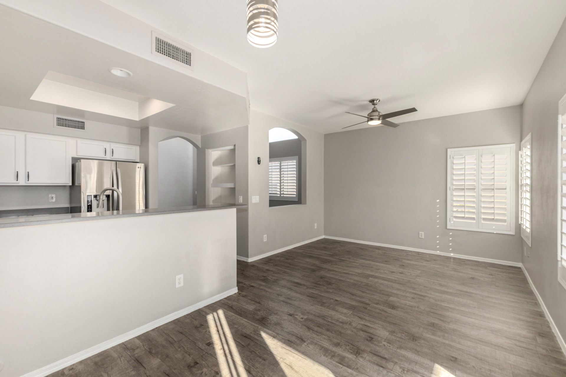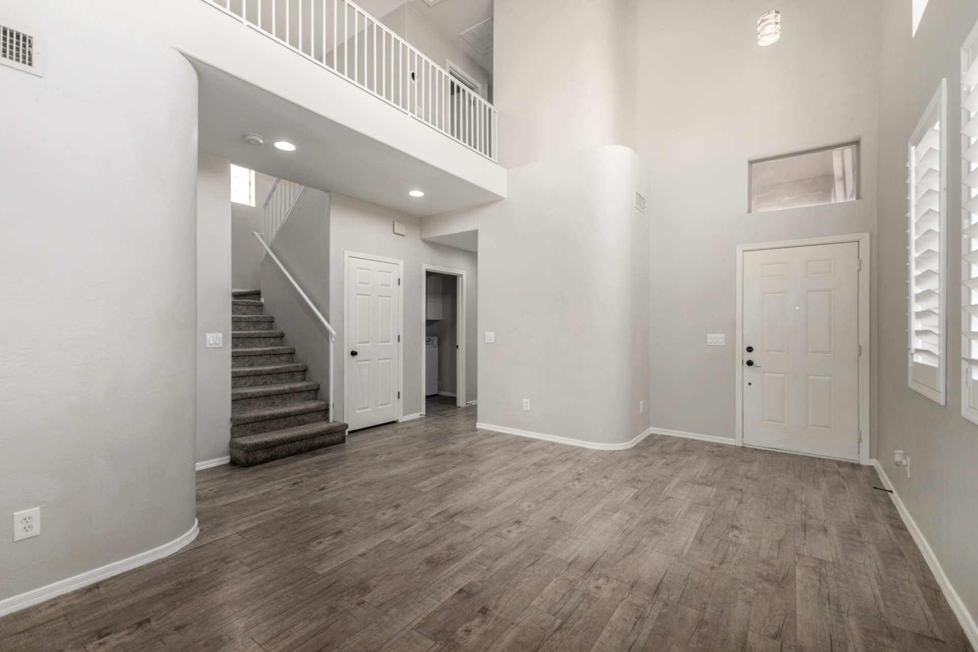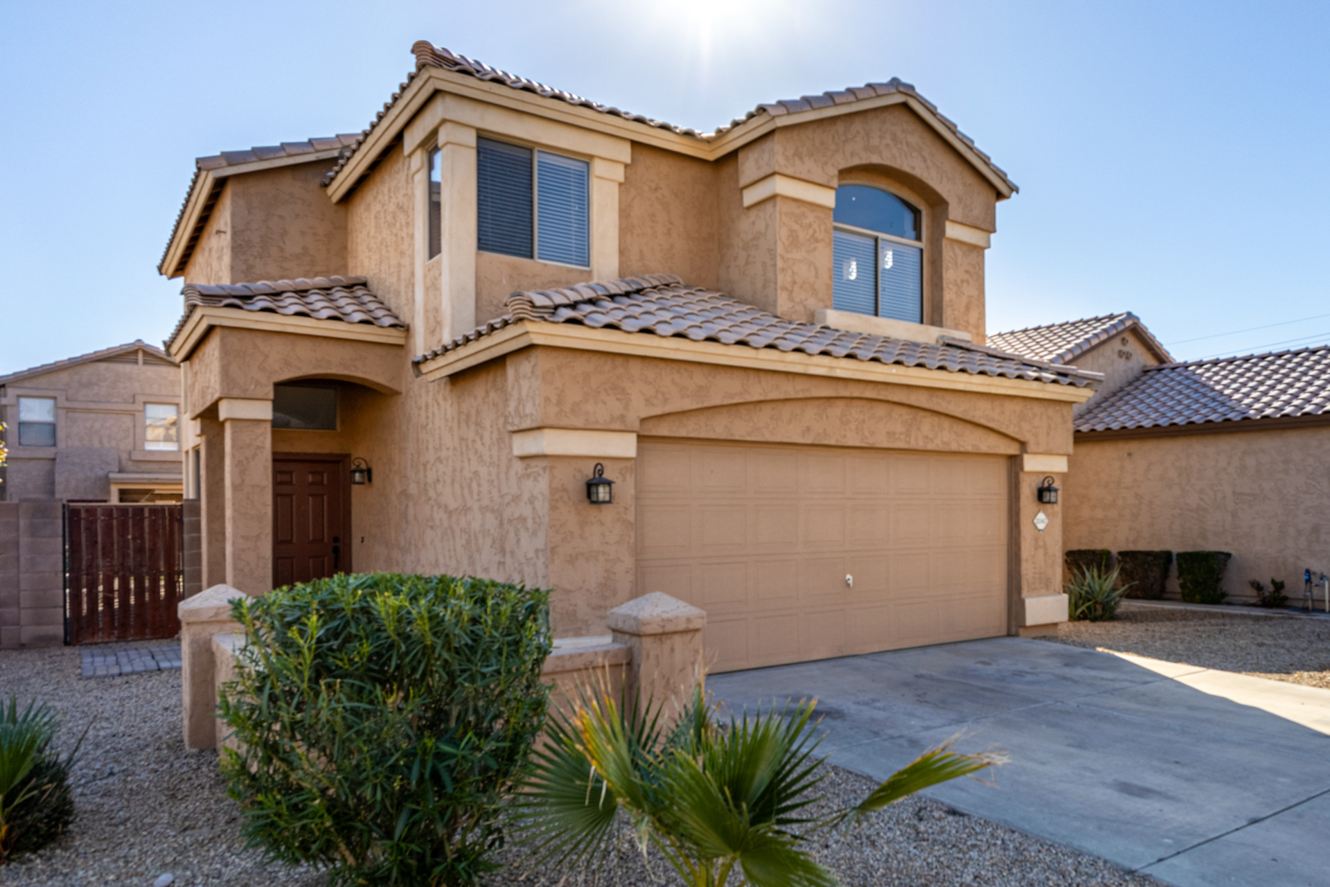 Fantastic two-story home in the gated Sunrise at Harbor Shores! Providing 3 beds, 2 baths + powder room, 2-car garage, & a low-care landscape. The interior exudes refined style with plantation shutters, neutral palette, tons of natural light, and soft carpet & wood-look flooring t/out. Excellent floor plan showcasing a large formal living room with high ceiling, along with a seamlessly flowing family & dining room. The impressive kitchen boasts SS appliances, quartz counters, ample white cabinetry, a pantry, & a peninsula w/breakfast bar. All bedrooms await upstairs! The double-door main bedroom has a full bathroom with dual sinks & a walk-in closet. Check out the backyard with a covered patio, artificial turf, well-laid pavers, & a fire pit! Enjoy the Community pool & spa! Move-in ready!