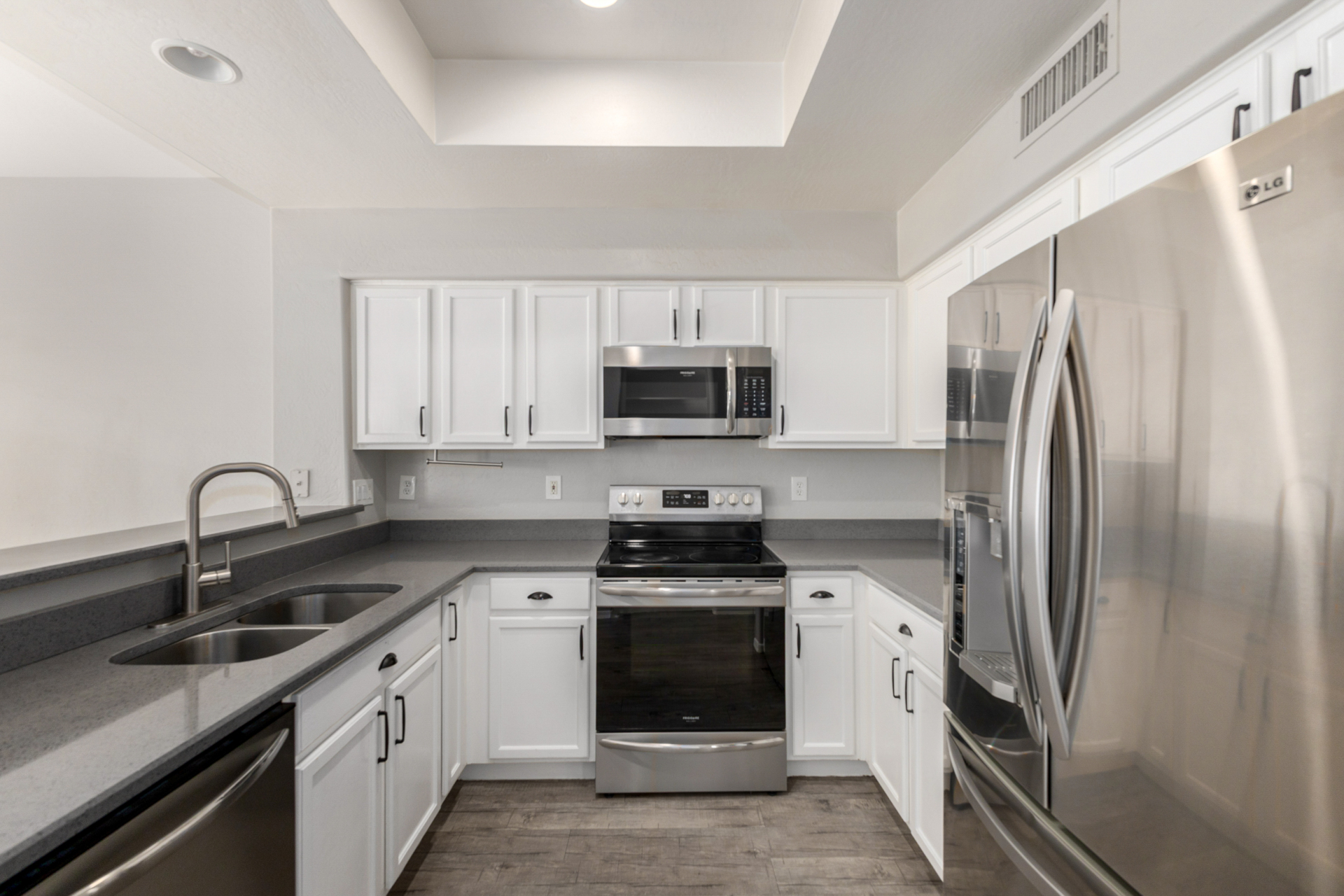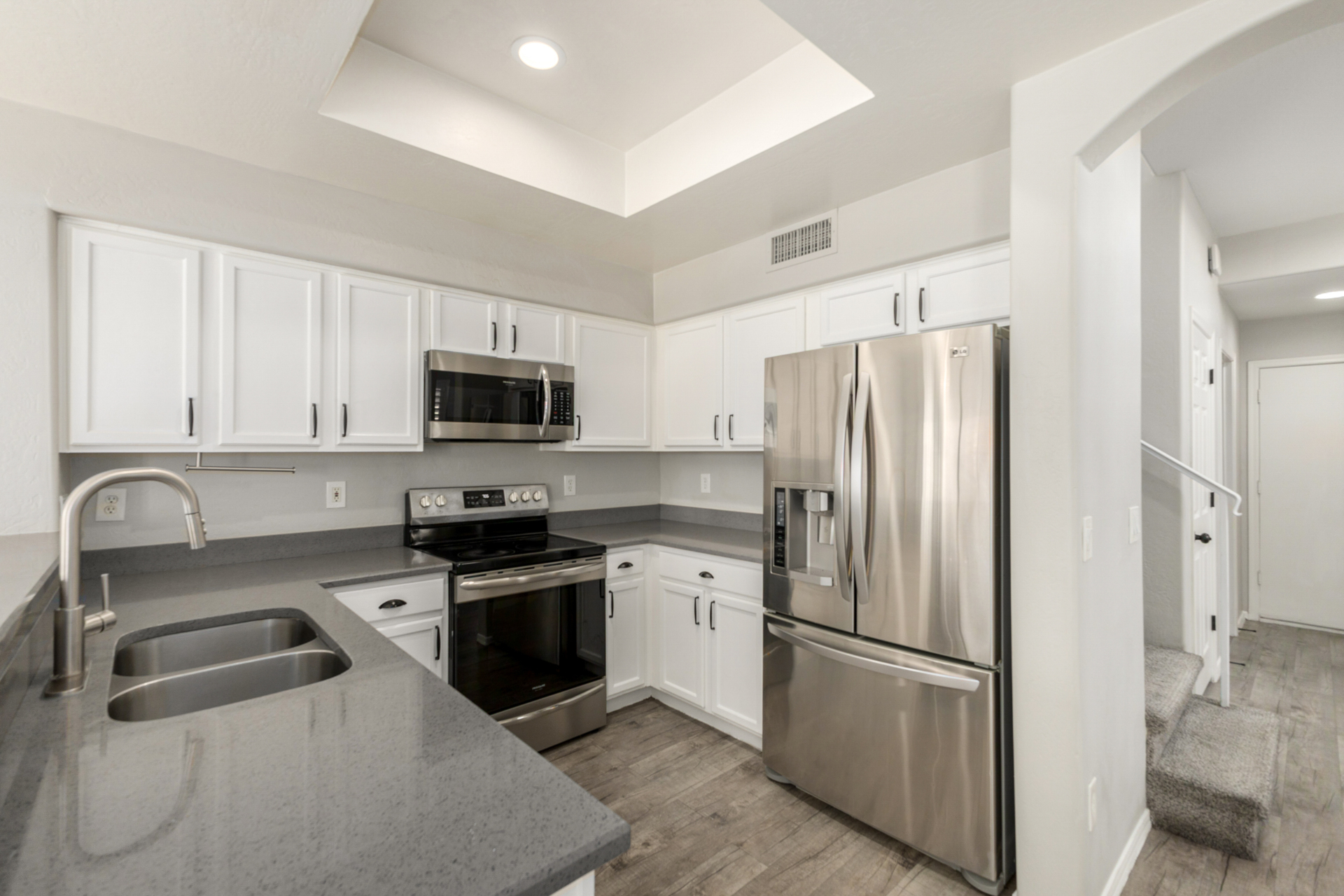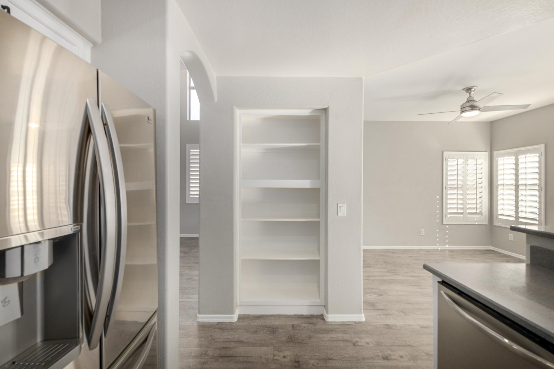 Fantastic two-story home in the gated Sunrise at Harbor Shores! Providing 3 beds, 2 baths + powder room, 2-car garage, & a low-care landscape. The interior exudes refined style with plantation shutters, neutral palette, tons of natural light, and soft carpet & wood-look flooring t/out. Excellent floor plan showcasing a large formal living room with high ceiling, along with a seamlessly flowing family & dining room. The impressive kitchen boasts SS appliances, quartz counters, ample white cabinetry, a pantry, & a peninsula w/breakfast bar. All bedrooms await upstairs! The double-door main bedroom has a full bathroom with dual sinks & a walk-in closet. Check out the backyard with a covered patio, artificial turf, well-laid pavers, & a fire pit! Enjoy the Community pool & spa! Move-in ready!