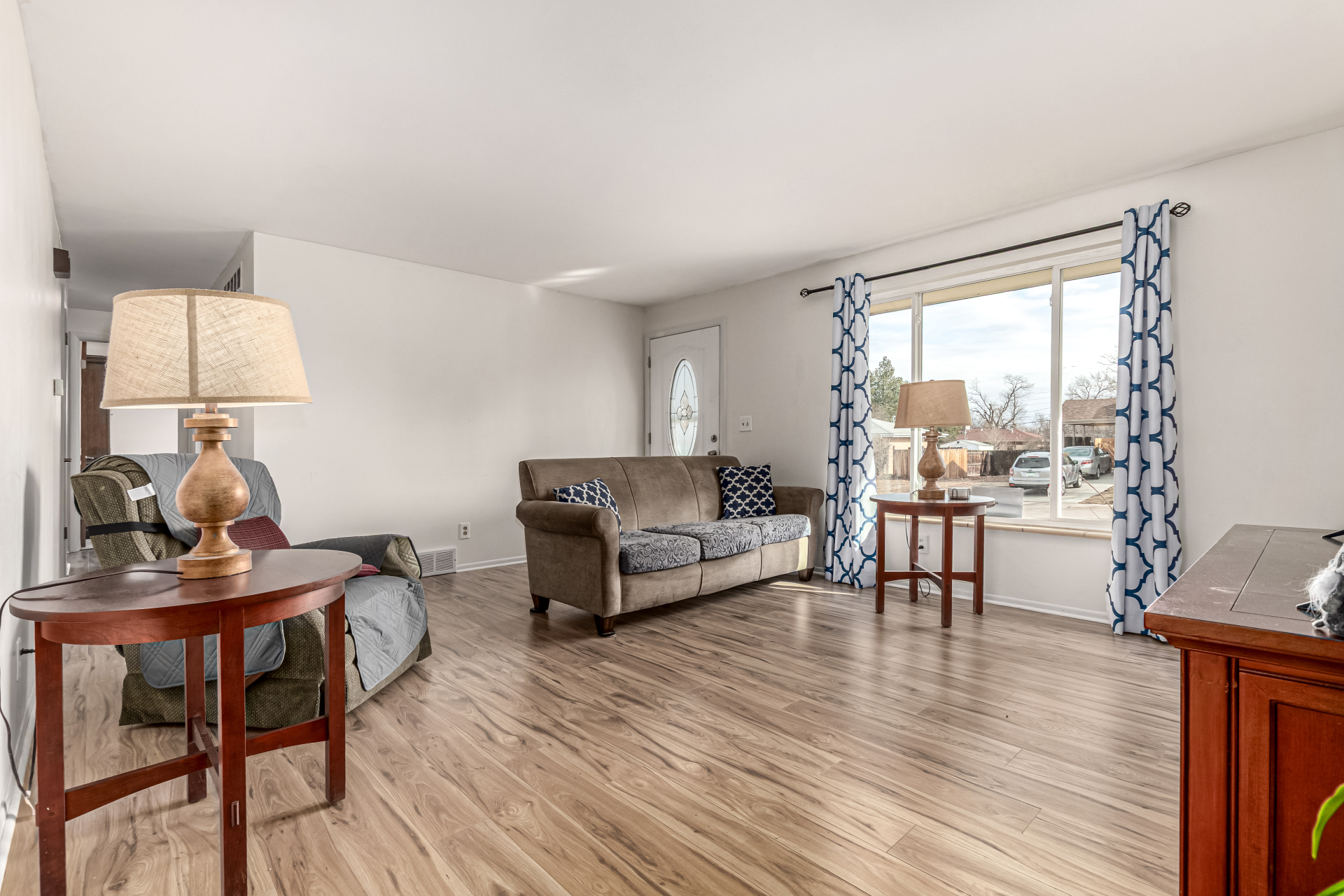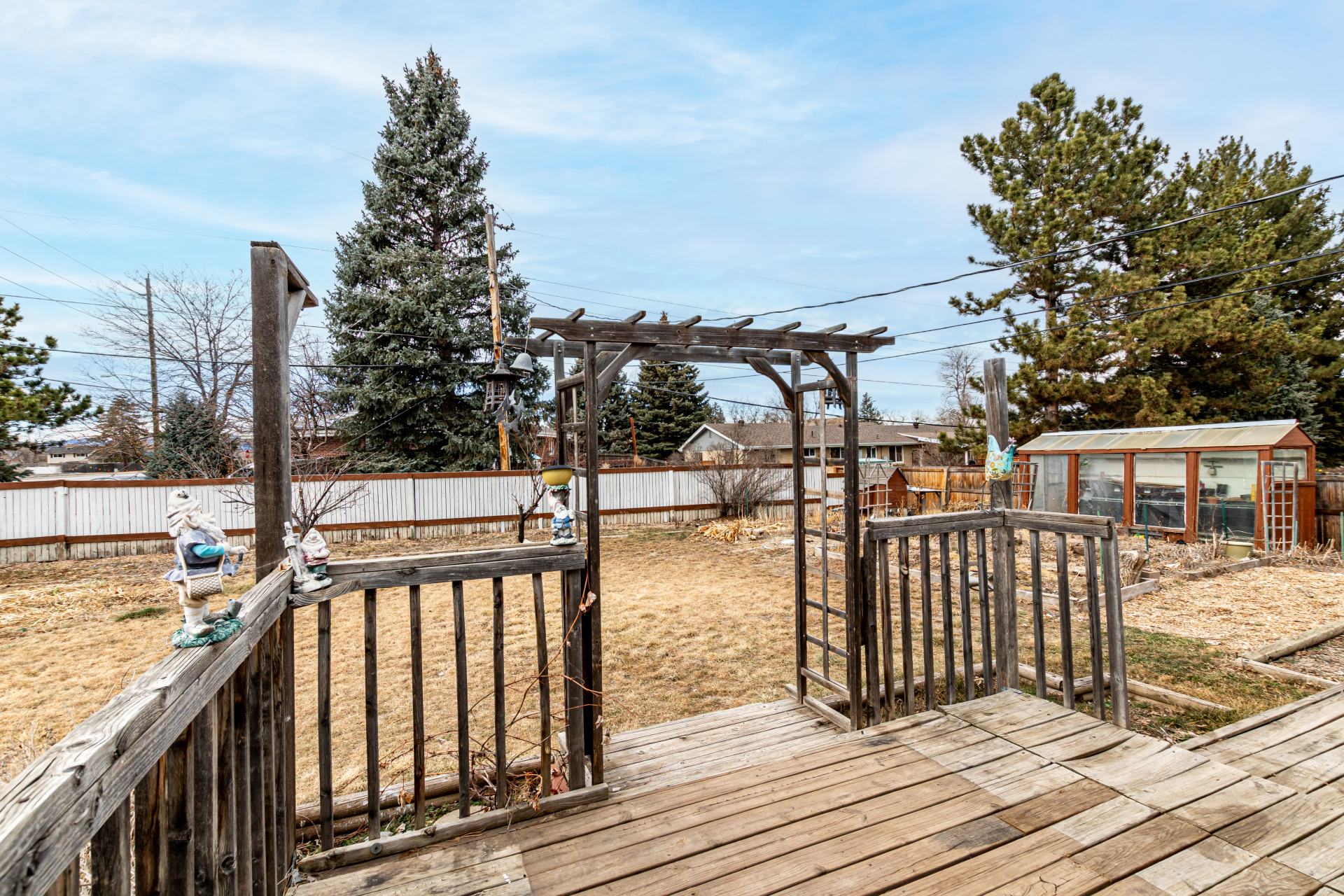 Stunning Updated Ranch in Broadway Estates – 6691 S Wellington Court, Centennial, CO 80121. Spacious single-family home offering 4 bedrooms and 2 baths across 2,184 sq ft on a generous 9,081 sq ft lot in highly desirable Centennial, just minutes from parks, shopping, and dining. Step inside to a bright, remodeled interior featuring new laminate flooring in the living room and hall, new carpet in two bedrooms, and a kitchen upgraded with quartz countertops, stainless-steel appliances, upgraded cabinets, pot lights, and sliding glass access to the two-tier deck — perfect for indoor-outdoor living and entertaining. The finished basement adds flexible living space, and the large, fully fenced backyard with mature plum trees, lilac and Russian sage bushes, gardens and raised beds offers privacy and endless outdoor potential. Classic brick ranch exterior with central air, forced air heat, one covered parking space, and room to add a garage make this home both functional and stylish.