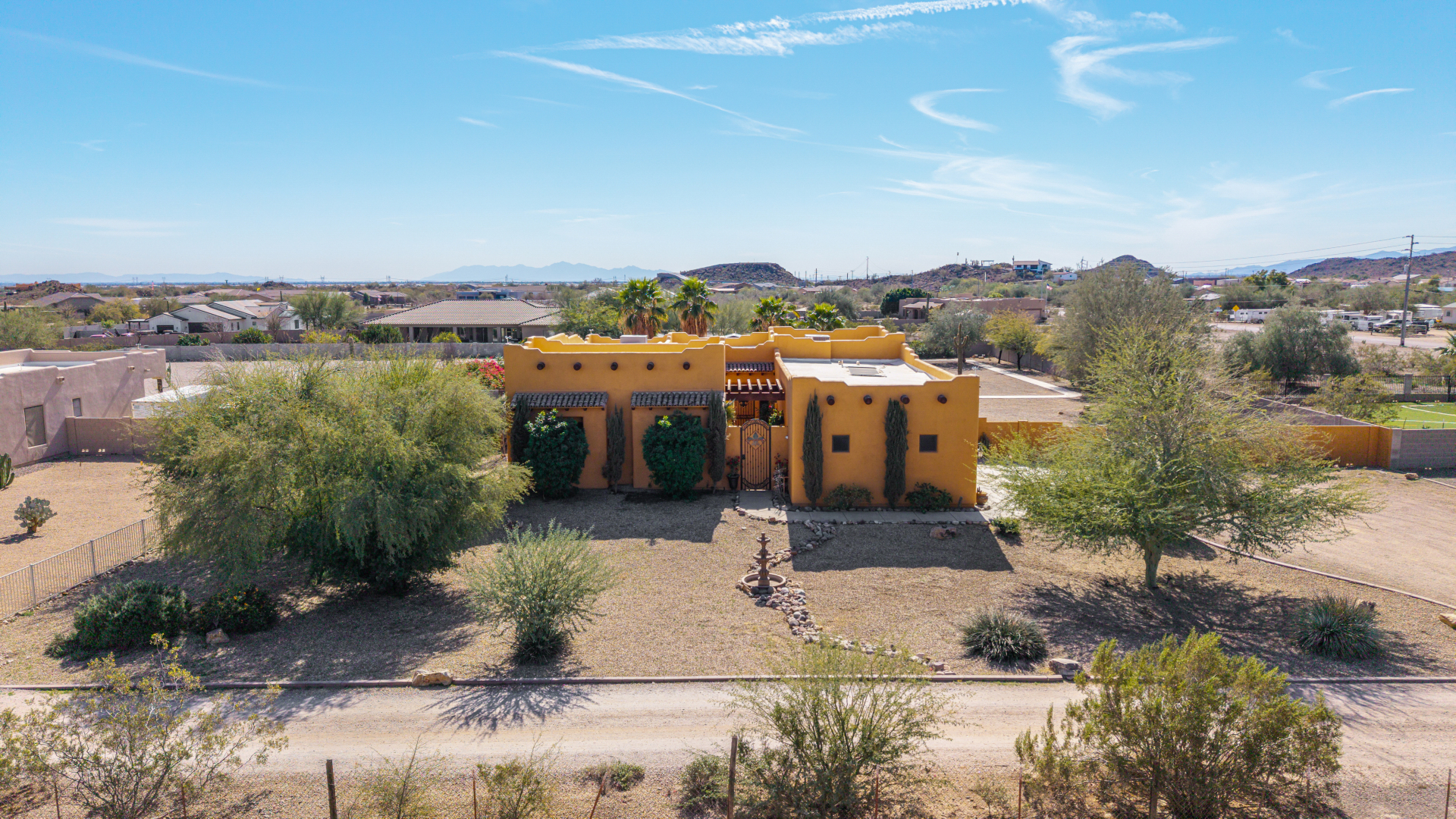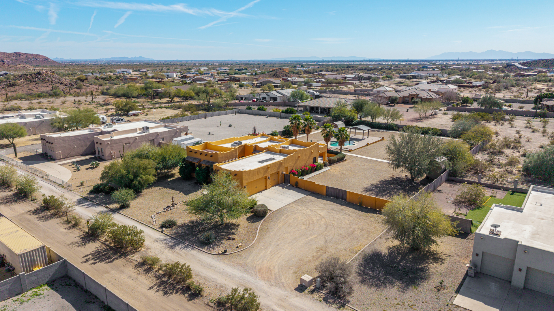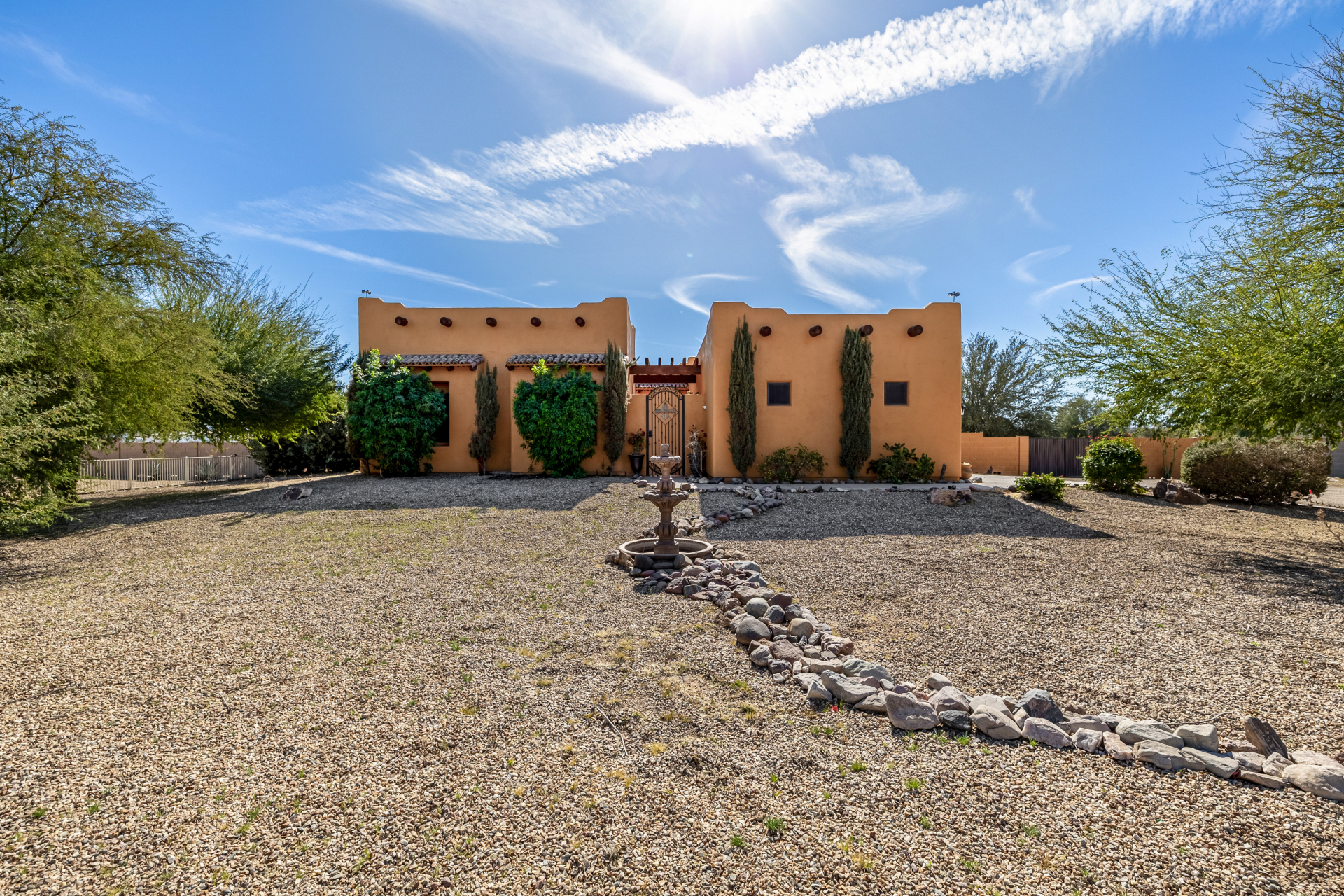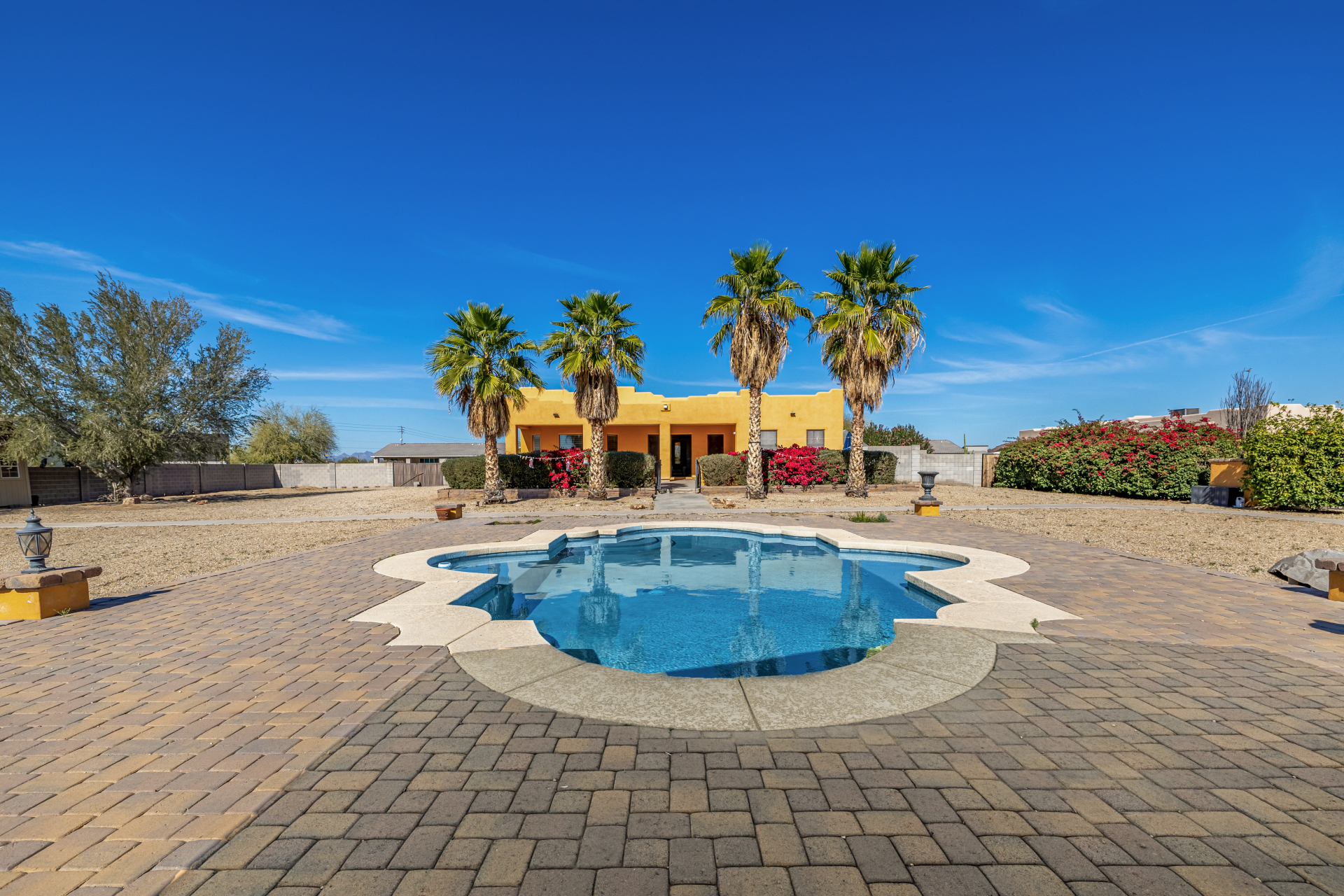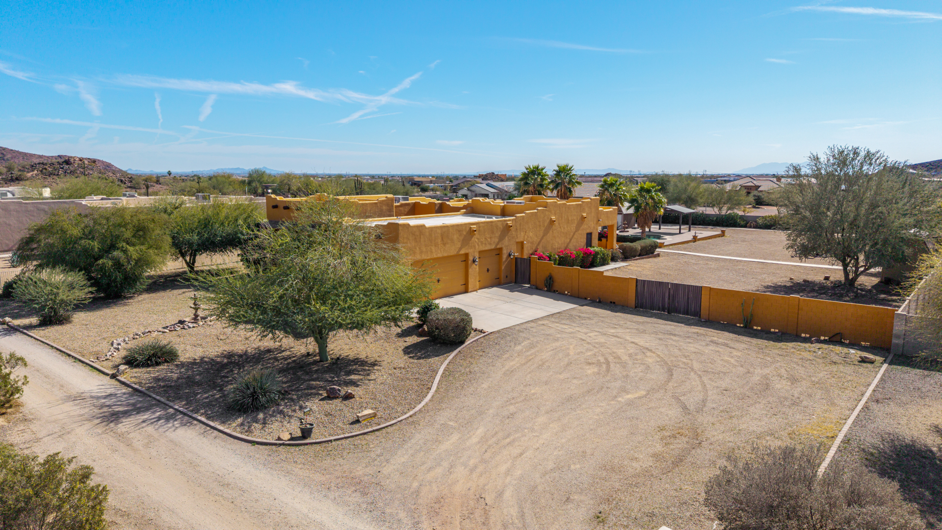 Don’t miss out on this horse property on a sprawling 1.1-acre lot with room to roam and dream! This impressive home welcomes you with a 3-car garage, RV gate, and a charming courtyard. Inside, enjoy tile floors, a soothing neutral palette, pre-wired surround sound, and a spacious living room made for entertaining. The generous kitchen shines with stainless steel appliances, granite countertops, abundant wood cabinetry, a pantry, mosaic tile backsplash, and a center island with a breakfast bar. The main bedroom is a true retreat with direct backyard access, a private bath featuring dual vanities, a soaking tub, and a walk-in closet. The garage includes attached cabinets for added storage. Out back, relax or play in the covered patio, sparkling pool, gazebo, greenhouse, shed, and even a basketball hoop plus plenty of open space to unwind or get creative. So much to love, all in one incredible property! Act now!