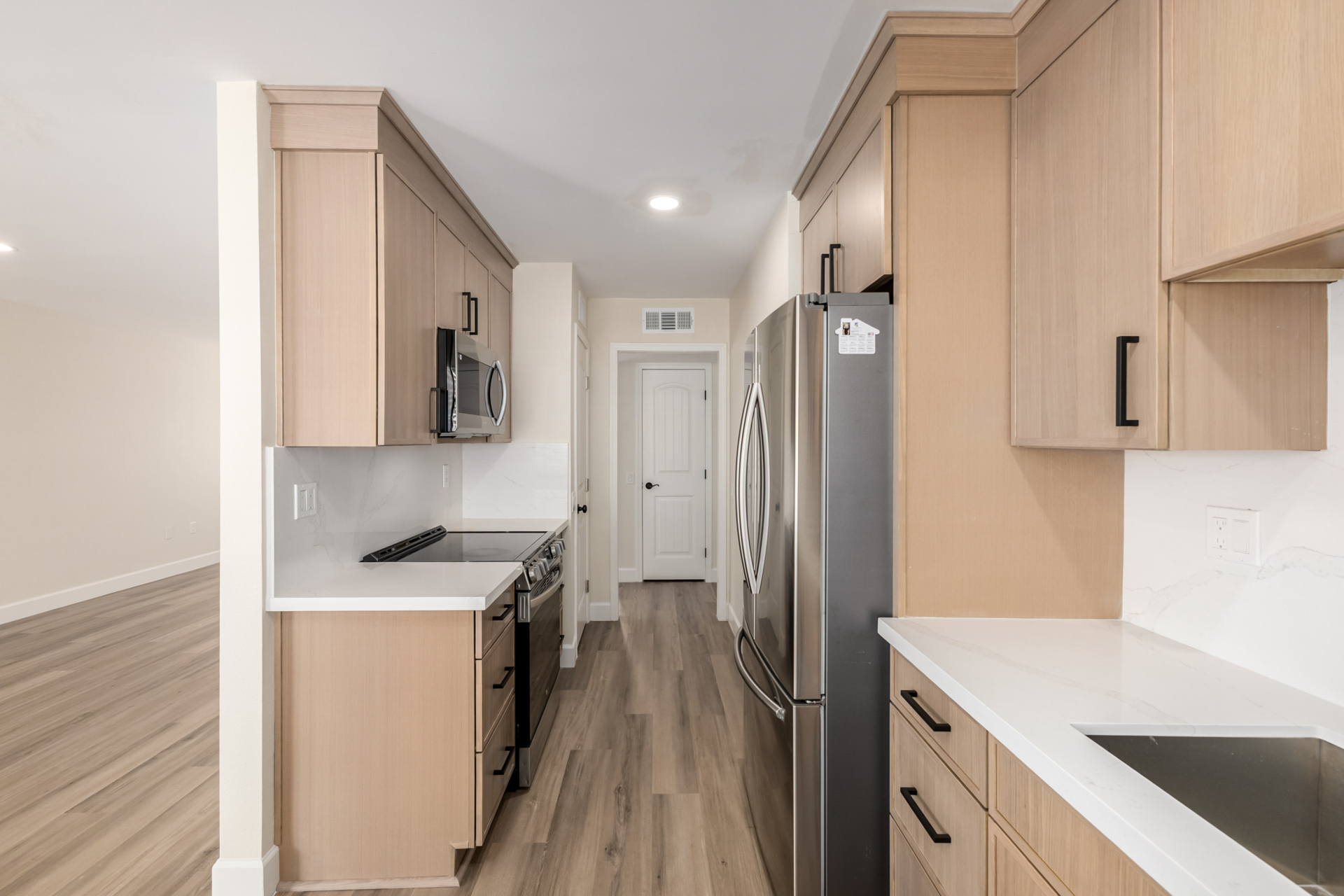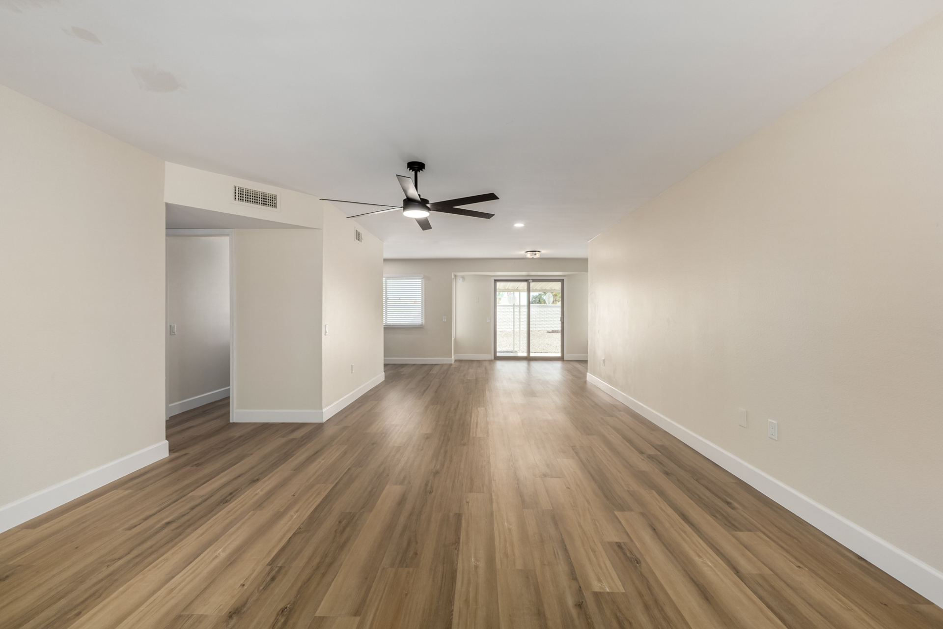 Welcome Home! Paradise awaits in this wonderfully reimagined floor plan with all new updated fixtures & finishes throughout! Stylish new kitchen, including granite countertop, cabinets, backsplash, kitchen sink and faucet! Top of the line Stainless Steel refrigerator, range, built-in microwave & dishwasher. Beautiful wood looking DuraLux Performance waterproof Luxury Vinyl flooring. Sun protected dual pane windows and new blinds. Custom paint and large baseboards throughout the home. Both bathrooms completely remodeled with quartz countertops, new cabinets mirrors & fixtures, new toilets & upgraded showers with 3/8'' glass panel & porcelain tile. Oversized laundry room with tons of storage. Huge fenced backyard features a covered patio with room to entertain. Come see it today!