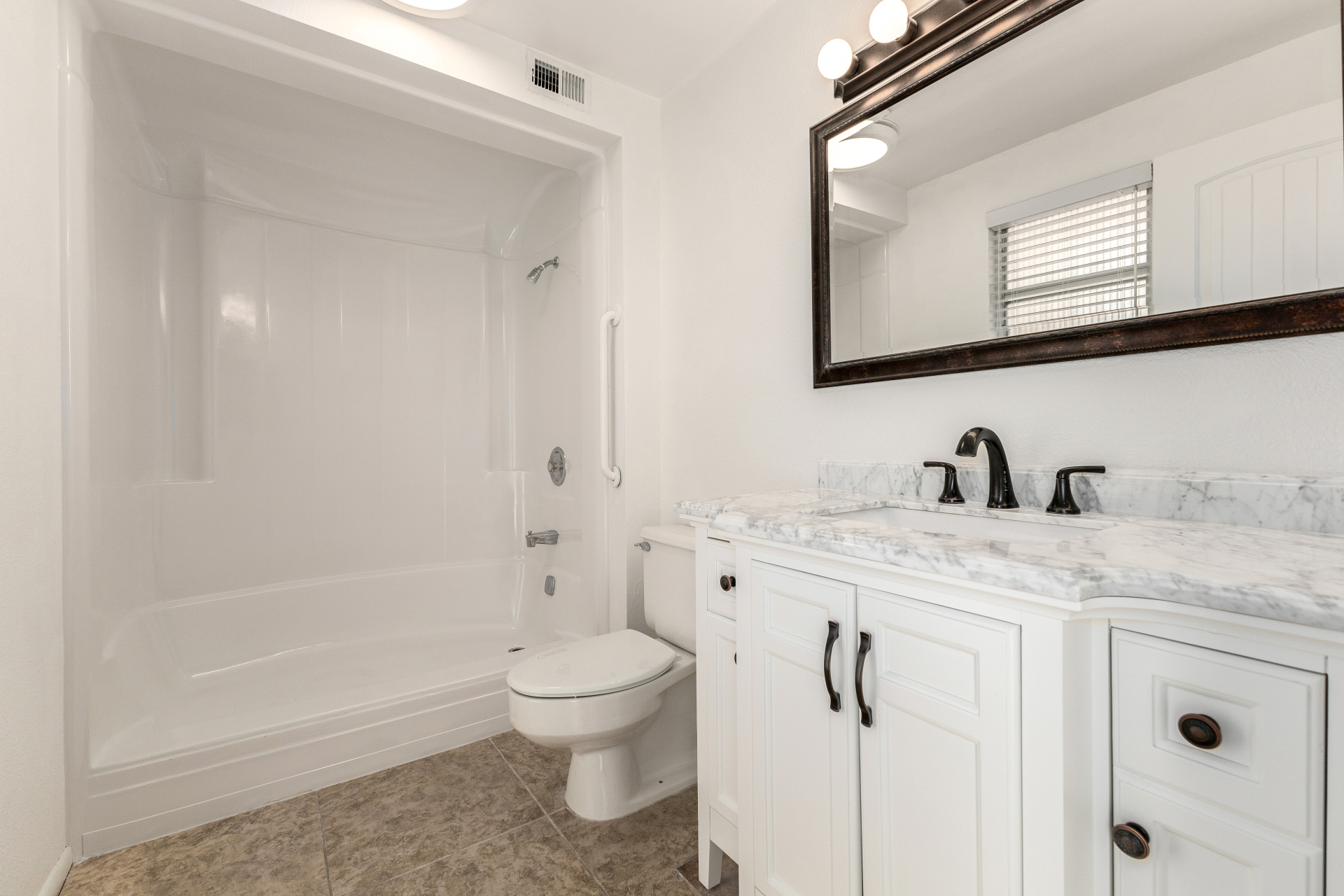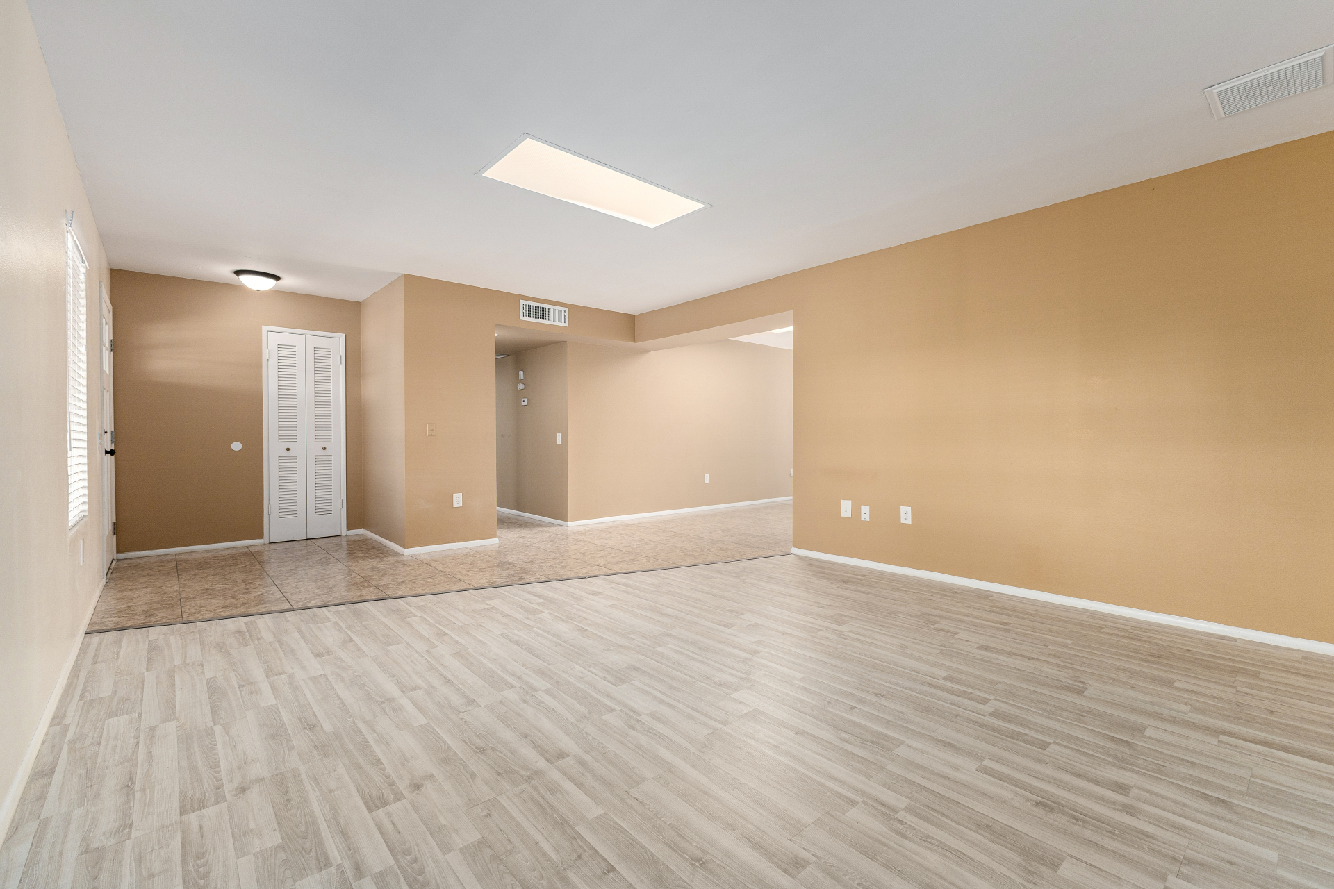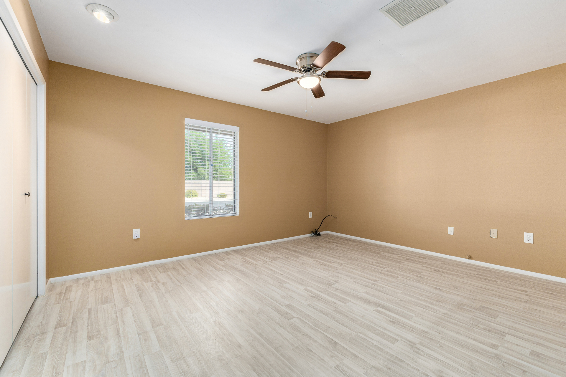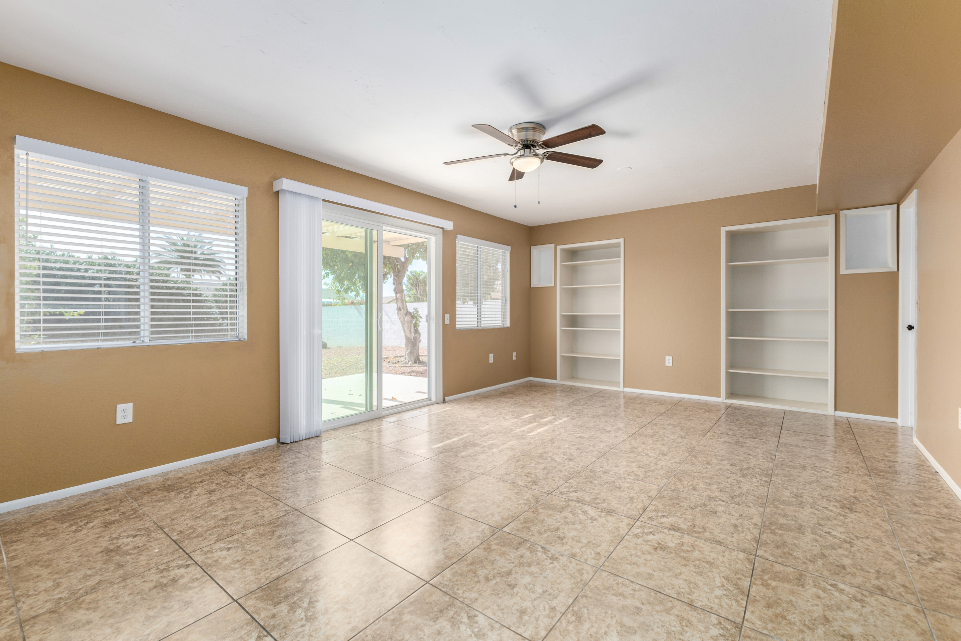 Home, sweet home! This charming residence features a 2-car garage & a low-maintenance desert landscape. Inside, you'll find a serene living room w/ a warm palette, skylights for abundant natural light, blinds, & stylish wood-look flooring. Spend relaxing evenings w/ loved ones in the spacious family room, complete w/ sliding door access to the backyard. The well-appointed kitchen comes w/ granite counters, crisp white shaker cabinets, recessed lighting, a striking tile backsplash, essential built-in appliances, a pantry, & a practical pass-through w/ a breakfast bar. The bright main bedroom includes a private bathroom for added comfort. You'll also find a versatile bonus room ideal for an office. The lovely backyard offers a covered patio & fragrant citrus trees. Make this gem yours!